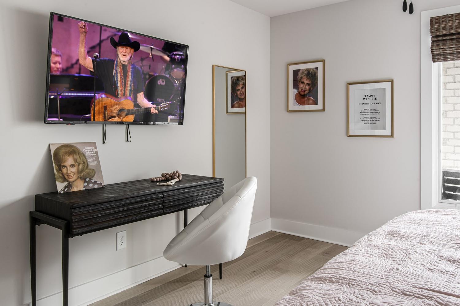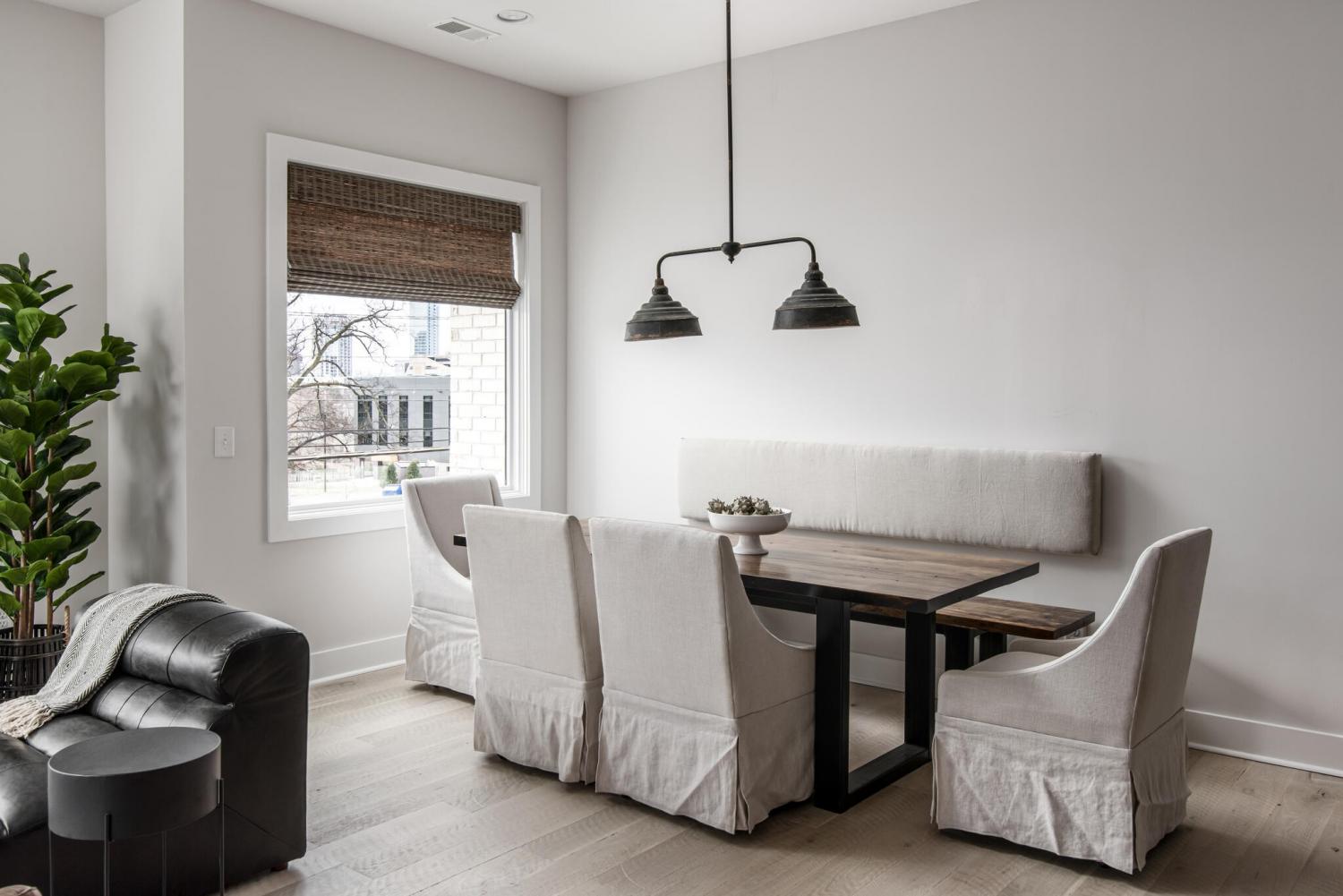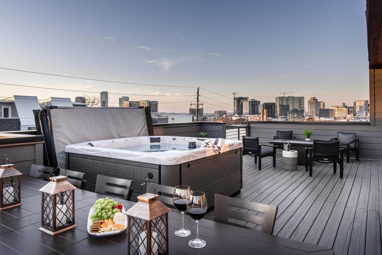 Brand-new luxury residence available for long-term lease in the heart of Nashville’s Gulch district. This stunning four-bedroom, four-bath home combines modern design with an unbeatable location just steps from restaurants, shopping, and entertainment, and minutes from Broadway, Music Row, and Vanderbilt. The thoughtfully designed interior features an open-concept main living level with sleek black cabinetry, stainless steel appliances, a large island with bar seating, and a dining area ideal for hosting. Designer furnishings complement the spacious living room with oversized windows and abundant natural light. The home offers three king suites and one queen suite, each with flat-screen TV, walk-in closet, and spa-inspired bath with dual vanities and walk-in showers. A private rooftop deck with dining area, seating, fire pit, and skyline views provides the perfect retreat for relaxing or entertaining. Additional highlights include a wet bar, multiple outdoor patios, and secure garage access. Located within easy walking distance to Nashville’s most popular restaurants and nightlife, and a short drive to Vanderbilt, Belmont, Bridgestone Arena, Nissan Stadium, and more, this residence delivers both convenience and lifestyle. Rare opportunity to lease a fully appointed luxury home in one of Nashville’s most desirable neighborhoods.