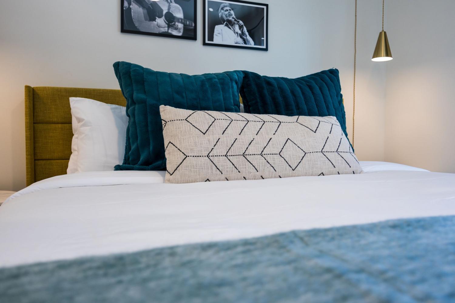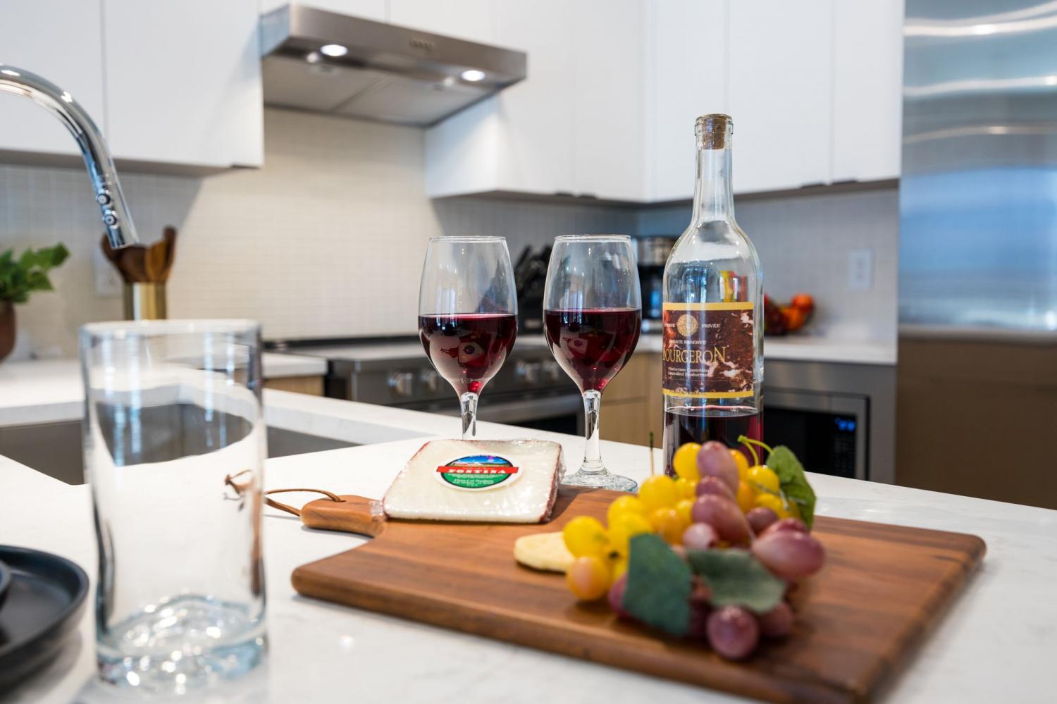Hyve is a modern 3-bedroom, 2-bath condominium located in the heart of SoBro, just steps from The Gulch and minutes from Broadway. Positioned on the 5th floor, this residence features stylish interiors, private outdoor spaces, and access to premium building amenities. The open-concept living area is filled with natural light and includes designer furnishings, a Samsung Frame smart TV, and direct access to a private balcony with city views. The kitchen offers stainless steel appliances, generous counter space, and island seating, creating a functional space for both everyday use and entertaining. The primary suite includes a king bedroom with large closet, smart TV, and convenient access to a modern bath with walk-in shower. The second suite features two queen beds, a walk-in closet, en-suite bath with dual vanities, and its own private balcony. Hyve residents enjoy resort-style amenities, including a seasonal pool, state-of-the-art fitness center, outdoor grills and dining areas, ping pong, firepit lounges, and rooftop escapes with panoramic city views. Secure building access and on-site professional security add peace of mind. A reserved garage parking space is included, with additional garage and street parking available. Located within walking distance to local dining, breweries, and entertainment, and minutes from Music City Center, Nissan Stadium, and Vanderbilt, this home offers a rare opportunity to lease a stylish residence in one of Nashville’s most vibrant neighborhoods.