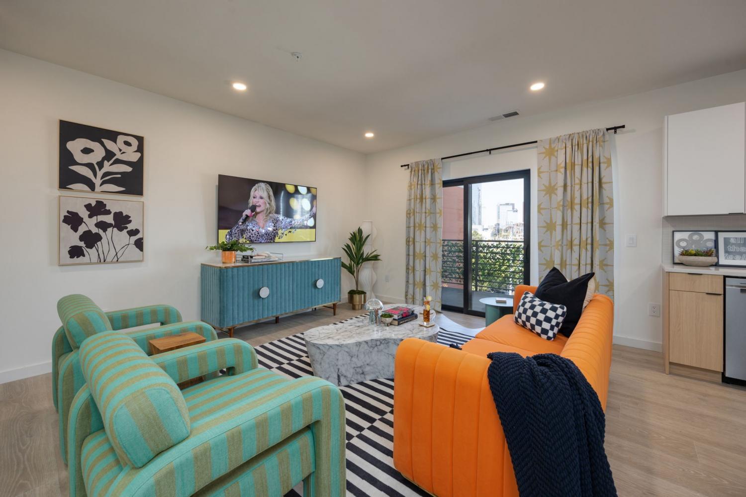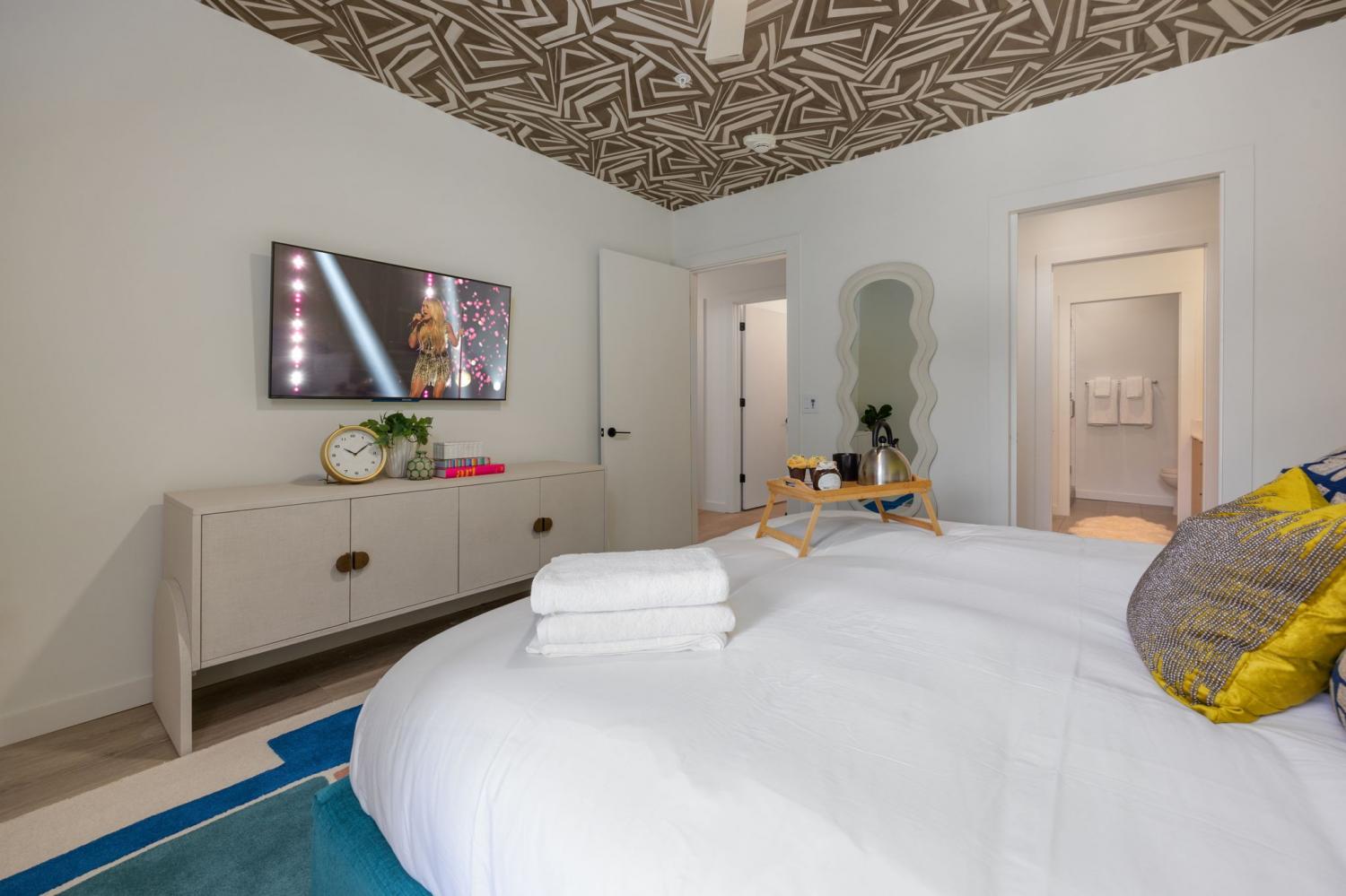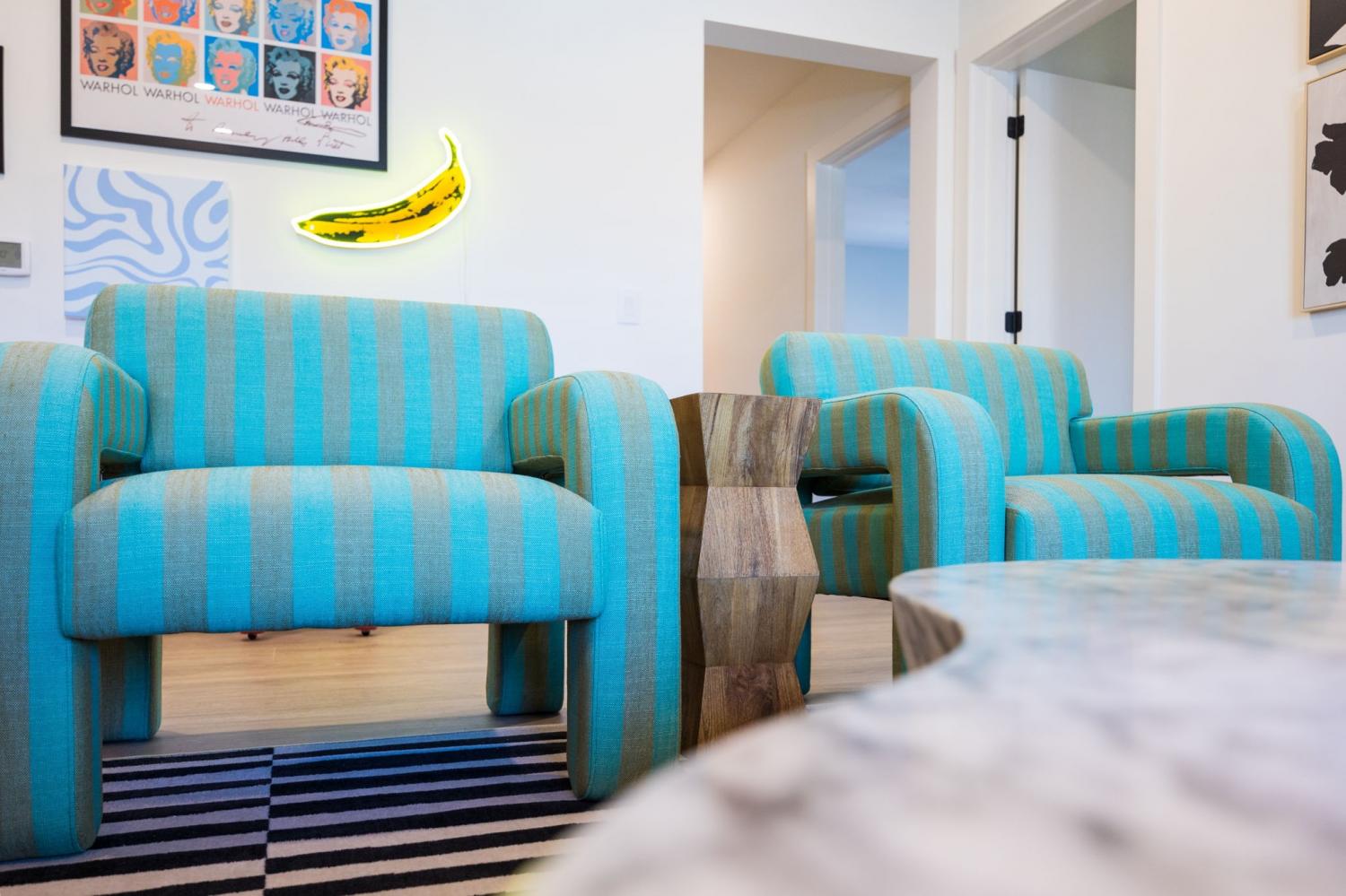 Artpop is a contemporary four-bedroom, three-bathroom residence in the Hyve building, offering a unique Warhol-inspired design and modern conveniences in the heart of SoBro. Just steps from The Gulch, Pie Town, and a short walk to Broadway, this residence blends creative style with upscale finishes for an exceptional long-term rental opportunity. The open-concept living area features vibrant décor, comfortable seating, and access to a private balcony overlooking the city. The kitchen is fully equipped with stainless steel appliances, generous counter space, and bar seating, flowing seamlessly into the dining and living areas to create a perfect space for both entertaining and everyday living. The primary suite offers a king bed, Smart TV, walk-in closet, and ensuite bathroom. The second bedroom includes a queen bed with designer details, while the third provides two twin daybeds with trundles for flexible sleeping arrangements. The fourth bedroom includes a queen bed, ensuite bathroom, and direct access to the balcony. Building amenities at the Hyve include a resort-style pool, rooftop lounge, fire pits, BBQ grills, outdoor ping pong, and a fitness center. Secure garage parking and controlled building access provide added convenience and peace of mind. With its bold design, modern amenities, and prime SoBro location, Artpop offers a rare long-term lease opportunity to enjoy Nashville living in style.