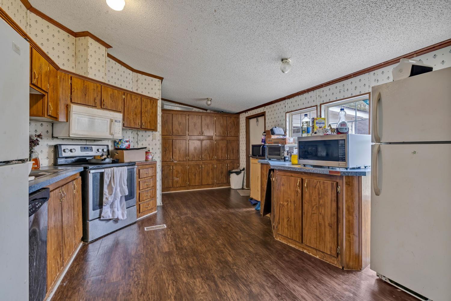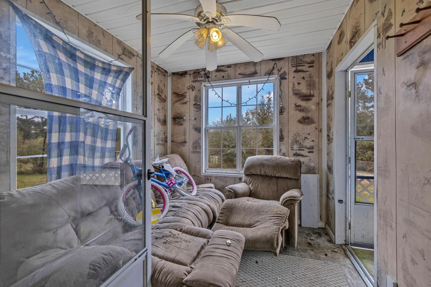 REDUCED! This is a 4 bedroom 3 full bath home. The front porch or entryway area offers an opportunity for personal touches to create a warm and welcoming entrance. This manufactured home is ready for a buyer with a vision and willingness to invest in some updates. With a little TLC, it has the potential to become a comfortable and inviting living space. Notice the nice large kitchen with extra cabinets. Nice big den and dinning room for entertaining. The front porch or entryway area offers an opportunity for personal touches to create a warm and welcoming entrance. In the front is fenced in area for the house hold pet. Then there is another large fenced in area for horses or even goats. Be sure and notice the detached 2 car garage. Ask us about the possibility of the 2/1 buy down so this can be in your budget.