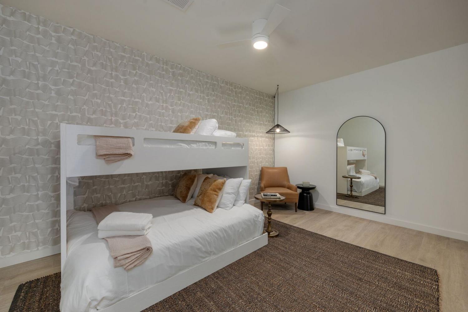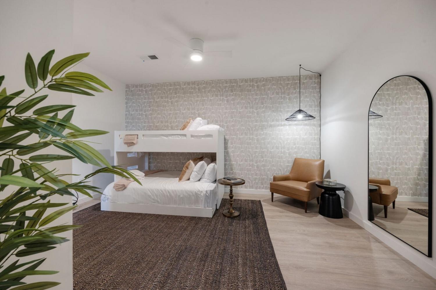 The Last Rodeo is a stylish four-bedroom, three-and-a-half-bath residence located in the Hyve building in SoBro, just steps from The Gulch, Pie Town, and a short walk to Broadway. With modern design, spacious interiors, and access to premium community amenities, this condo offers an exceptional long-term lease opportunity in the heart of downtown Nashville. The open-concept living area features curated designer décor, comfortable furnishings, and access to a private balcony with skyline views. The modern kitchen includes stainless steel appliances, ample counter space, a breakfast bar, and seamless flow into the dining and living areas. Large windows fill the space with natural light, creating an inviting environment for both everyday living and entertaining. The primary suite offers a king bed, walk-in closet, and ensuite bathroom with dual vanities and a shower/tub combination. A second bedroom includes a queen bed, ensuite bath, and balcony access. The third bedroom features a twin-over-full bunk with Jack-and-Jill access to a shared bath, while the fourth bedroom includes a queen bed with the same arrangement. A powder bath adds convenience for guests. As part of the Hyve community, residents enjoy exclusive access to a seasonal pool, fitness center, rooftop lounge, fire pits, BBQ grills, and shared lounge spaces. Secure garage parking is provided on a first-come basis, with additional street parking available. With its prime location, private balcony, and designer interior, The Last Rodeo delivers a rare opportunity to lease a modern, amenity-rich condo in one of Nashville’s most dynamic neighborhoods.