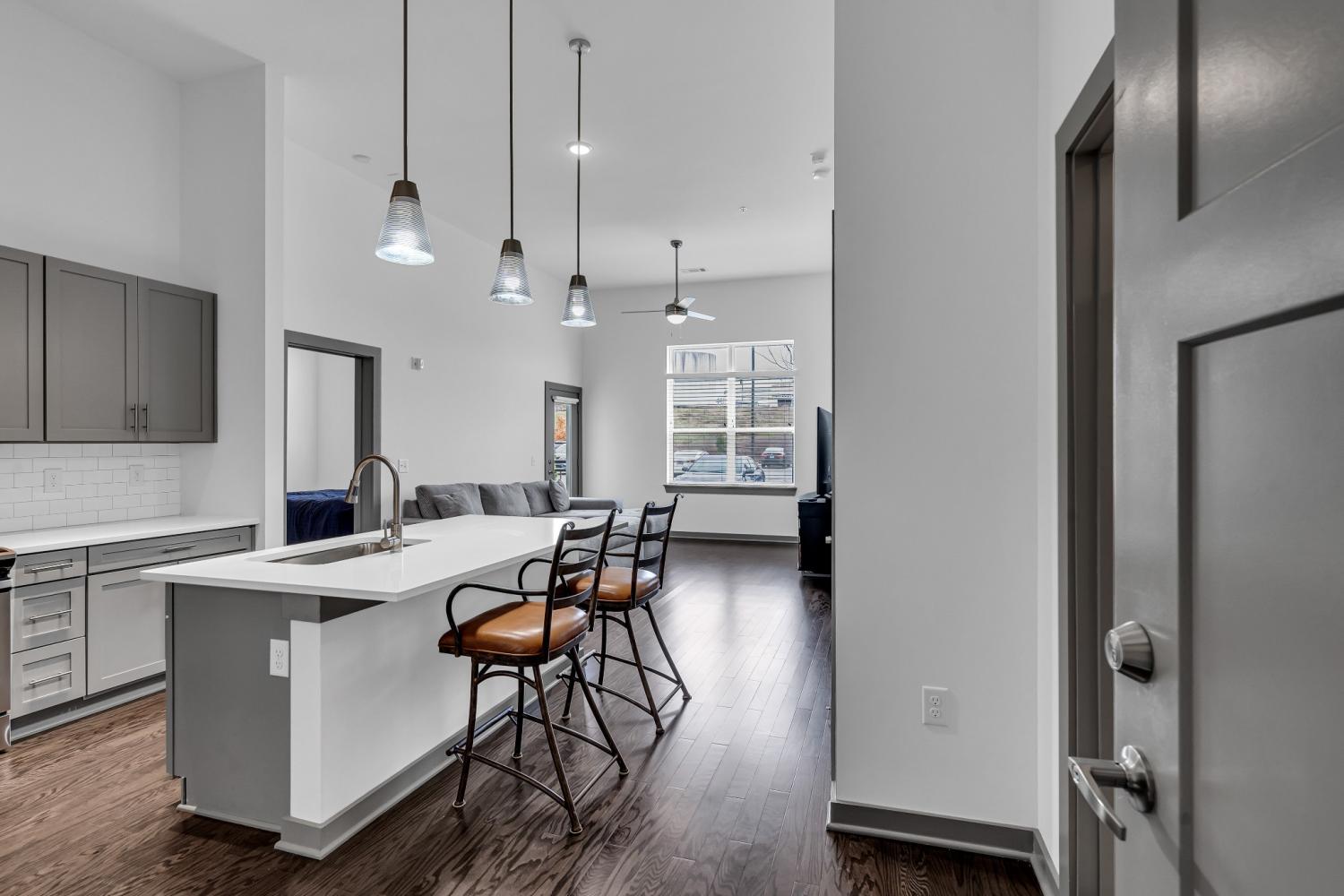 DON’T MISS OUT ON $7500 TOWARDS CLOSING COSTS! Welcome to your next 2 bed/2 bath condo in The Nations! Conveniently located only 5 miles from downtown Nashville, minutes away from I-40, I-65 and I-440. The open floor concept immediately welcomes guests when entertaining and has natural lighting that shines through every room in the home. This unit has many luxury features such as beautiful hardwood flooring, quartz countertops throughout, high ceilings and 2 spacious walk-in closets. All appliances including refrigerator, washer, and dryer are to remain. Silo House has inviting amenities including a gym, a saltwater pool, an outdoor gas grill and a cabana. The development is within walking distance to several local eateries, bars, breweries, gyms and salons. Retail at The Mall at Green Hills, Nashville West and L&L Market is only minutes away. Get into one of Nashville’s hottest neighborhoods now!