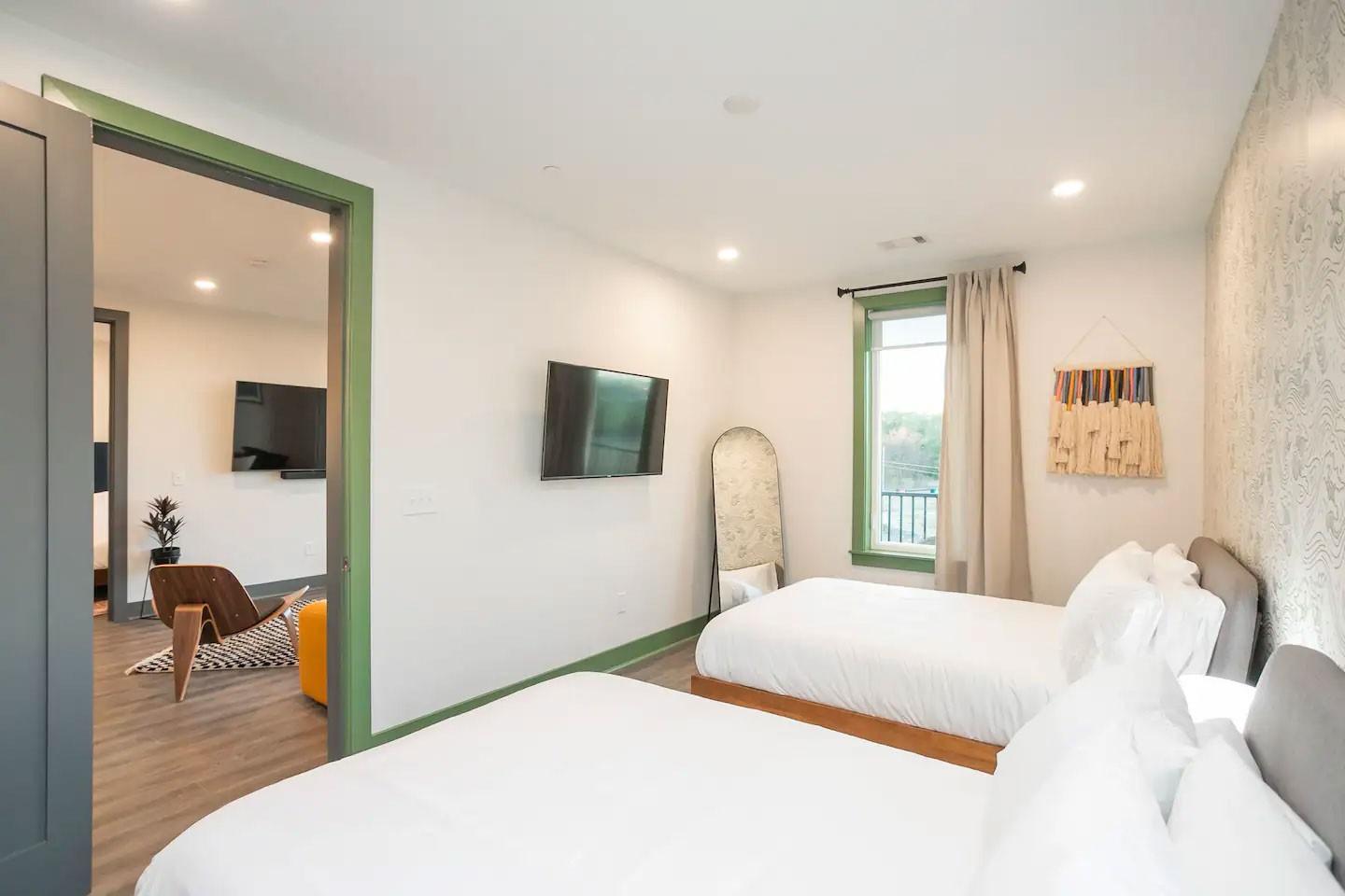 Non-Owner Occupied Short Term Rental at The Muse, walking distance to Broadway & the heart of Nashville! This luxury 2 Bed, 2 Bath Condo sleeps 7, has downtown views and a wrap around balcony! Building amenities include a fitness center, roof top lounge, secured entry & IV Therapy facility. This spacious double en-suite features 1 king bed, 2 queen beds and 1 twin bed. Quartz countertops, modern fixtures & stainless steel appliances throughout. Comes fully furnished and has laundry in unit. A must see!