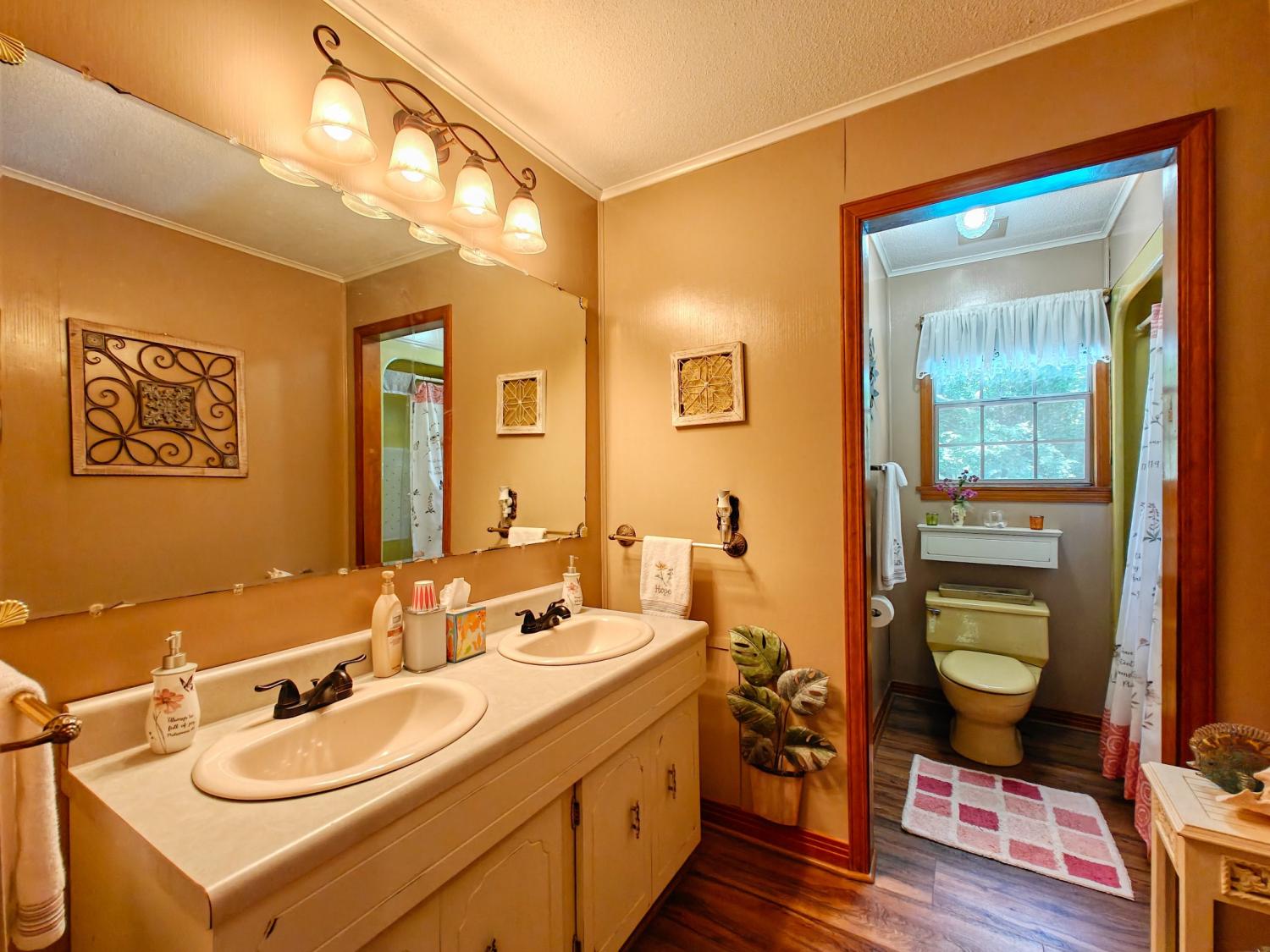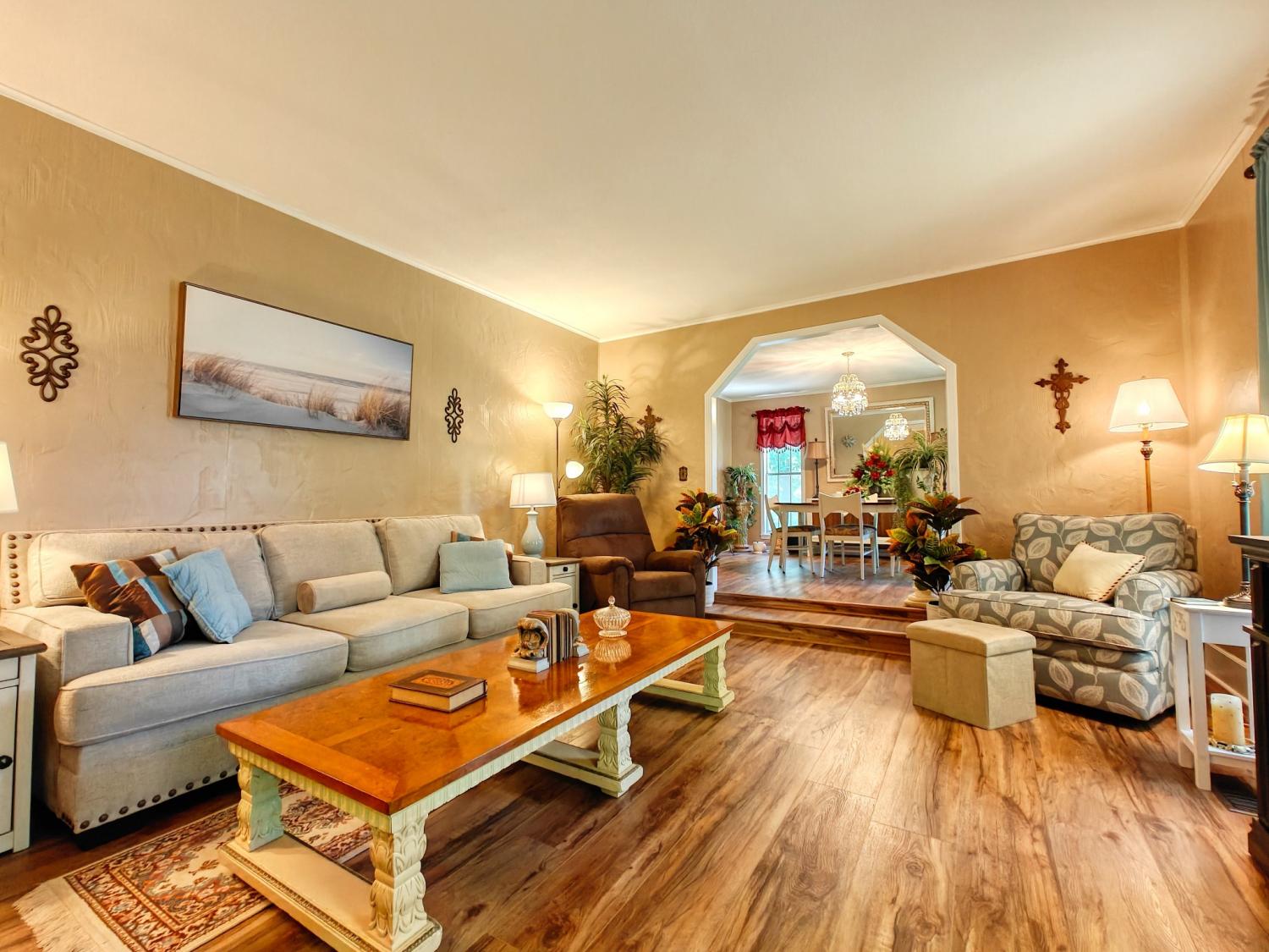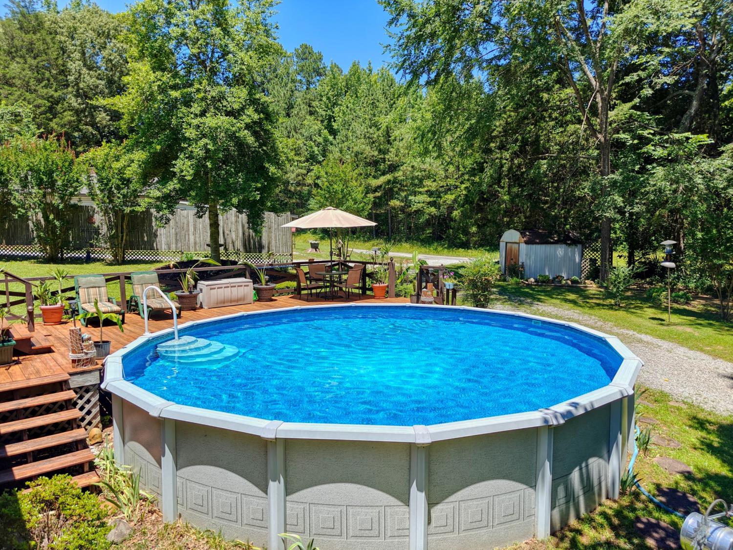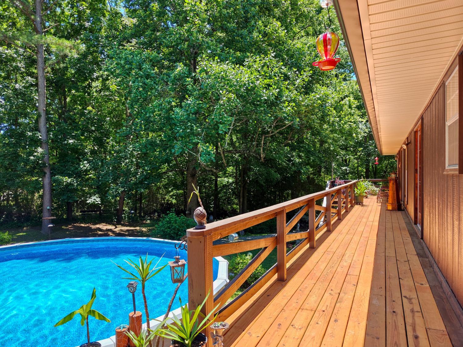 Welcome to this immaculately cared for 3 bed, 2 bath home on 2.2 acres in a convenient location. Enjoy the 24' above-ground pool and deck areas, perfect for outdoor entertaining. Inside you'll find new vinyl plank flooring 2020, a formal living room and dining room, den, eat-in kitchen, spacious master bedroom suite and 2 ample sized guest bedrooms. Additional highlights include a basement rec area with pool table, mature landscaping including blueberry bushes, Spectrum fiber optics and a 2-car attached garage. With a new roof in 2023, new 4 ton HVAC just added, new decking and new well this property is move-in ready and waiting for you to call it home. Also included is a 3 bedroom 2 bath house with its own new well and septic for family or rental income. This property has so much to offer!