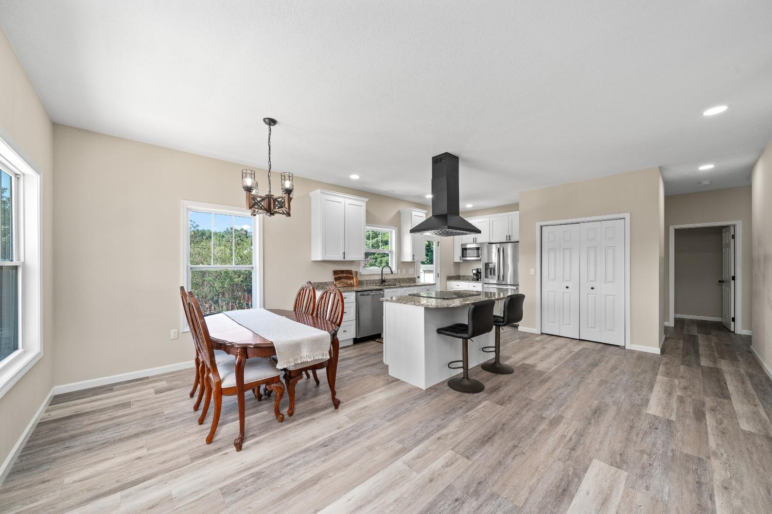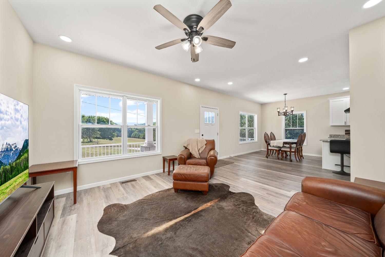 Built in 2023, this modern home offers three bedrooms and two full baths within an open floor plan, all seamlessly connected by LVP flooring. The fully equipped kitchen, boasting granite countertops and a central island, serves as a hub for gathering. However, the true highlight is the breathtaking panorama visible from the front porch, where stunning, uninterrupted views stretch across the landscape. Despite its secluded feel, this peaceful retreat is conveniently located just 6 minutes from the Caney Fork River Boat Ramp and a mere 14 minutes from downtown Sparta.