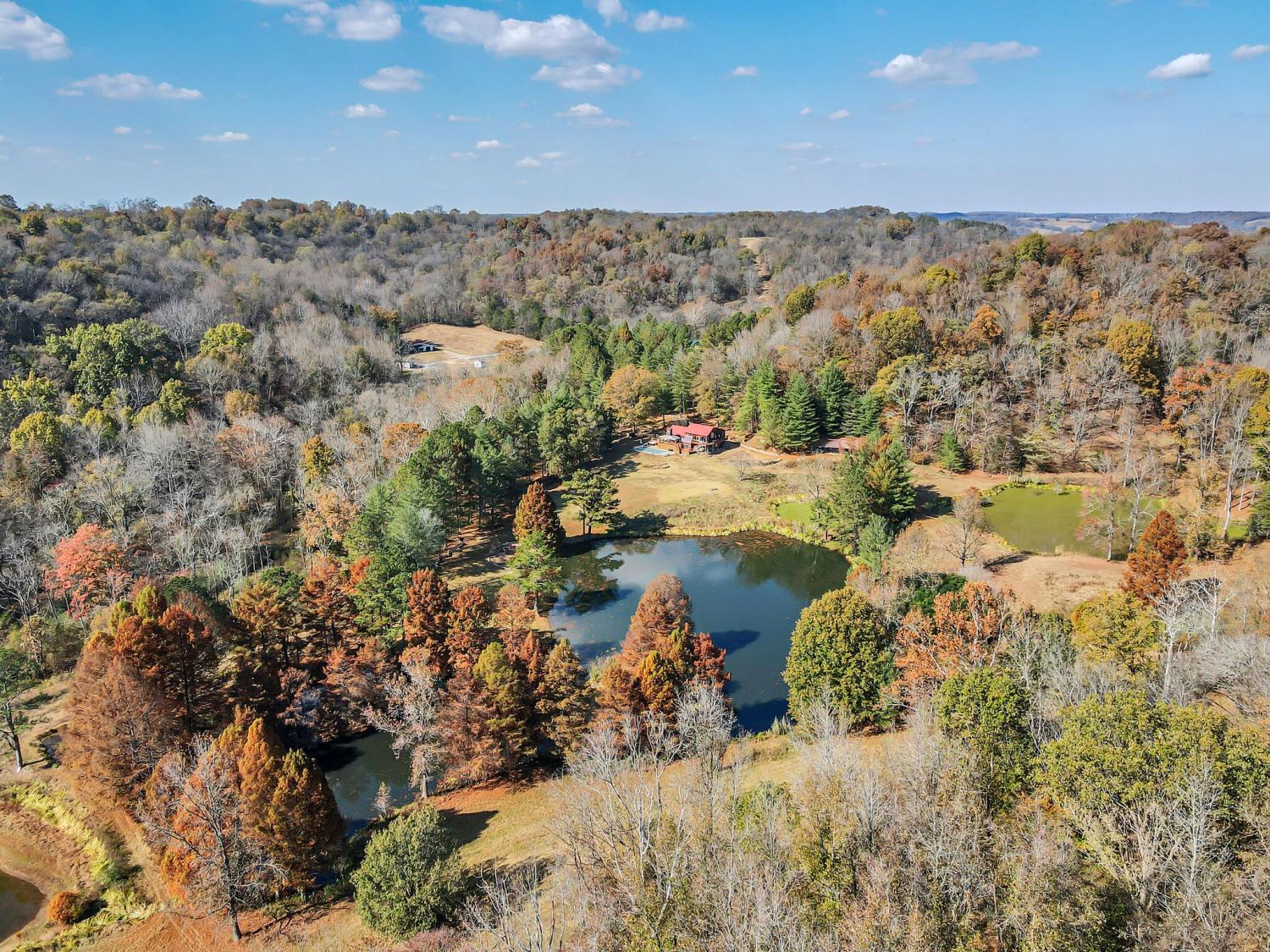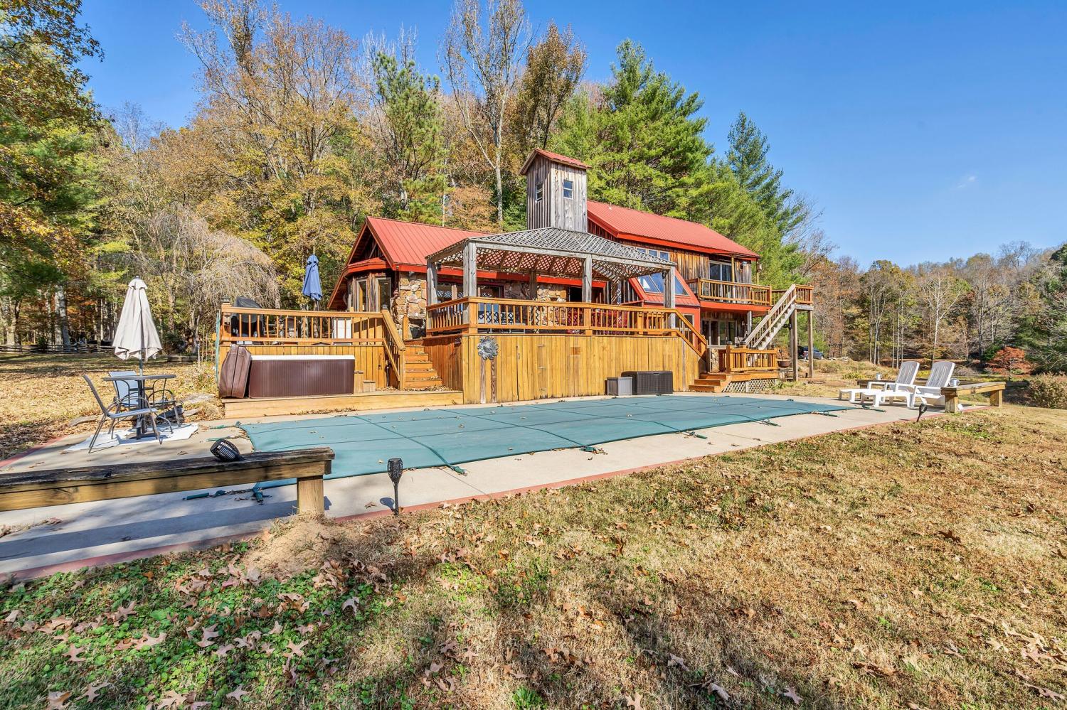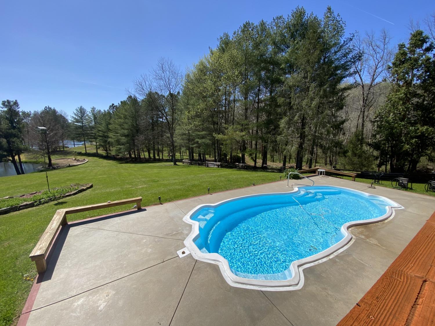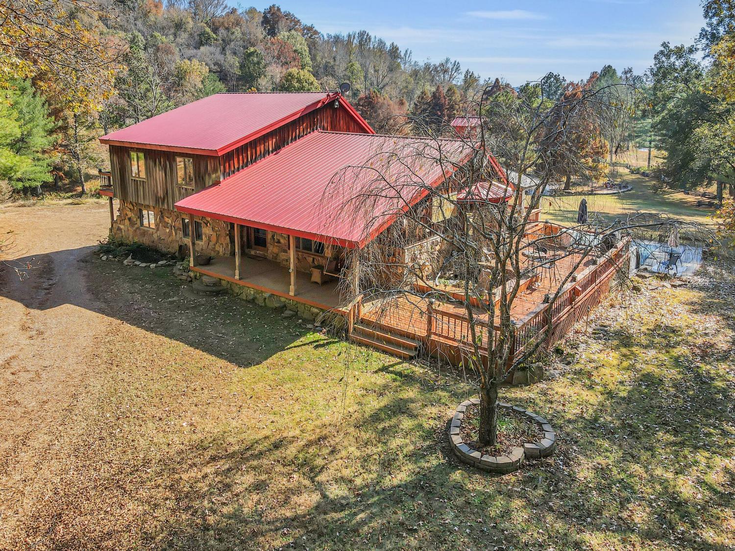 42 acres of spectacular views and peace and quiet! Home comes equipped with hi-speed Internet, game room, wet bar, security system, built-in gun safe into wall, whole house vac system, passive solar/sunroom, inground pool and hot tub. Grounds include 100' well, spring fed lake with bass, hunting posts, 3 hole golf course, multiple patio and decks, Koi pond, fire pit, detached shop/shed with Polaris and tractor (can convey), California fur wood and Arkansas Rock exterior. 10 minutes to historic downtown Pulaski. Currently serving as a very popular AirBNB, all items in house/on grounds can convey.