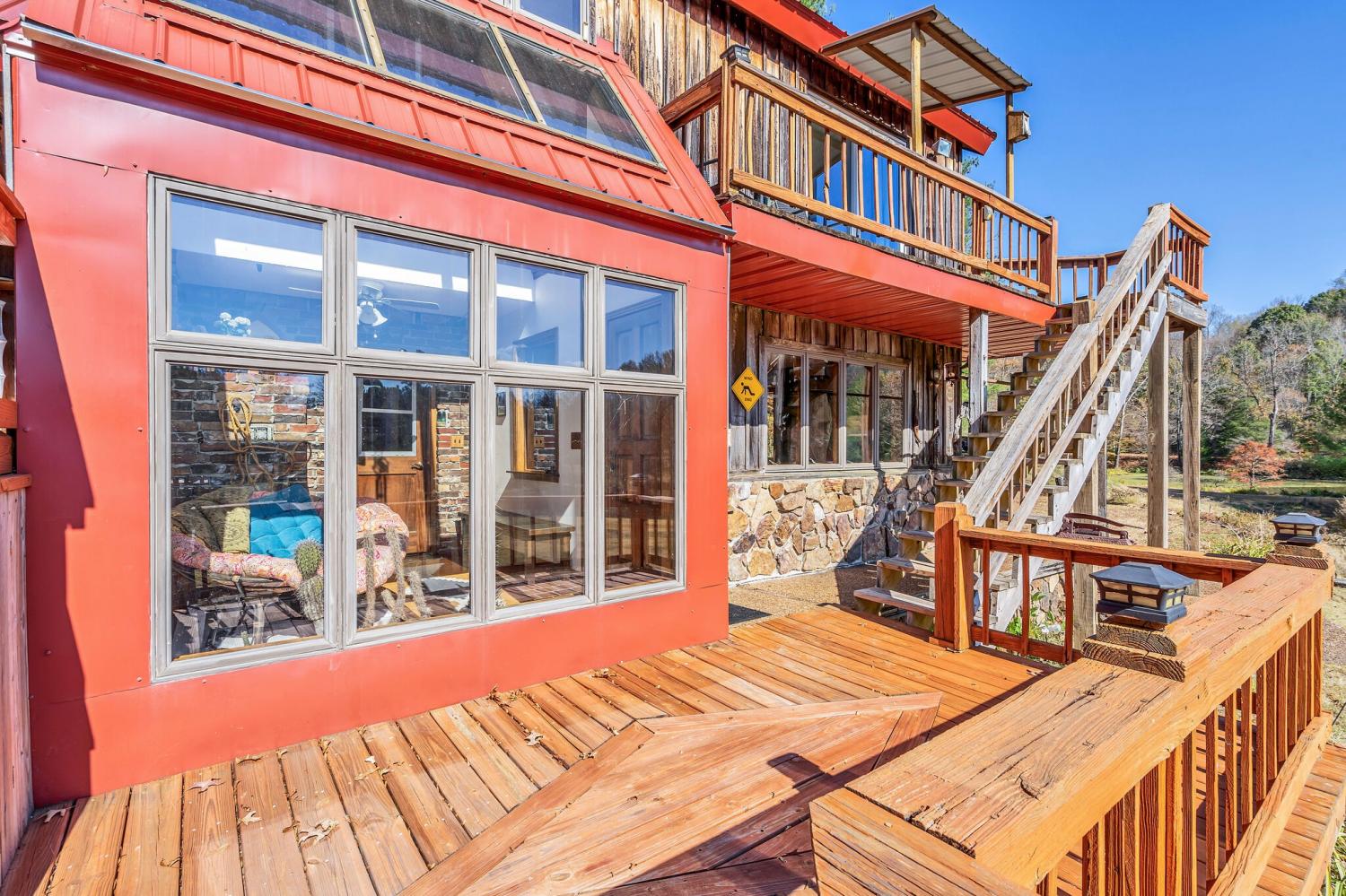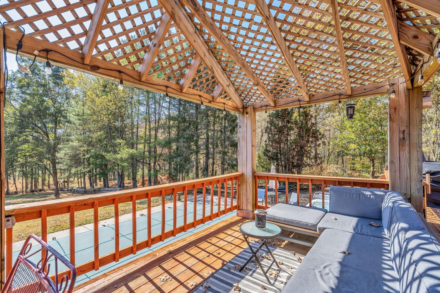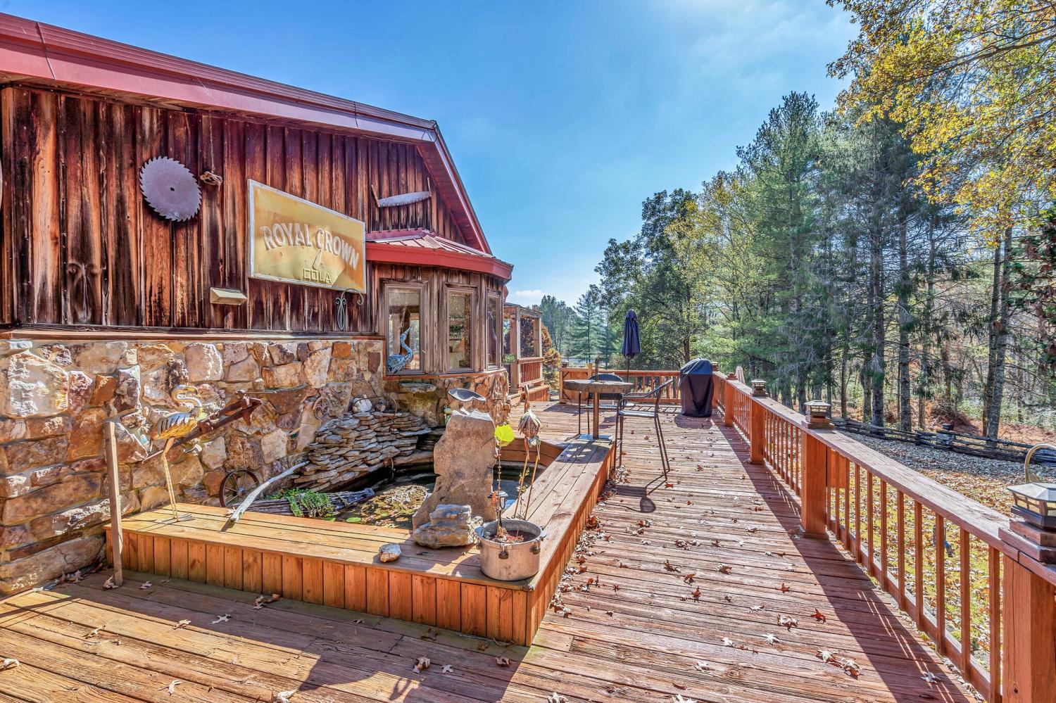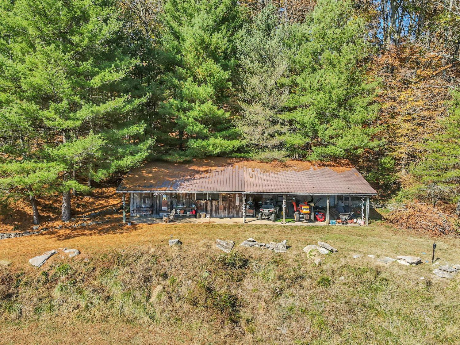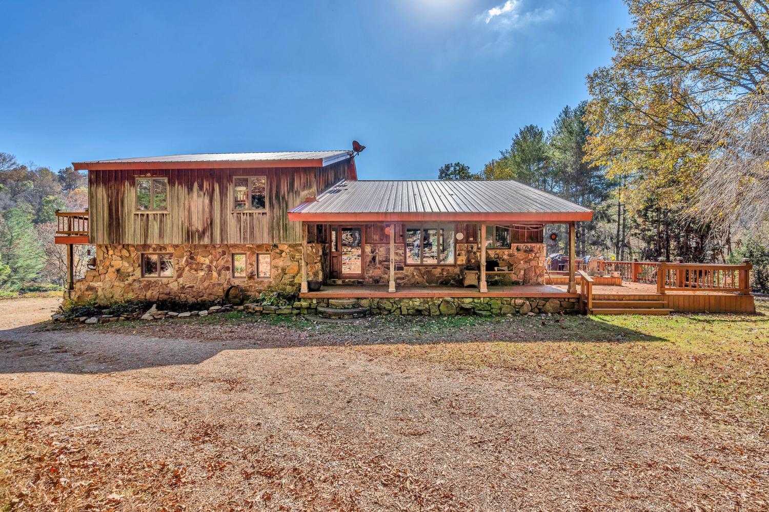 42 acres of spectacular views and peace and quiet! Home comes equipped with hi-speed Internet, game room, wet bar, security system, built-in gun safe into wall, whole house vac system, passive solar/sunroom, inground pool and hot tub. Grounds include 100' well, spring fed lake with bass, hunting posts, 3 hole golf course, multiple patio and decks, Koi pond, fire pit, detached shop/shed with Polaris and tractor (can convey), California fur wood and Arkansas Rock exterior. 10 minutes to historic downtown Pulaski. Currently serving as a very popular AirBNB, all items in house/on grounds can convey.