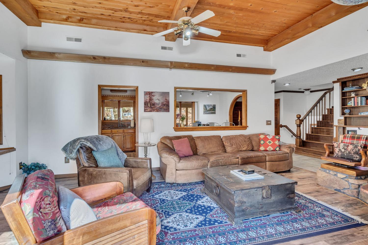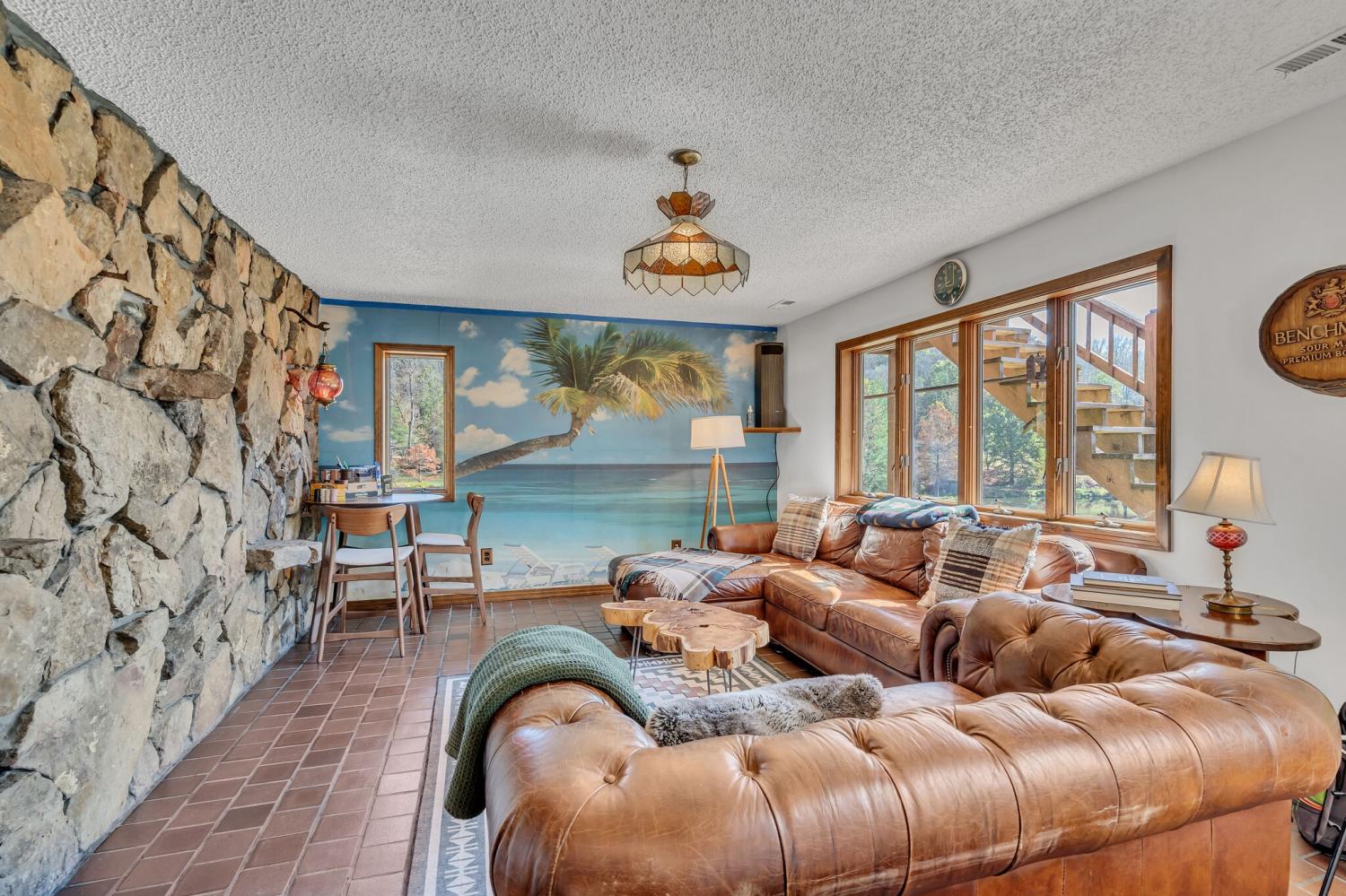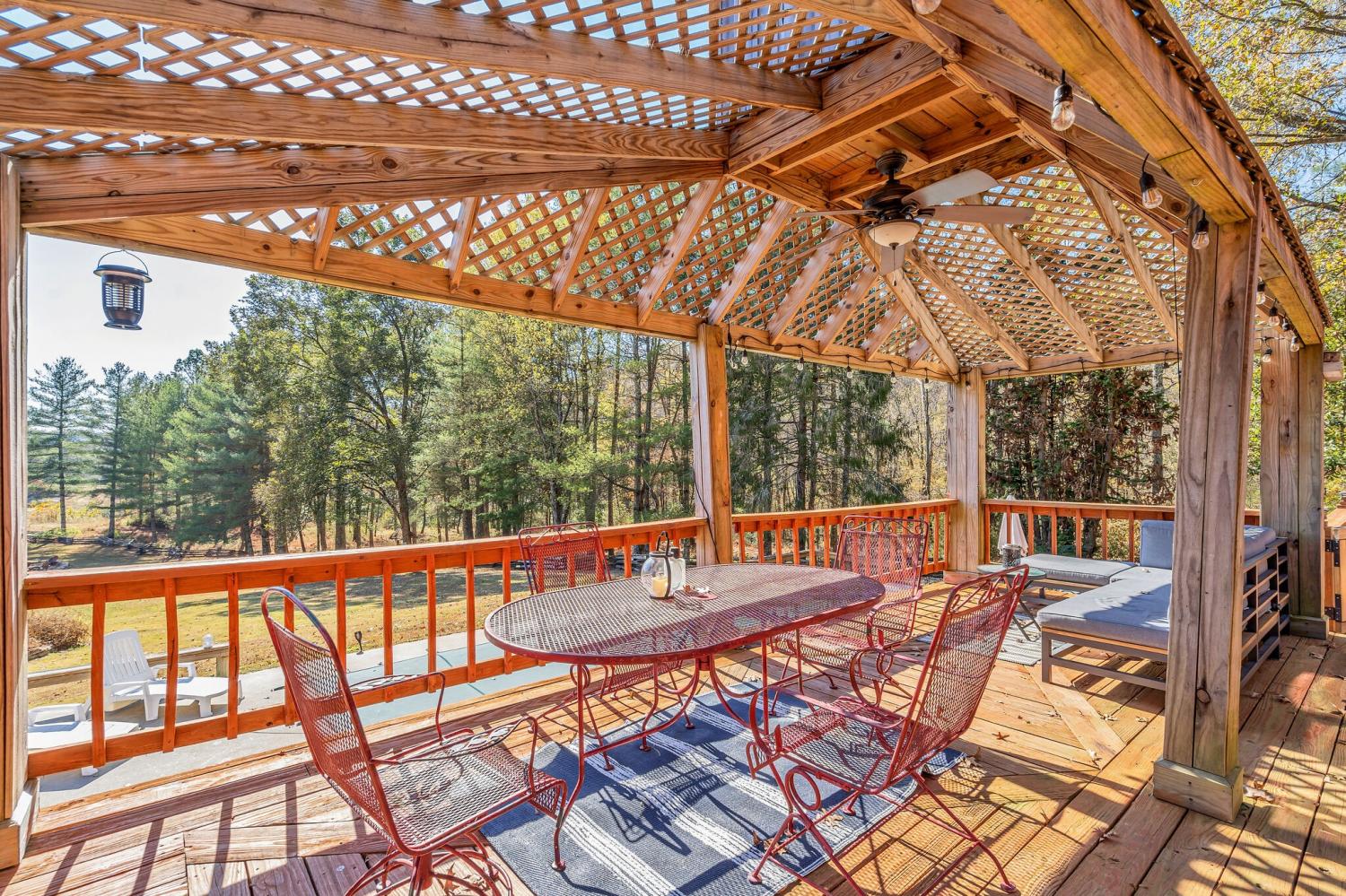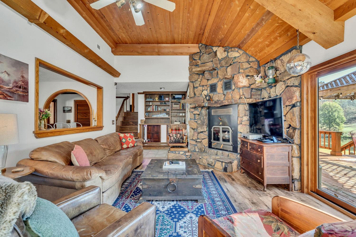 42 acres of spectacular views and peace and quiet! Home comes equipped with hi-speed Internet, game room, wet bar, security system, built-in gun safe into wall, whole house vac system, passive solar/sunroom, inground pool and hot tub. Grounds include 100' well, spring fed lake with bass, hunting posts, 3 hole golf course, multiple patio and decks, Koi pond, fire pit, detached shop/shed with Polaris and tractor (can convey), California fur wood and Arkansas Rock exterior. 10 minutes to historic downtown Pulaski. Currently serving as a very popular AirBNB, all items in house/on grounds can convey.