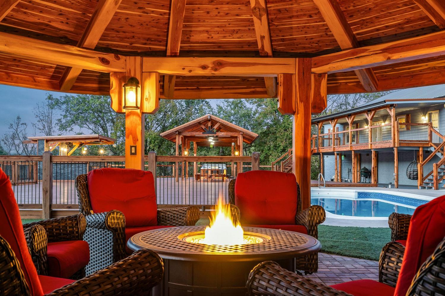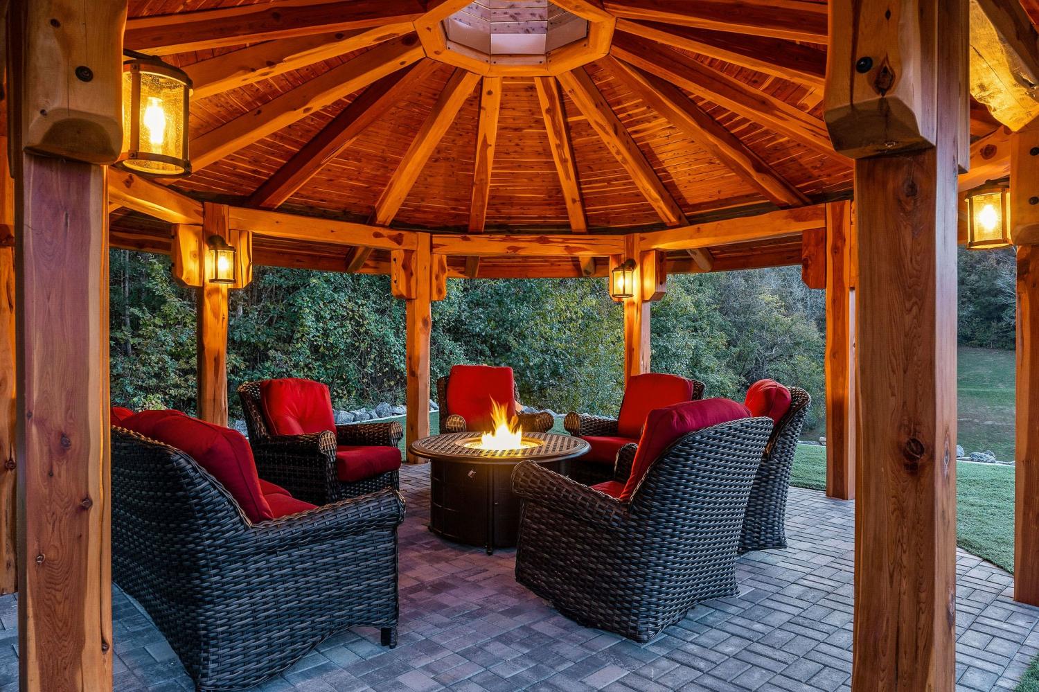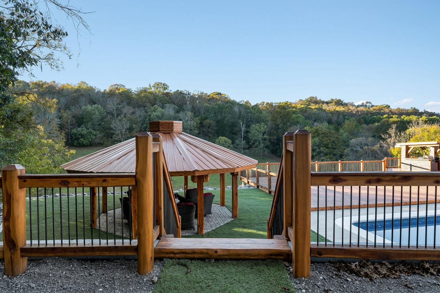 Private 11.4 acres w/stunning 4BR, 3BA home- owner sparing no expense. Large spacious living area has stone fireplace w/easy access to beautiful kitchen featuring snack bar, island, walk-in pantry & smart appliances. Primary bedroom has classic bath, jacuzzi tub, walk-in tile shower & more. The outdoor retreat is indescribable with all the extras: in ground salt water pool, 18x18 octagon shaped pergola w/firepit & turf game area, 24'x14' covered shelter w/built in 15' cedar table, covered 9 person Artesian hottub, outdoor shower, huge outdoor kitchen w/pizza oven, beer keg w/tap, wine cooler, grill, refrigerator & outdoor TV, this 5000 sq ft deck offers endless entertainment, other extras includes 600 sq ft furnished guest house perfect for AirBnb, detached 2 car garage, 2 additional workshops, chicken coop w/fenced yard, this property is surrounded by impressive cedar/iron custom fencing ideal for horses, So much to offer, must see to believe, call today for private tour.