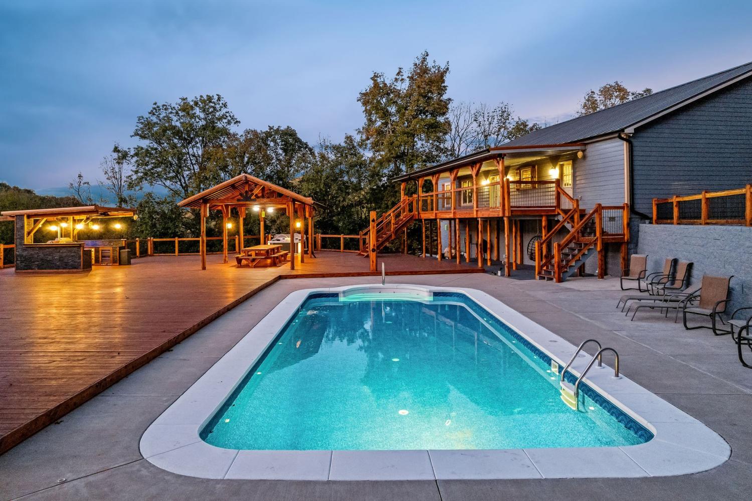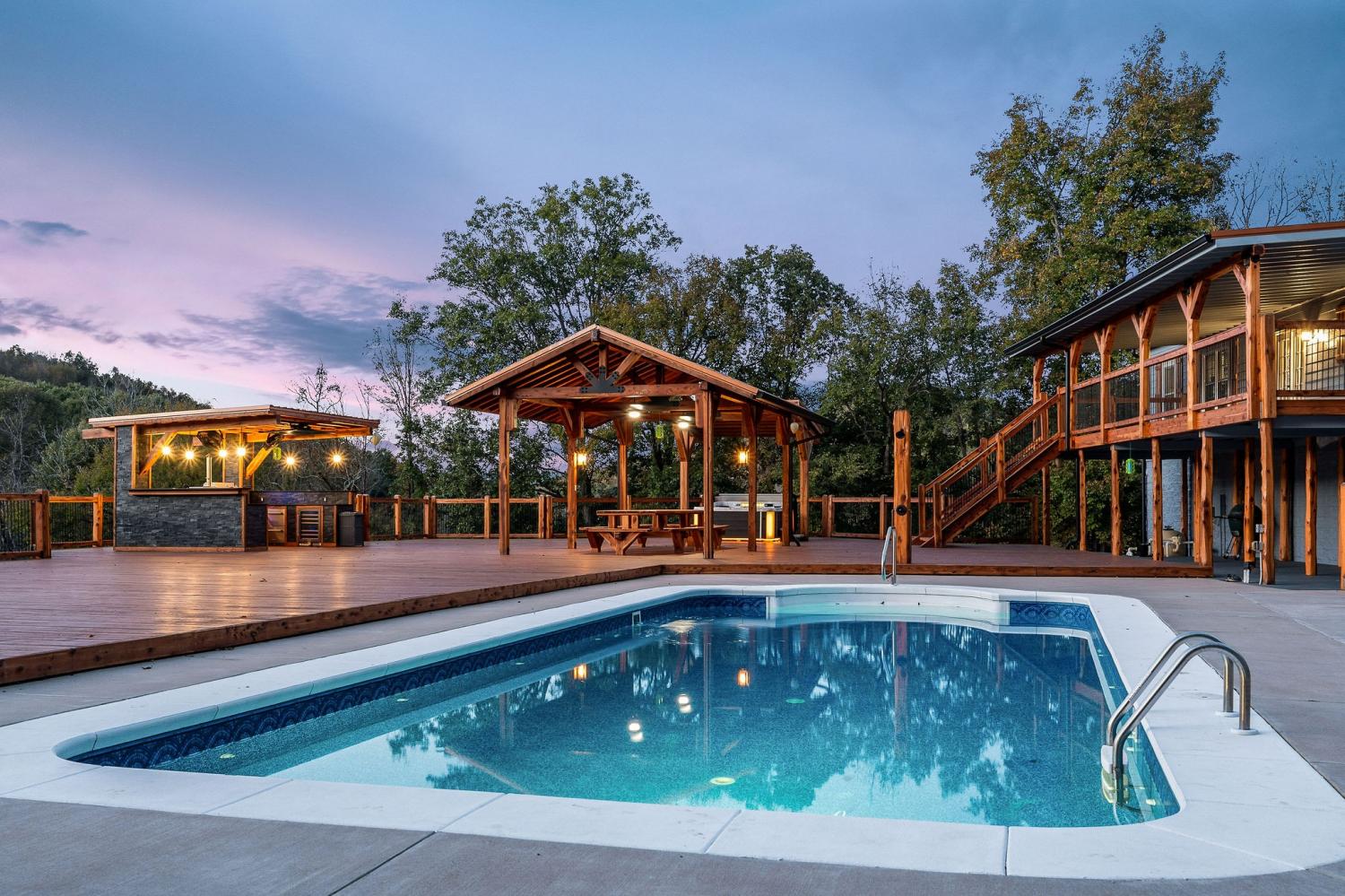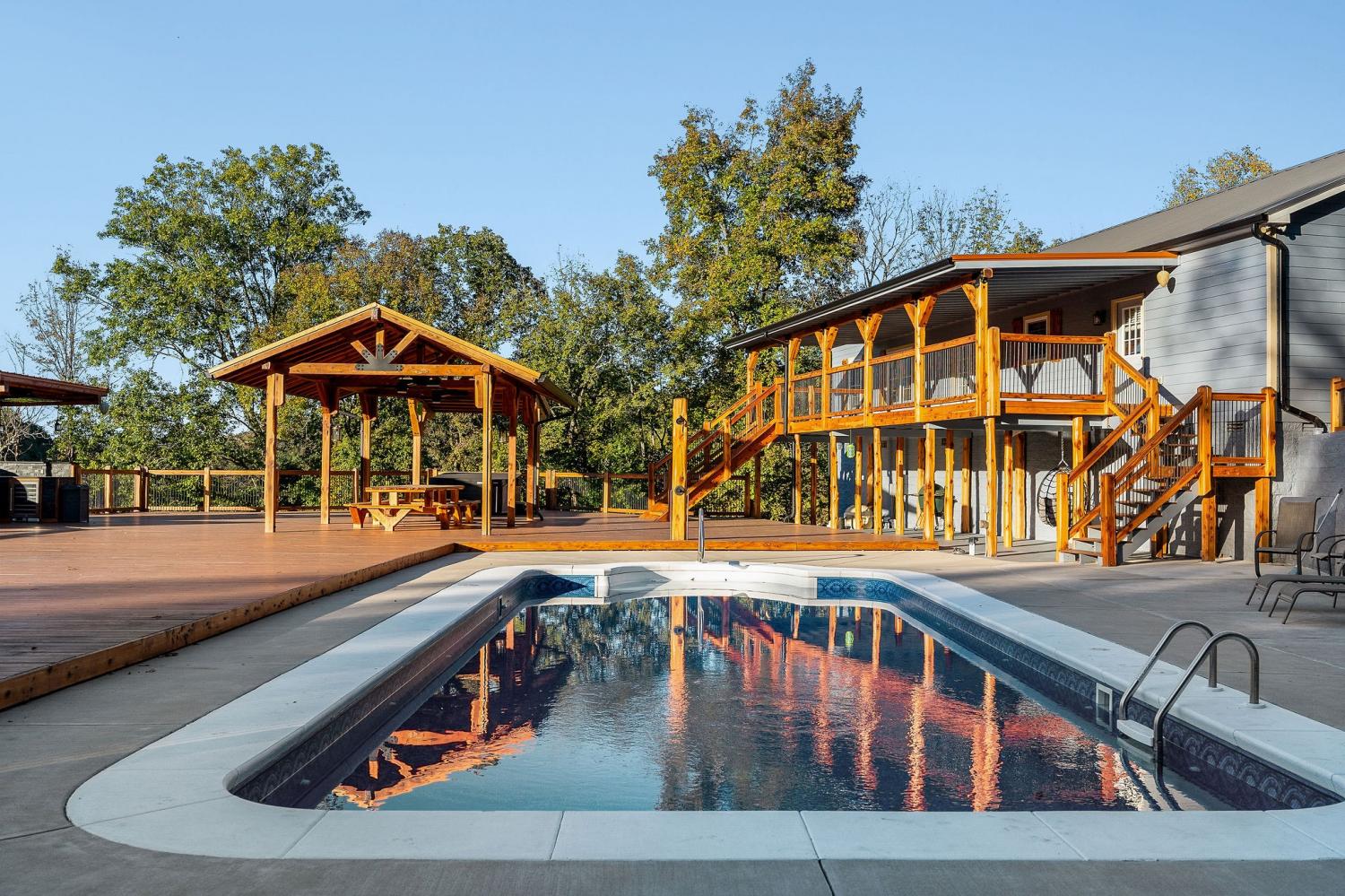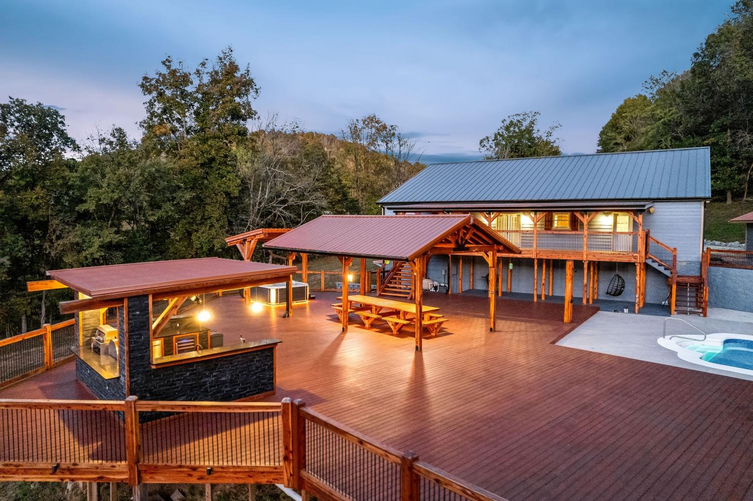 Private 11.4 acres w/stunning 4BR, 3BA home- owner sparing no expense. Large spacious living area has stone fireplace w/easy access to beautiful kitchen featuring snack bar, island, walk-in pantry & smart appliances. Primary bedroom has classic bath, jacuzzi tub, walk-in tile shower & more. The outdoor retreat is indescribable with all the extras: in ground salt water pool, 18x18 octagon shaped pergola w/firepit & turf game area, 24'x14' covered shelter w/built in 15' cedar table, covered 9 person Artesian hottub, outdoor shower, huge outdoor kitchen w/pizza oven, beer keg w/tap, wine cooler, grill, refrigerator & outdoor TV, this 5000 sq ft deck offers endless entertainment, other extras includes 600 sq ft furnished guest house perfect for AirBnb, detached 2 car garage, 2 additional workshops, chicken coop w/fenced yard, this property is surrounded by impressive cedar/iron custom fencing ideal for horses, So much to offer, must see to believe, call today for private tour.