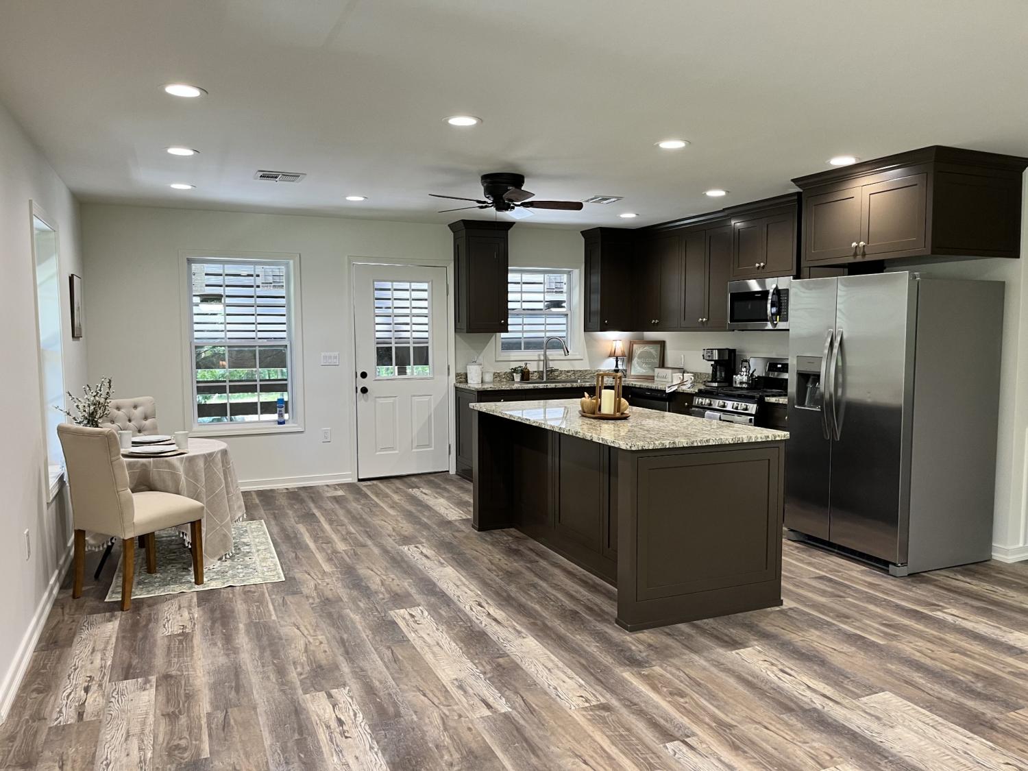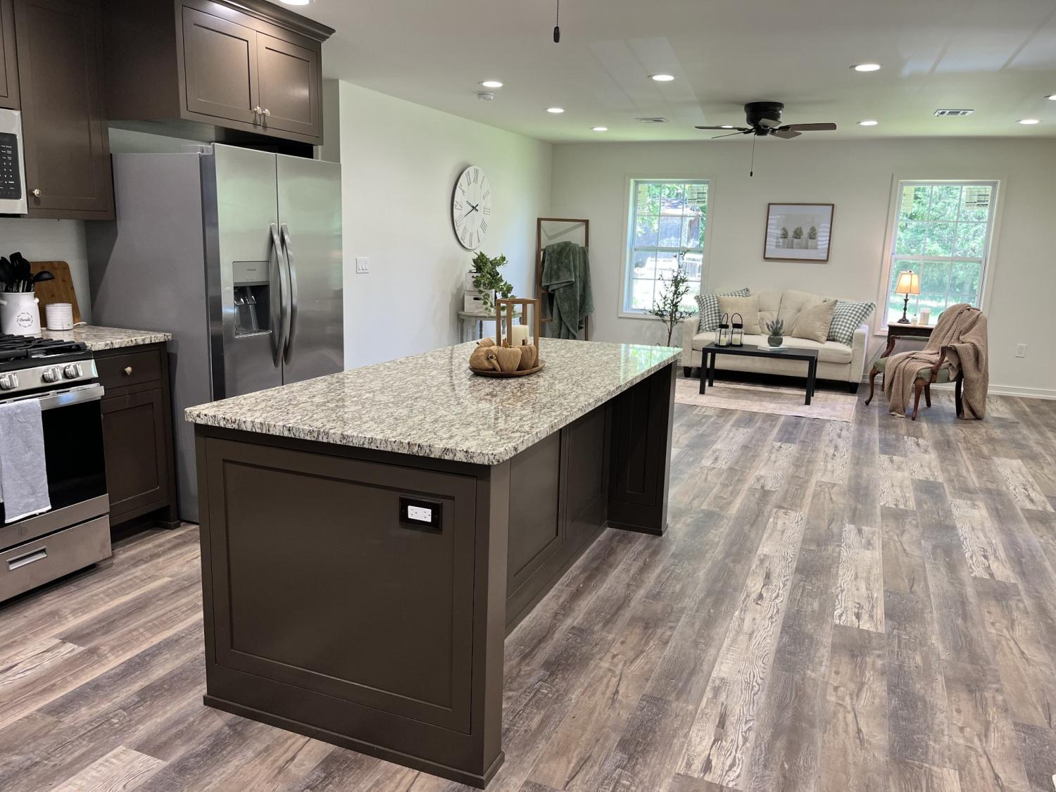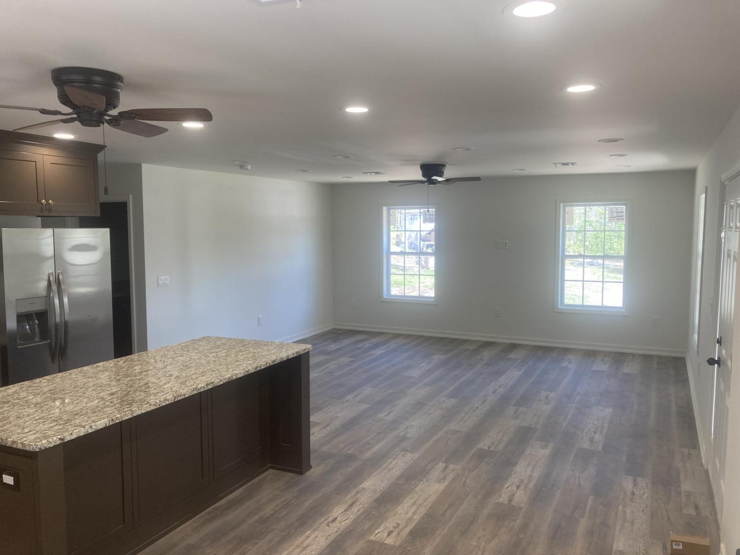New construction, 1482 sq ft, 3 bedroom 2 bath, with storm shelter. Diamond Kote siding and stone exterior. 320 sq ft covered front porch, 672 sqft covered carport. Custom cabinets, granite tops, waterproof vinyl floors to be installed. 2x6 wall exterior with R 19 insulation ceiling has R 38 insulation. Gas range heat pump AC unit and high-speed Internet.