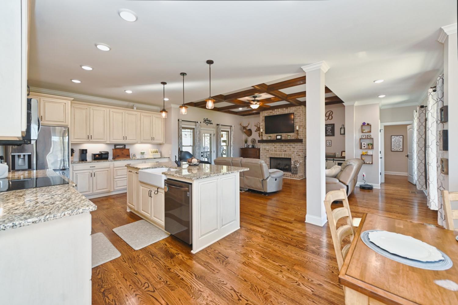 This beautiful place is can be where you call home. Located in a great location convenient to all the amenities and easy interstate access. The home sets on 2 acres and includes a free-flowing family area making up the kitchen, dining room and living room. Attention is quickly drawn to the coffered trey ceiling in the living room and the brick fireplace with gas logs. The master suite with his and her walk-in closets, a large tiled shower, as well as two separate vanities provides a lot of convenience. Walk in closets are also included in the second and third bedrooms. Above the two-car attached garage is an unfinished 453 square foot bonus room that gives the opportunity for the buyer to design some added space however they choose. A 30 x 50 detached shop with 12-foot lean to, 14 foot garage door with 3 additional walk out doors, within the detached garage is a 20x20 living room, 10x10 bathroom with a shower, vanity and toilet, 10x10 storage area, the shop has a stove outlet and a utility sink, this awesome space provides plenty of room to entertain family and friends. Located above the shop is 600 square feet of floored storage. Come see what all this special property offers.