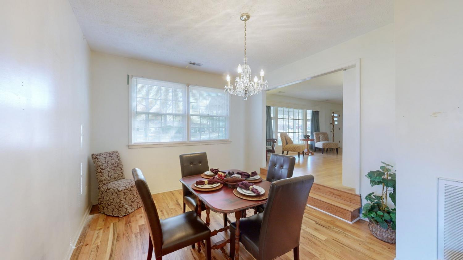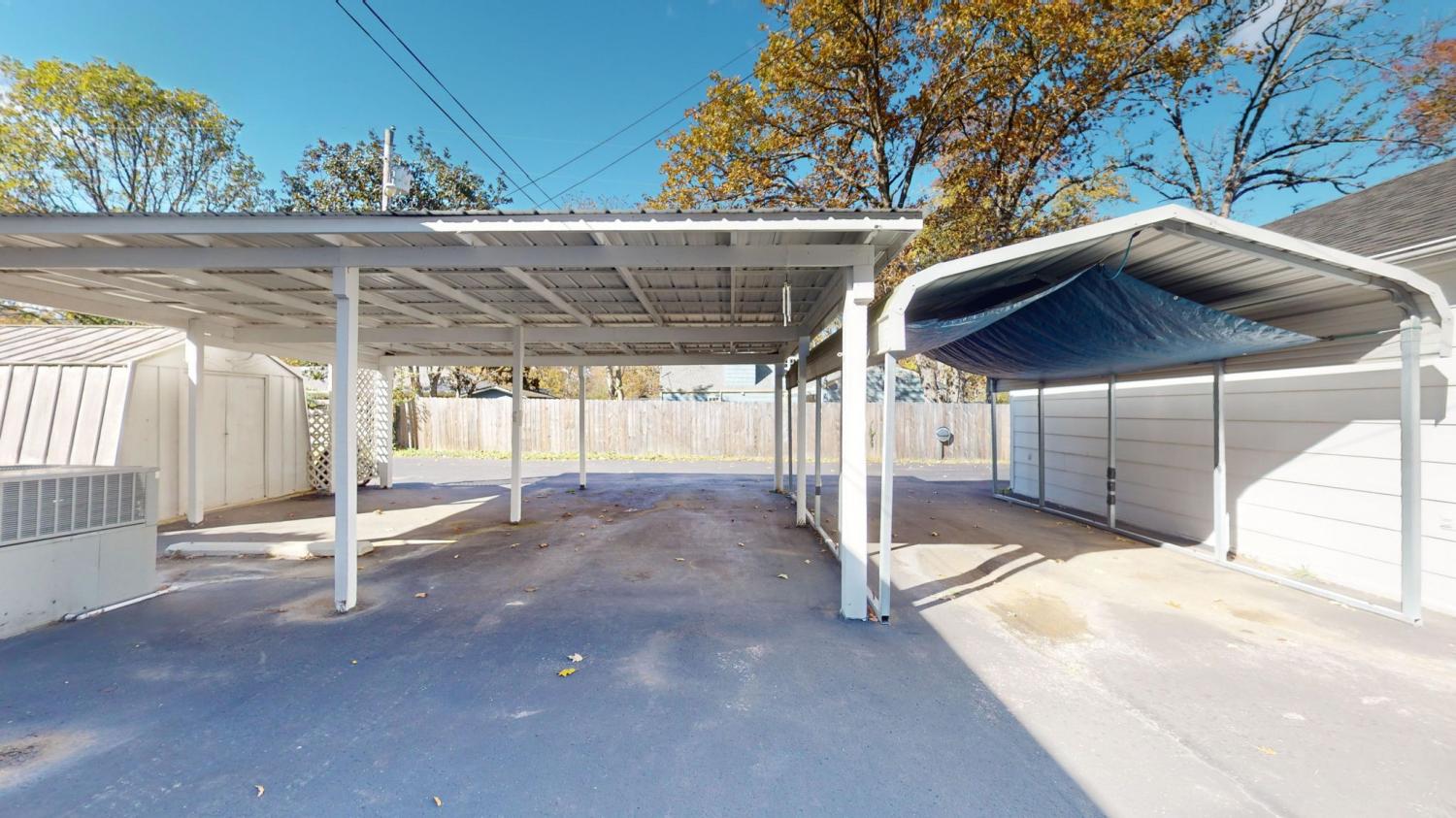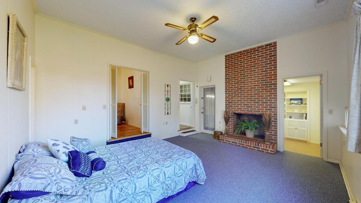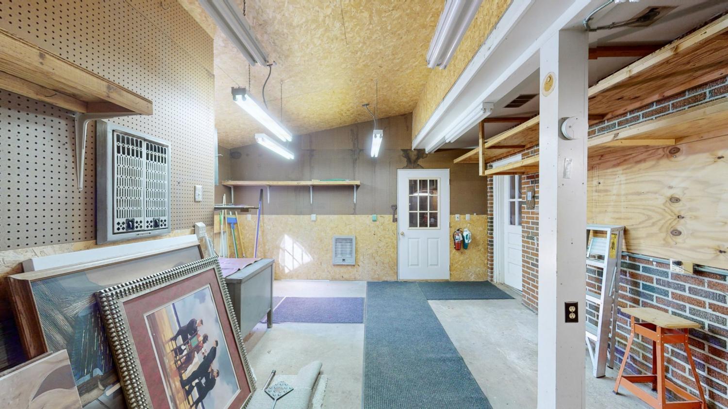 Beautiful 2,182 sq ft 4 bedrooms, 2 bath brick home on a large corner lot with new roof that includes transferable warranty. This unique home was built with storage and comfort in mind! Entering the large living room, you'll notice the beautiful hardwood flooring, built-in bookcase, large coat closet, and the stunning focal point, the large picture window with a custom curtain valance. Bright, charming eat-in kitchen. Step down from the living room into the formal dining room. The Primary bedroom suite has 10 ft ceilings, a bathroom with a shower, a walk-in closet and a private sitting room that would be perfect for an exercise room or an additional walk-in closet! There's a woodburning brick fireplace! There's 3 guest bedrooms and a full bath on the other side of the home. There's a bonus room with a closet that leads into the 4th bedroom. Currently used as an office, it could be used as a 5th bedroom. The 4th bedroom also has an exterior door and would be perfect as an in-law room or an office. Need workshop space? This is the home for you! There are 3 workshop areas! One of the workshops has a utility sink. The largest of the workshops could be converted to a 2-car garage. There are 3 carports.