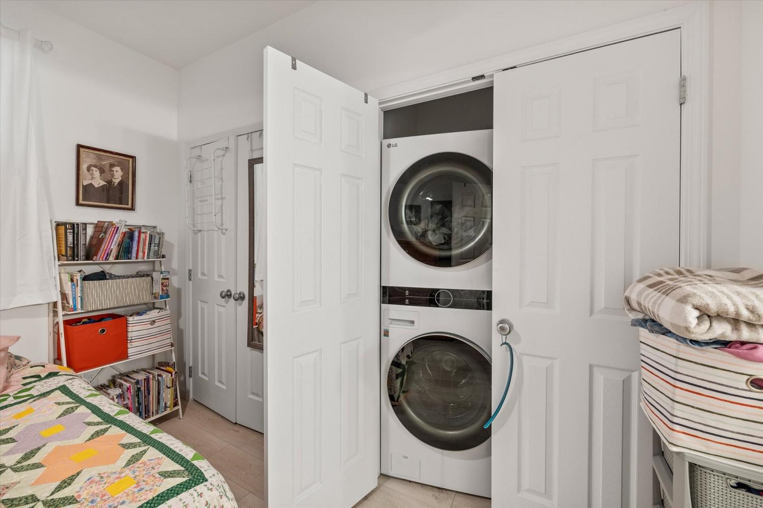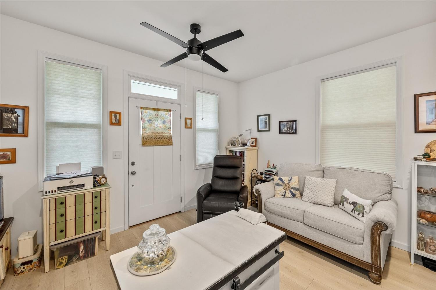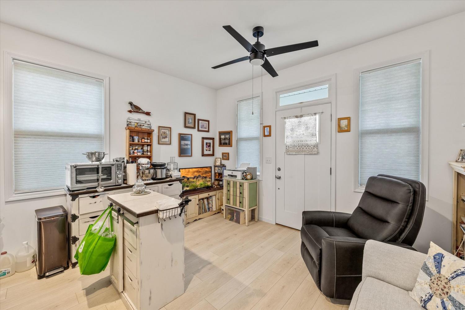 Like new cottage style home located close to town and near all of the necessities! You have a corner lot providing a driveway that leads into a carport + outdoor storage, as well as a covered front porch. Walking in is your open concept living area and kitchen with island space. Down the hall is your first bedroom + full bath with a shower/tub combo. The back of the home also offers another bedroom + bathroom with a walk- in shower as well as your stackable washer dryer area. All the closets have great shelving systems for storage. The neighborhood provides sidewalks and a easy, modern living style! 13 month home warranty for peace of mind.