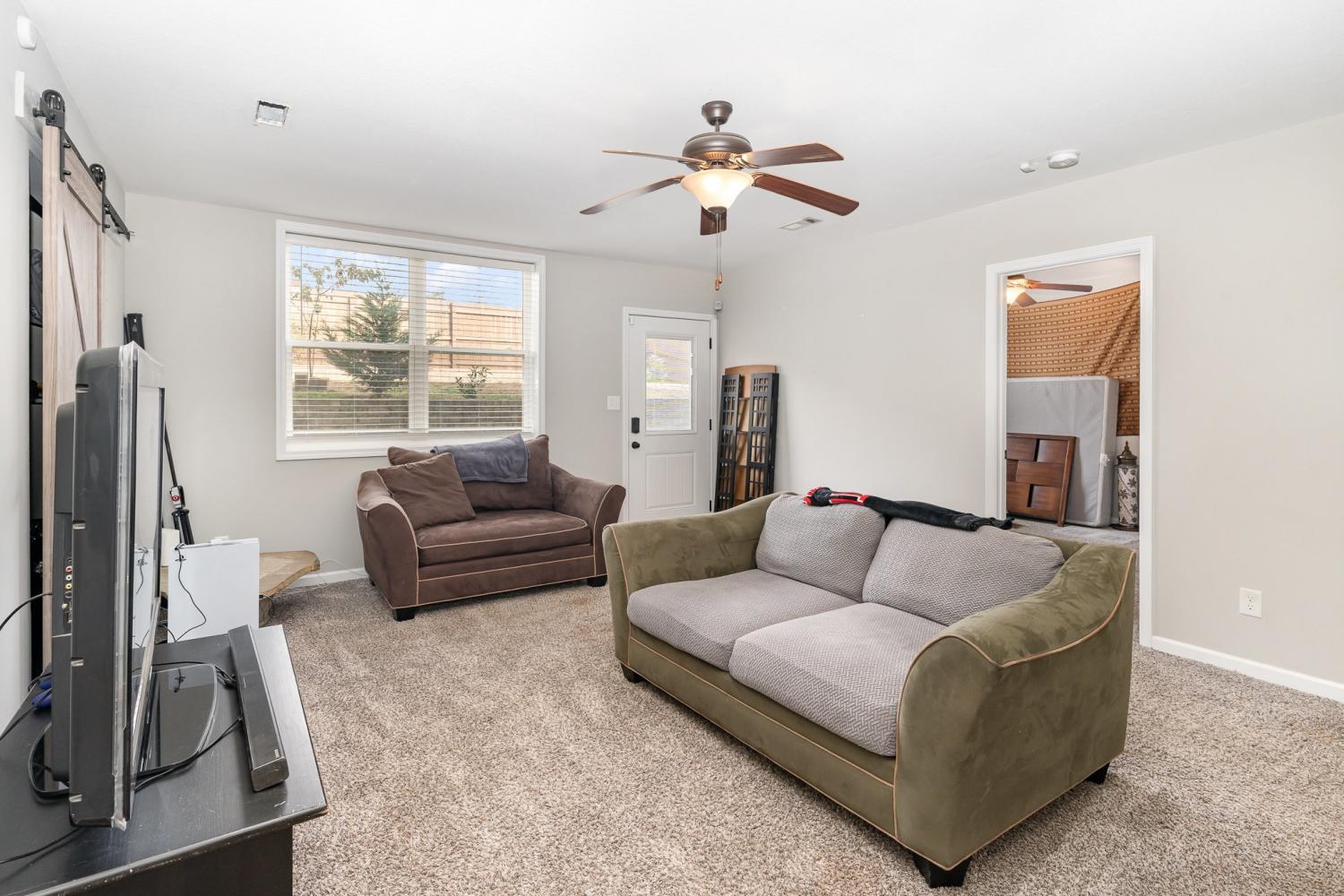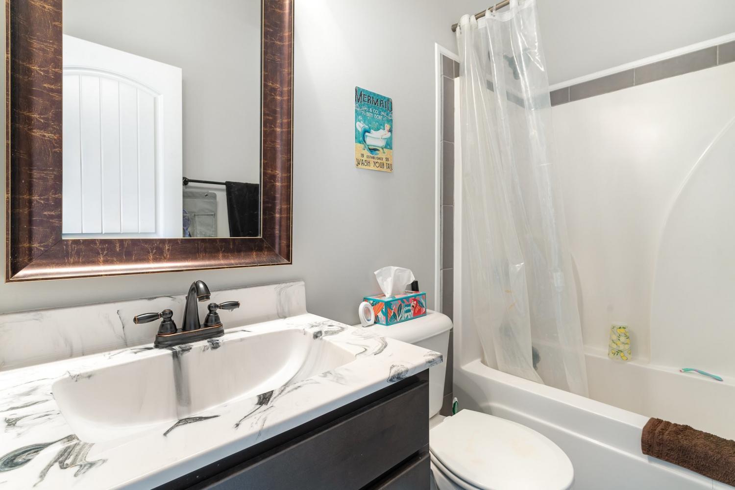 This stunning 5-bedroom, 3-bathroom split foyer is designed for modern living with an open layout that invites comfort and style. Step into the heart of the home, where you'll discover an updated kitchen equipped with stainless steel appliances, granite countertops, and a stylish tile backsplash, beautifully complementing the home’s elegant finishes. The spacious living room features a vaulted ceiling and a charming shiplap fireplace, creating a warm and inviting atmosphere perfect for family gatherings or entertaining guests. Each of the generously sized bedrooms offers ample space, with the primary bedroom standing out thanks to its HUGE walk-in closet, satisfying all your storage needs. Head down to the rec room in the basement, which provides convenient access to the fenced-in backyard. This outdoor oasis includes a covered deck and patio, ideal for summer barbecues, along with a cozy firepit for those chilly evenings. This home truly has it all—comfort, style, and ample space for your friend's and family's needs!