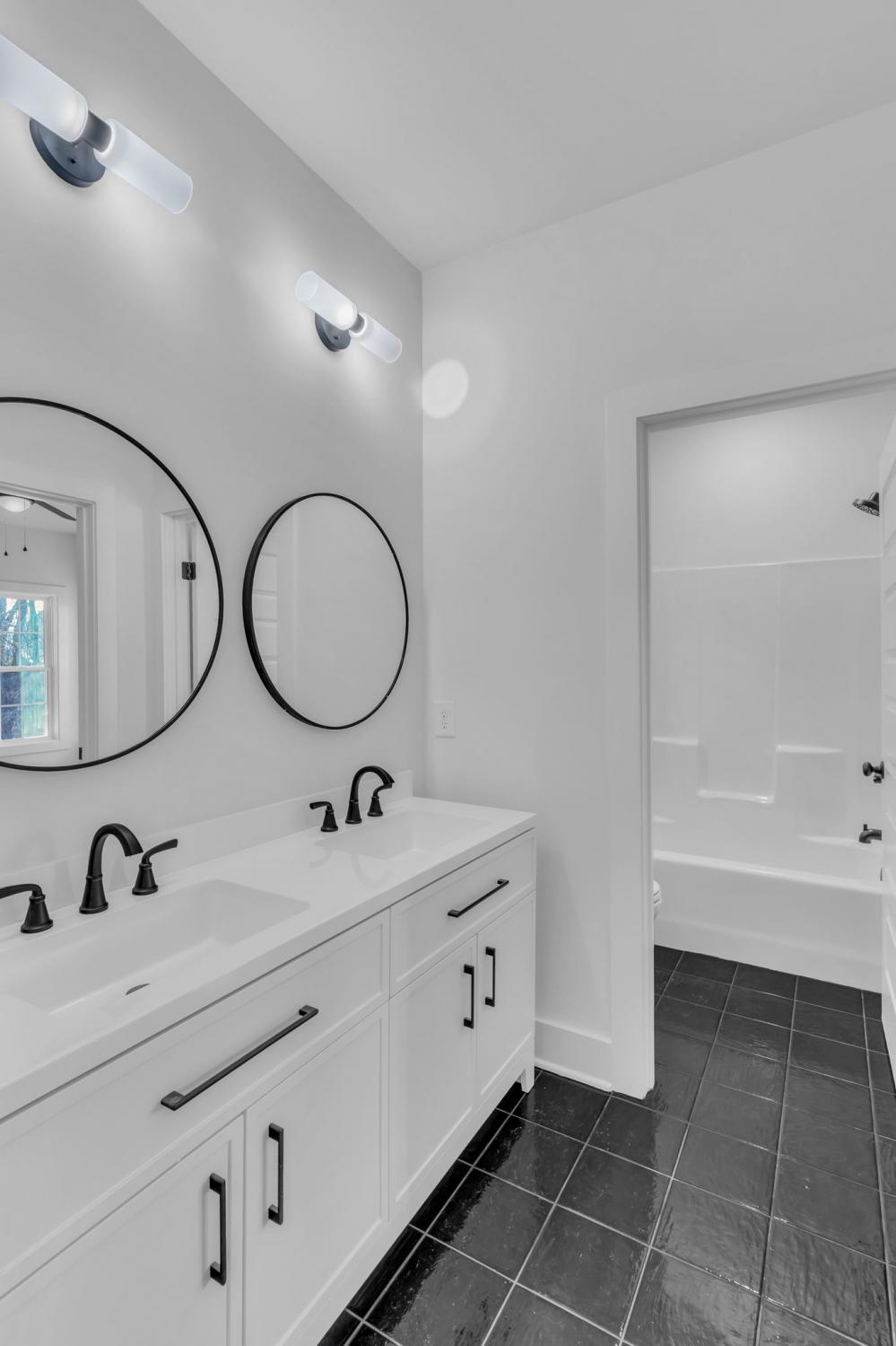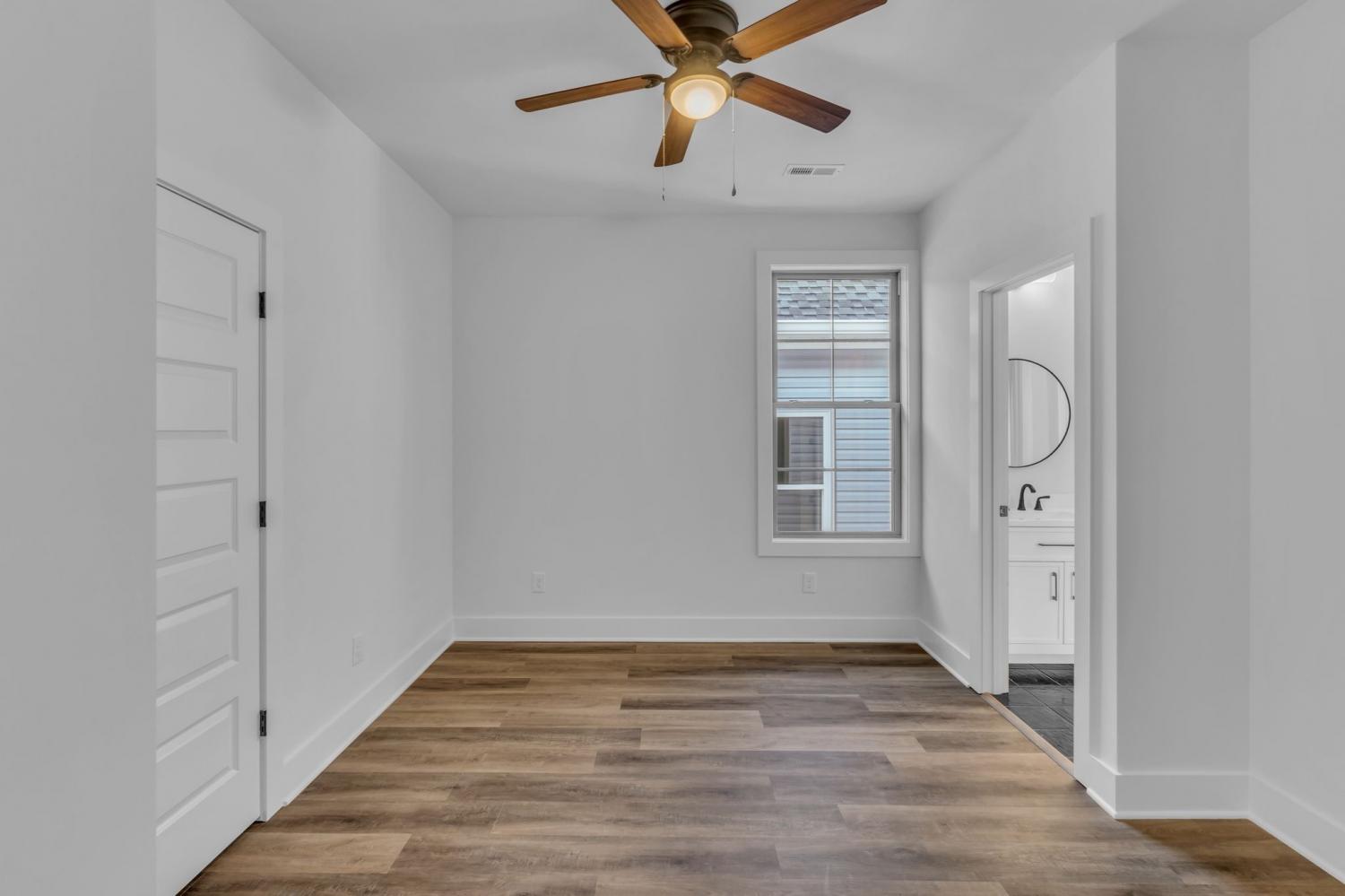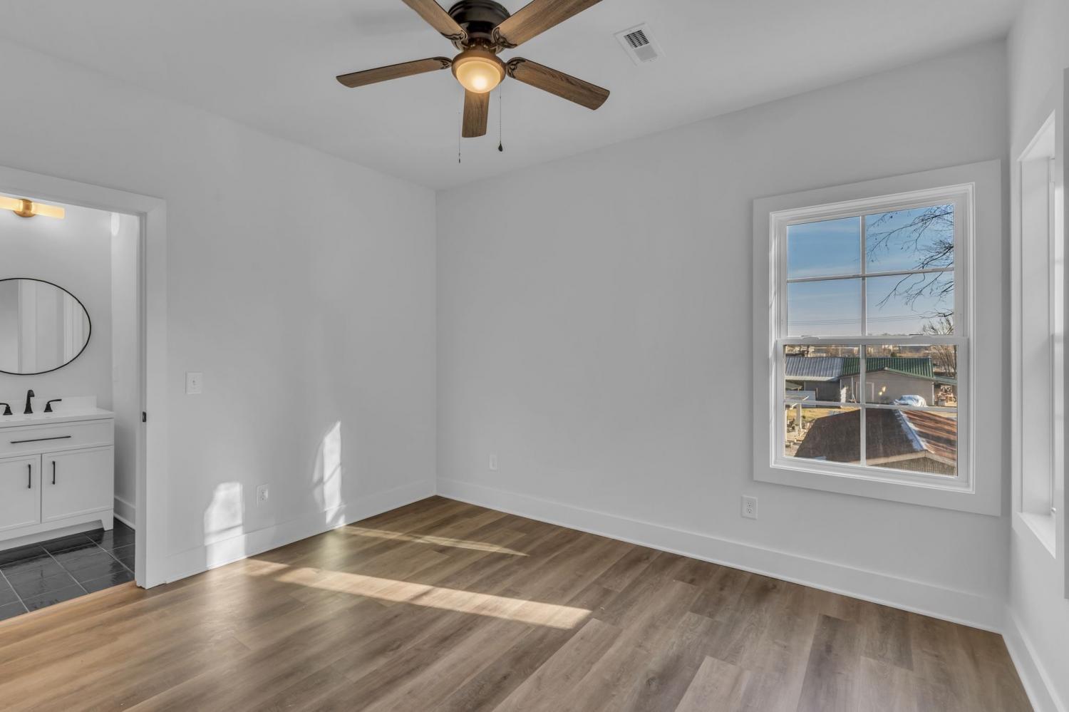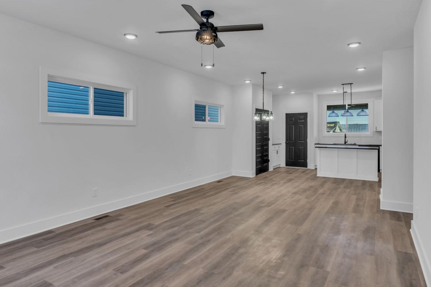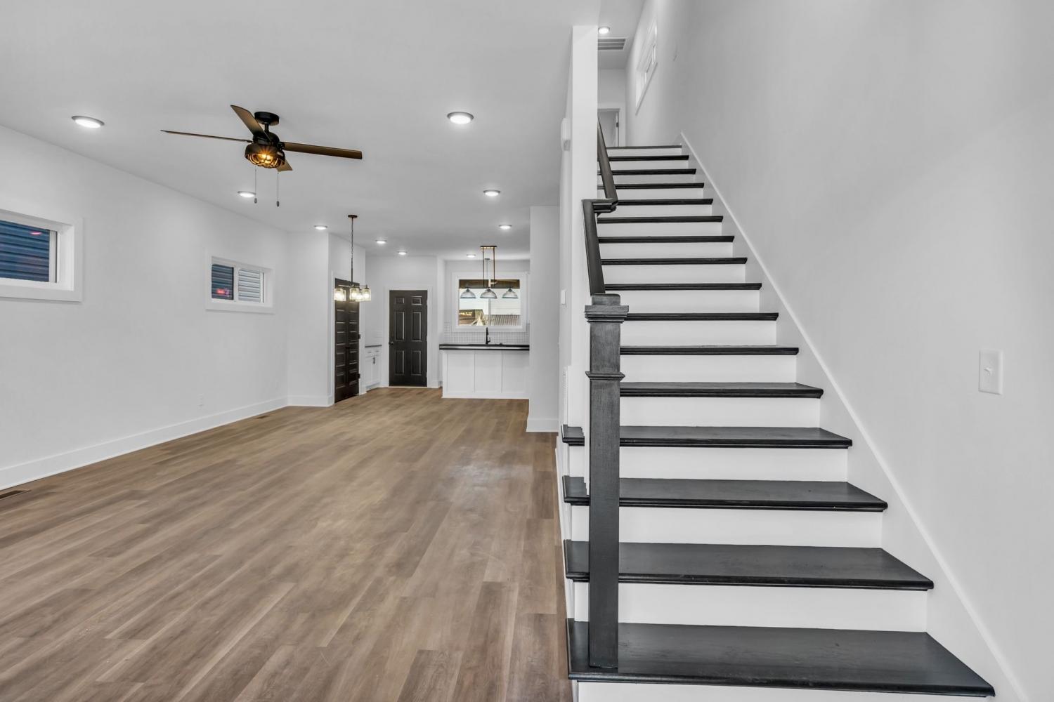 This stunning new two-story home features a welcoming covered front porch and a spacious covered deck, perfect for outdoor living. With three bedrooms and two and a half baths, the home offers a well-designed, open-concept great room, kitchen, and dining area, ideal for modern living and entertaining. The main level includes a convenient half bath, while the fenced backyard provides privacy and a shaded retreat, with mature trees enhancing the outdoor space. The interior boasts top-of-the-line appliances, custom cabinetry, and high-quality flooring, with elegant tile detailing in the bathrooms. Double-hung windows add to the home's efficiency and aesthetic appeal.