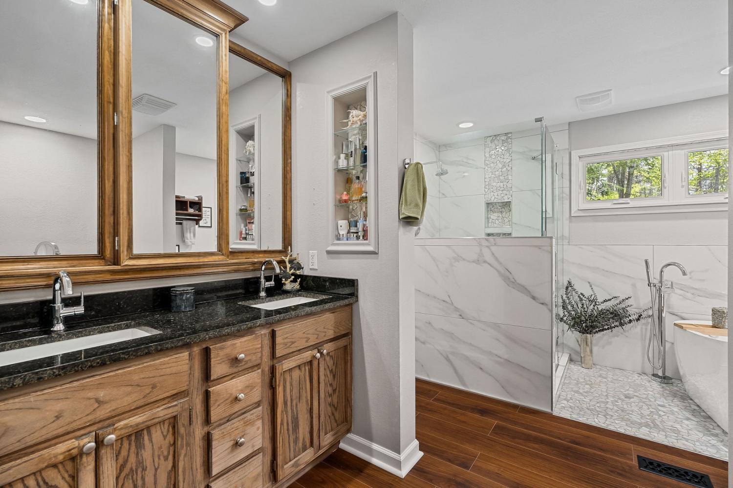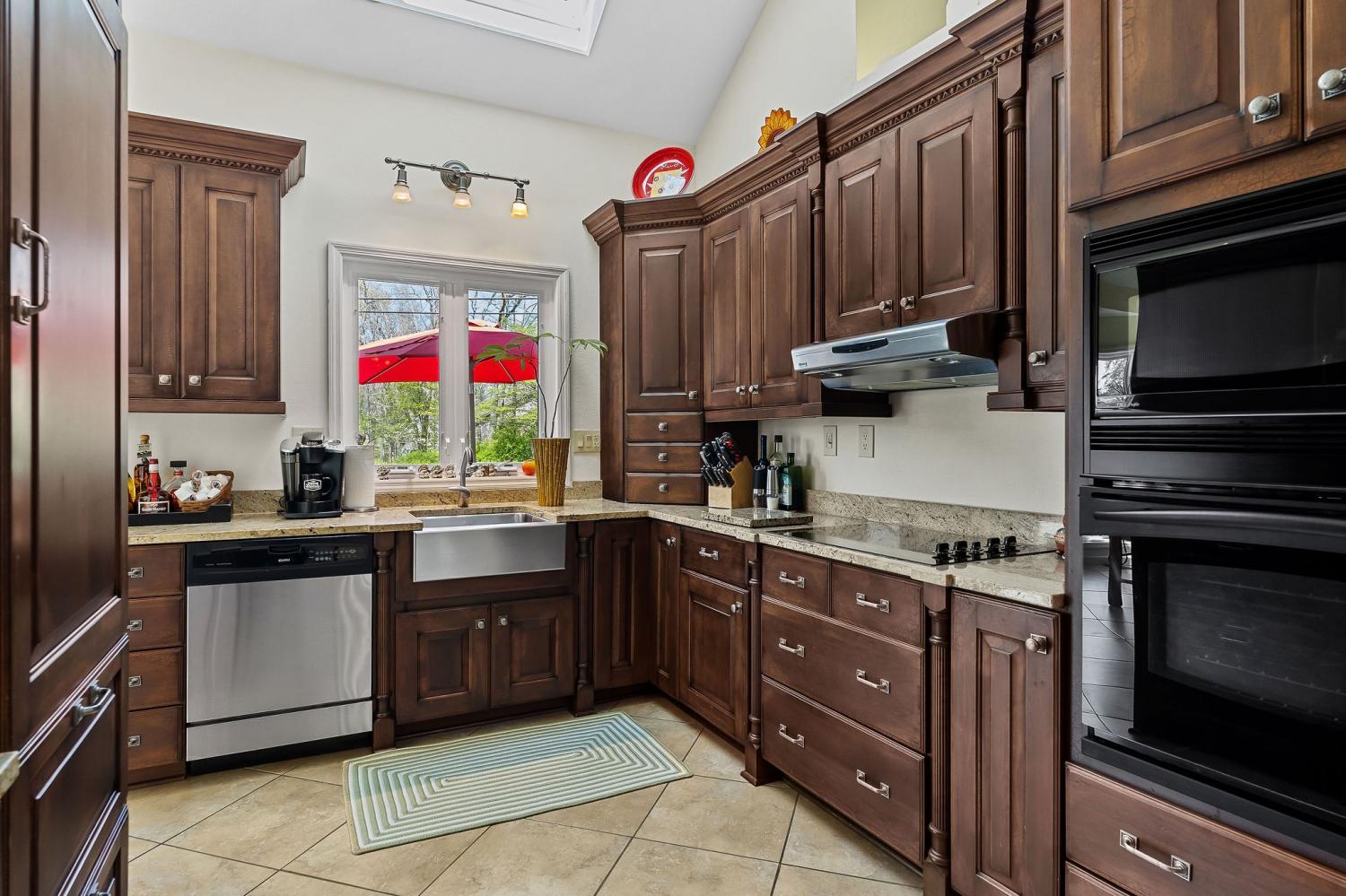 This charming, one-of-a-kind home is a rare find in the heart of Fairfield Glade, the #1 Golf Capital and resort community. Meticulously maintained and brimming with character, it boasts a $32K primary bathroom renovation featuring a stunning walk-in shower, soaker tub, and pebble stone floors. The unique design offers a 2 story foyer, 2 main-level bedrooms and a 3rd bedroom upstairs with a half bath, perfect for privacy and flexibility. Perched on a spacious corner lot with picturesque lake views, this home exudes charm at every turn. The kitchen dazzles with hazelnut "crackle" cabinetry by the Mullet Company and custom sub zero refrigerator and granite countertops, while vaulted ceilings with exposed wood beams, a TN stone fireplace, and a separate den create warm, inviting living spaces. Enjoy mornings in the bright, airy breakfast nook with serene lake views. The beautifully maintained exterior features an outdoor koi pond and steps leading to a sprawling 22x23 stone patio, offering a tranquil retreat. This distinctive home is truly one of a kind and ready to become your personal oasis!