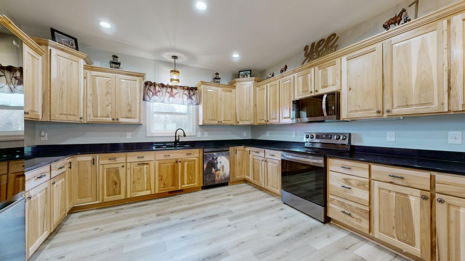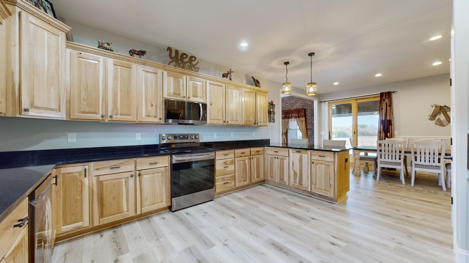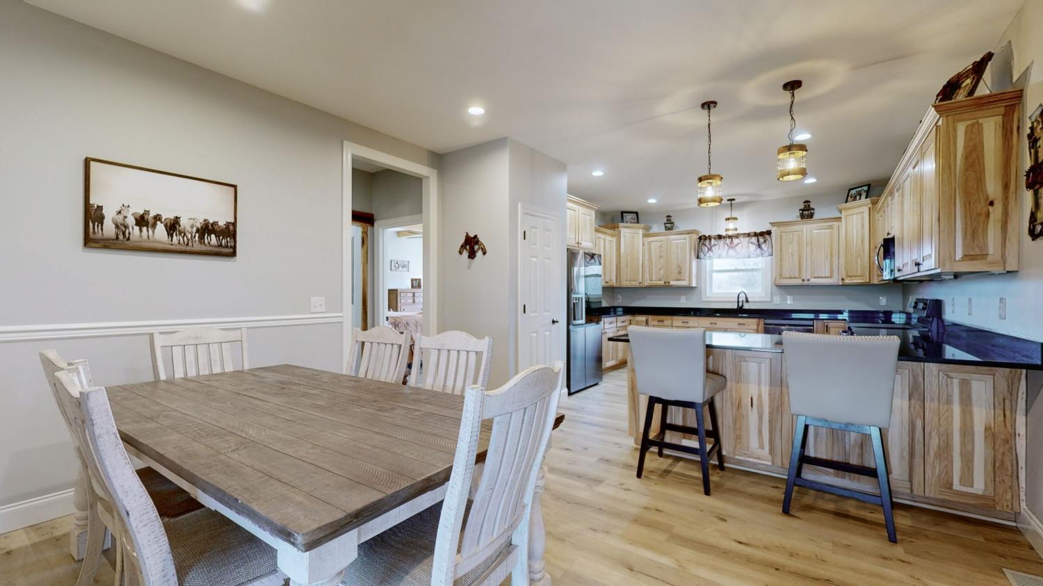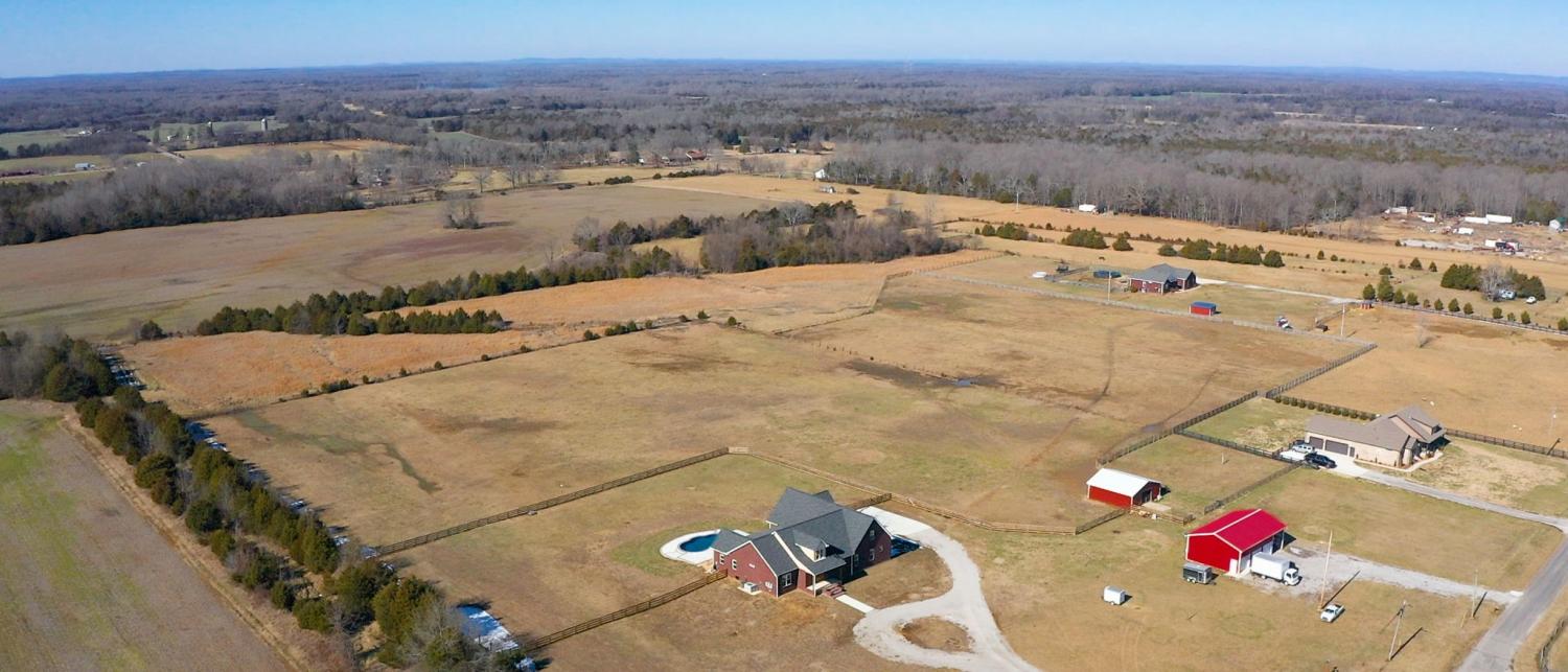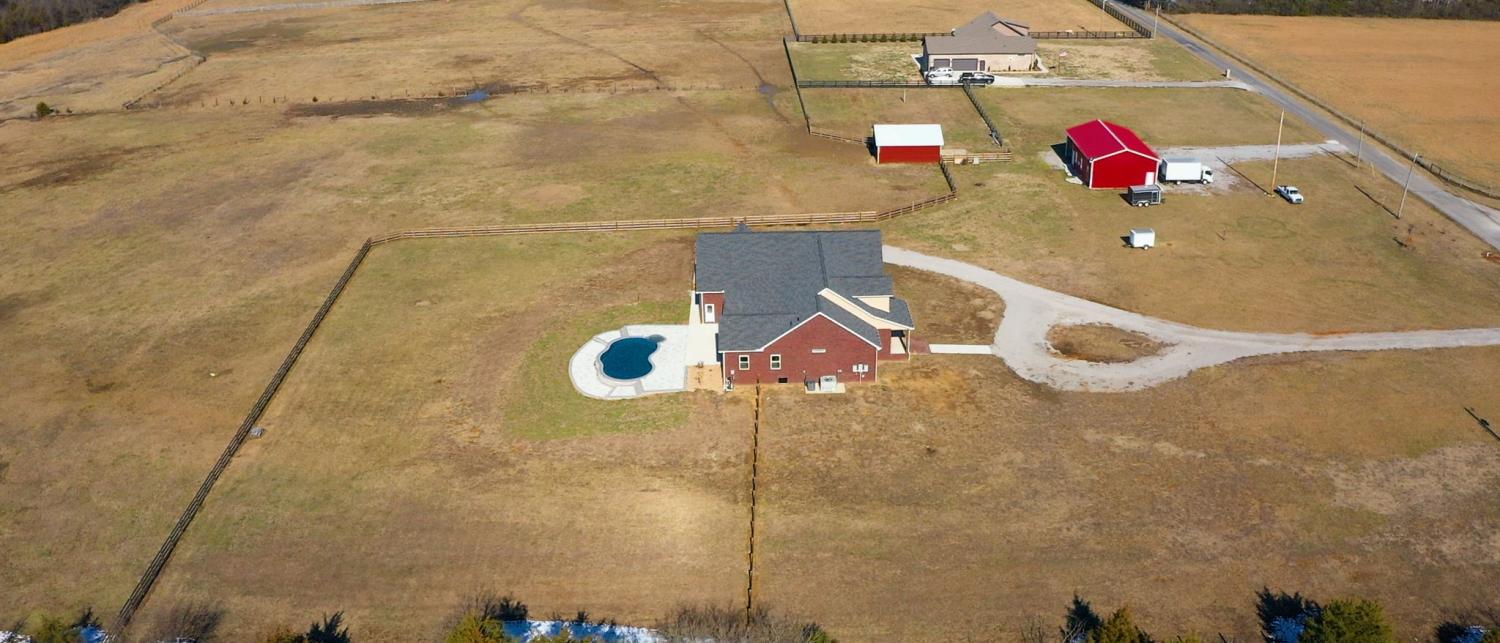 This stunning 3,540 sq. ft. home sits on 13.58 acres of land, perfectly set up for horse enthusiasts and those who love to entertain. The property features a spacious, cross-fenced area ideal for horses, including a 4-stall horse barn with ample storage and a 30x36 shop for all your projects and hobbies. The home itself offers the flexibility of several flex rooms used for offices or a study, with a bonus room designed for entertainment—complete with a wet bar and pool table, perfect for gatherings and family fun. The gourmet kitchen boasts custom cabinetry, providing both beauty and function for any chef. A screened-in porch overlooks the stunning property, offering a peaceful spot to relax and enjoy the view. For those hot summer days, take a dip in the refreshing swimming pool, or enjoy the expansive outdoor space that the acreage provides. With its perfect balance of luxury, practicality, and country charm, this property is a true dream home for those seeking a lifestyle full of comfort and leisure.