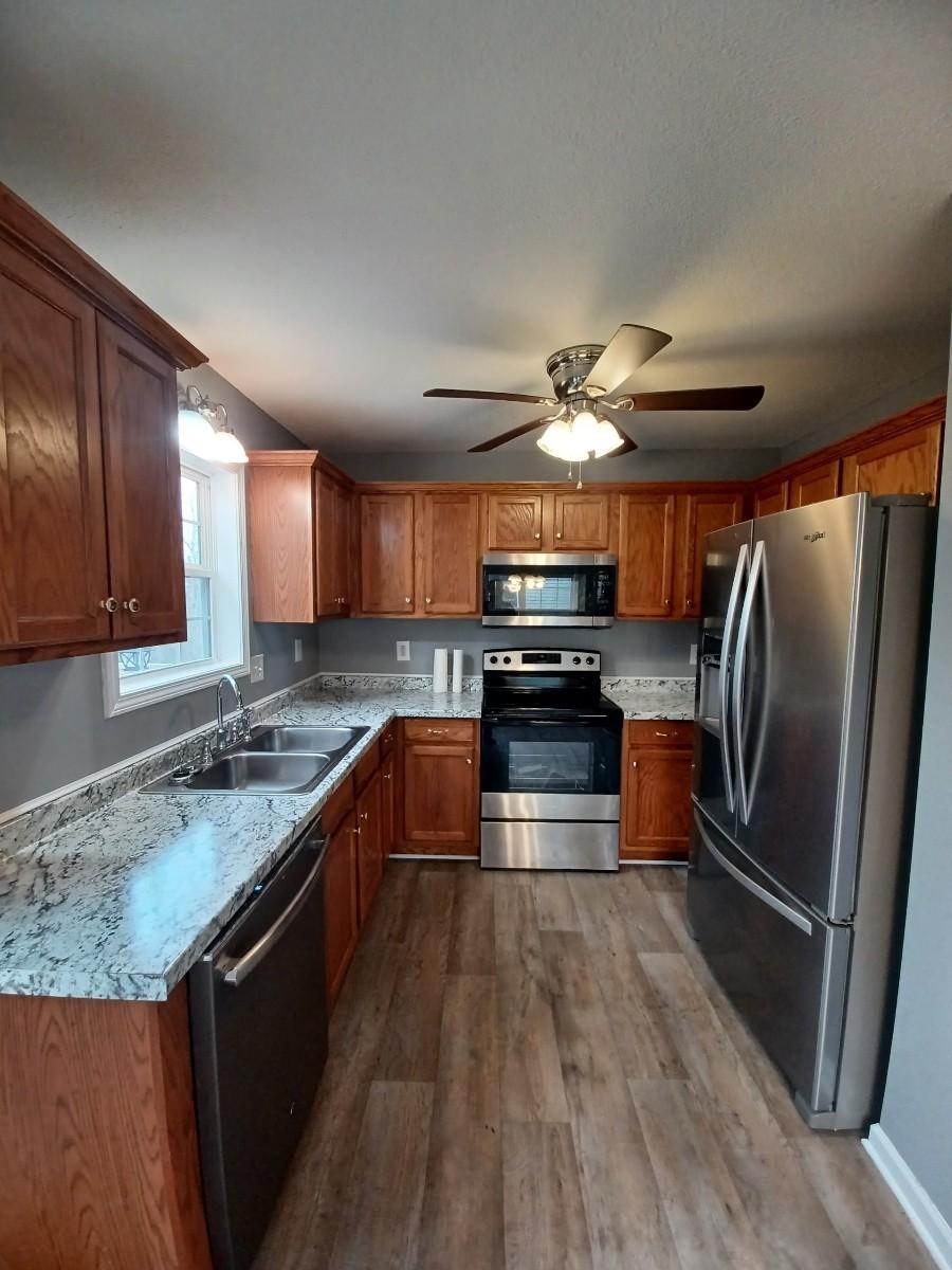 Welcome to the spacious 3 Bedroom 2 Bath Home with Bonus Room in the Basement! Close to Shopping, Dining and Post. Home features Wood Floors and Fireplace in the Living Room. Kitchen has plenty of counter space and cabinets, and a pantry. Newer Stainless Steel Appliances, and Nice Sized Dining Area. Primary Bedroom has Trey Ceiling with Fan, Full Bathroom with Double Vanity and Walk in Closet. Nice Size Guest Bedrooms. Bonus Room has closet, Deck overlooks wooded area with no backyard neighbors! Apply at Rentcafe.
