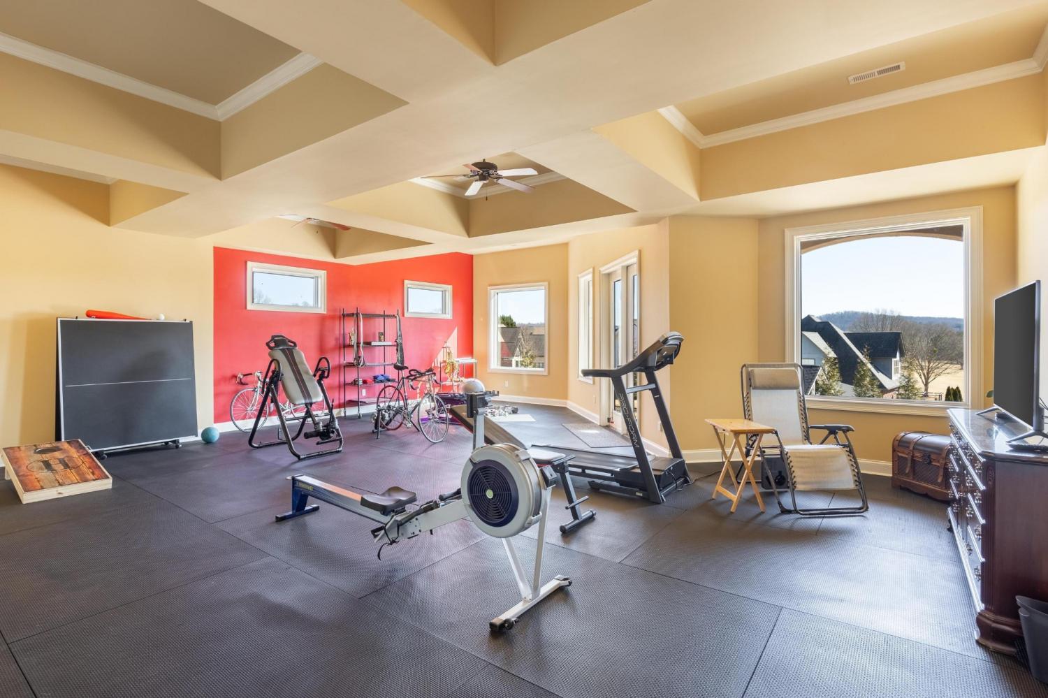 Live the Luxury Golf Course Lifestyle Nestled in the heart of the prestigious Council Fire Golf Community, this Mediterranean-inspired masterpiece blends timeless elegance with modern luxury—just 25 minutes from downtown Chattanooga. With over 8,000 square feet, 5 bedrooms, 5.5 bathrooms, and impeccable craftsmanship throughout, this estate is designed to impress. From the moment you enter, you're welcomed by soaring 12-foot ceilings, 8-foot solid doors, designer lighting, and a stunning combination of bamboo and custom tile flooring. Expansive windows flood the home with natural light and frame sweeping views of the golf course and distant mountains. The gourmet kitchen is truly a chef's dream, featuring top-of-the-line Miele and Viking appliances, double convection ovens, warming drawers, multiple wine chillers, and even a pasta faucet—all perfect for hosting elegant dinners or casual get-togethers. The main level flows effortlessly into multiple living and dining areas, offering both space and sophistication for everyday living or entertaining. The owner's suite is a luxurious private retreat on the main level, complete with dual walk-in closets, a spa-style bathroom with dual water closets (one with a bidet), a deep infinity soaking tub, a double shower, and private access to a serene outdoor terrace—ideal for a hot tub, massage area, or private relaxation space. Upstairs, you'll find two additional bedrooms with a shared Jack-and-Jill bath, a cozy sitting area, and a private deck with elevated views. There's also a massive walkout attic offering great storage or potential expansion space. The fully finished terrace level is built for entertainment and comfort, showcasing a private theater room with custom blue-light hand-painted ceiling, a spacious entertainment den with wet bar and wine chillers, a home gym, a second office, a fifth bedroom with en-suite bath, and an additional laundry room.