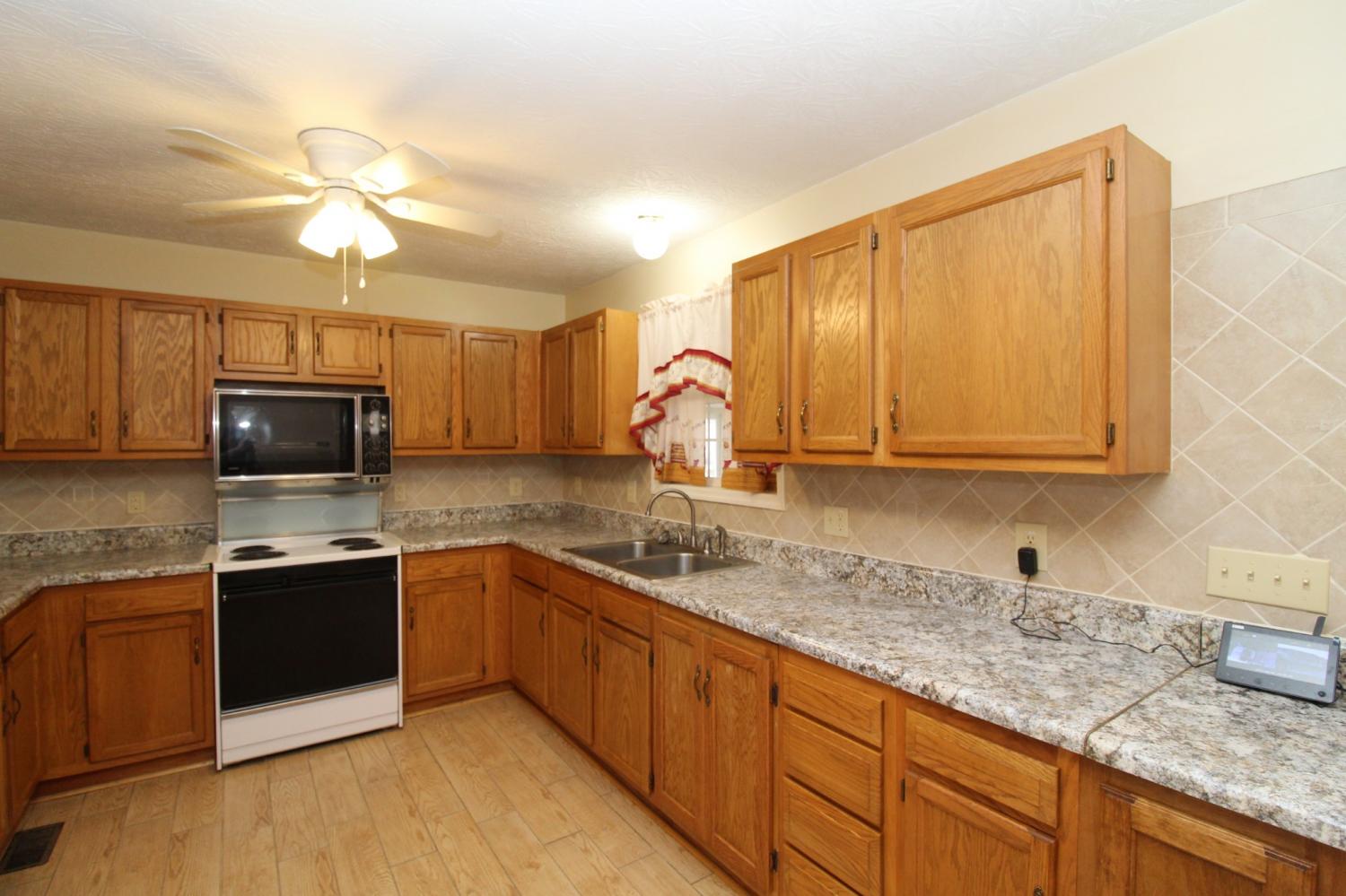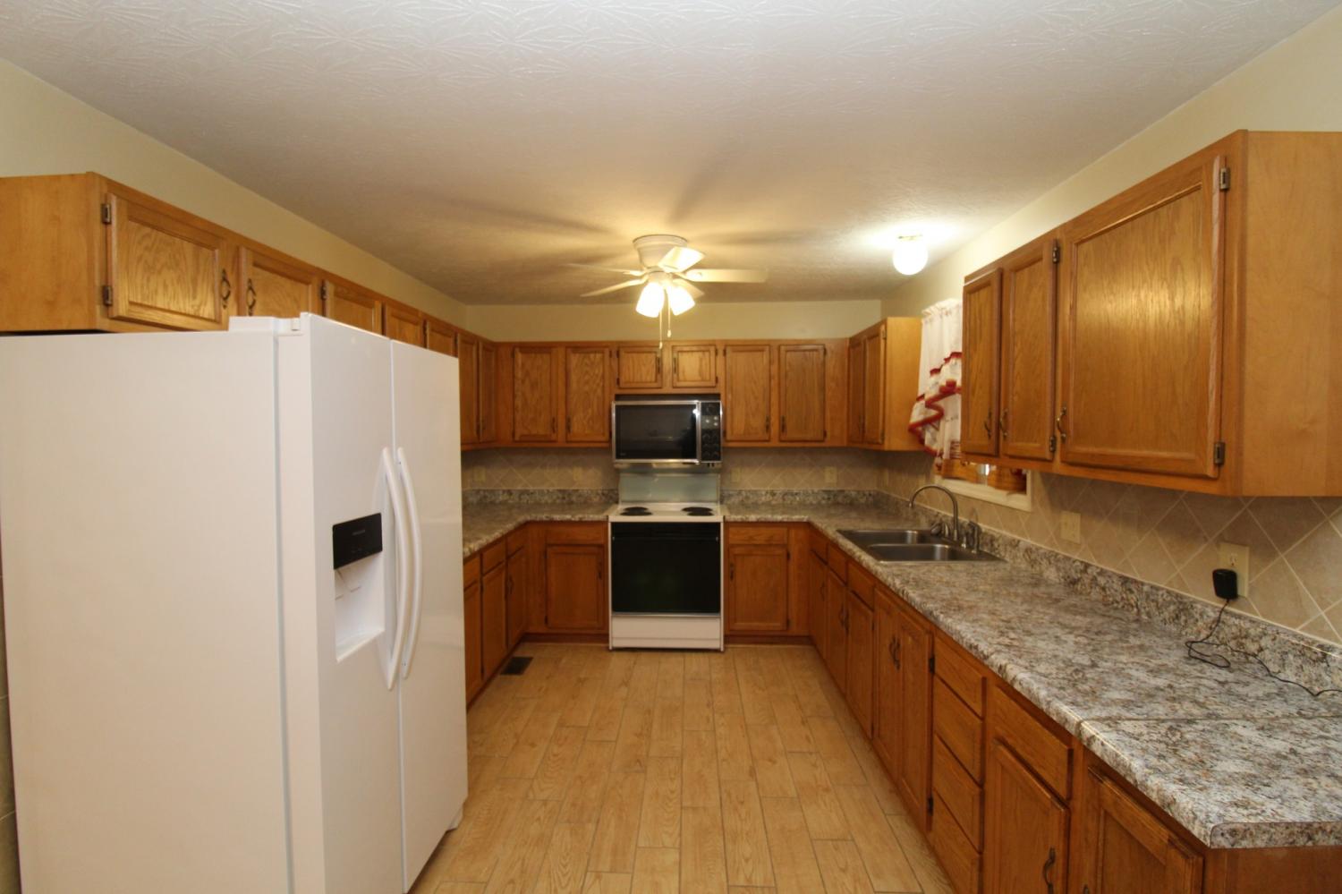 CHECK OUT THIS BEAUTIFUL VINYL SIDED HOME W/3-BAY DETACHED GARAGE IN THE OAK LEAF SUBDIVISION! HOME FEATURES APPROX. 1,668 SQ. FT., SPACIOUS LIVING ROOM W/VAULTED CEILING AND HARDWOOD FLOORS, KITCHEN/DINING COMBO W/AN ABUNDANCE OF CABINETS AND COUNTER -TOP SPACE (STOVE, DOUBLE OVEN AND REFRIGERATOR INCLUDED), PRIMARY BDR. W/DOUBLE TREY CEILING, FULL BATH AND WALK-IN CLOSET, DEN/REC. ROOM AND LAUNDRY ROOM! LIKE TO MECHANIC OR WORK IN THE SHOP? CHECK OUT THIS NICE 30X40 3-BAY DETACHED GARAGE W/ELECTRIC AND 14X40 LEAN-TO! ALSO INCLUDED IS A NICE 12X20 STORAGE BUILDING W/ELECTRIC. ALL OF THIS JUST MINUTES FROM TOWN!!