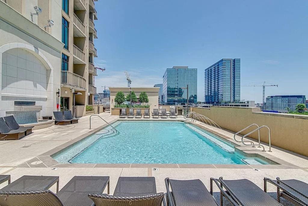 Welcome to Unit 1210 at Rhythm at Music Row, an upscale 1-bedroom, 1-bathroom condo offering contemporary design, breathtaking city views, and unbeatable convenience. Floor-to-ceiling windows flood the space with natural light, highlighting the open floor plan and sleek finishes.The gourmet kitchen features granite countertops, stainless steel appliances, and a stylish backsplash, perfect for cooking or entertaining. The spacious living area seamlessly flows onto a private balcony, where you can enjoy panoramic views of Music Row and the Nashville skyline.The primary suite boasts a generous layout with ample closet space, while the modern bathroom includes a spa-like shower and premium fixtures.Residents of Rhythm enjoy access to top-tier amenities, including a rooftop pool, fitness center, secured access, and a gated parking garage. Situated in one of Nashville’s most desirable locations, you're just steps away from Midtown, the Gulch, and Downtown’s vibrant dining, entertainment, and music scene.Experience luxury, comfort, and prime city living—don’t miss this opportunity to own a piece of Nashville’s skyline! Ask about first month free!