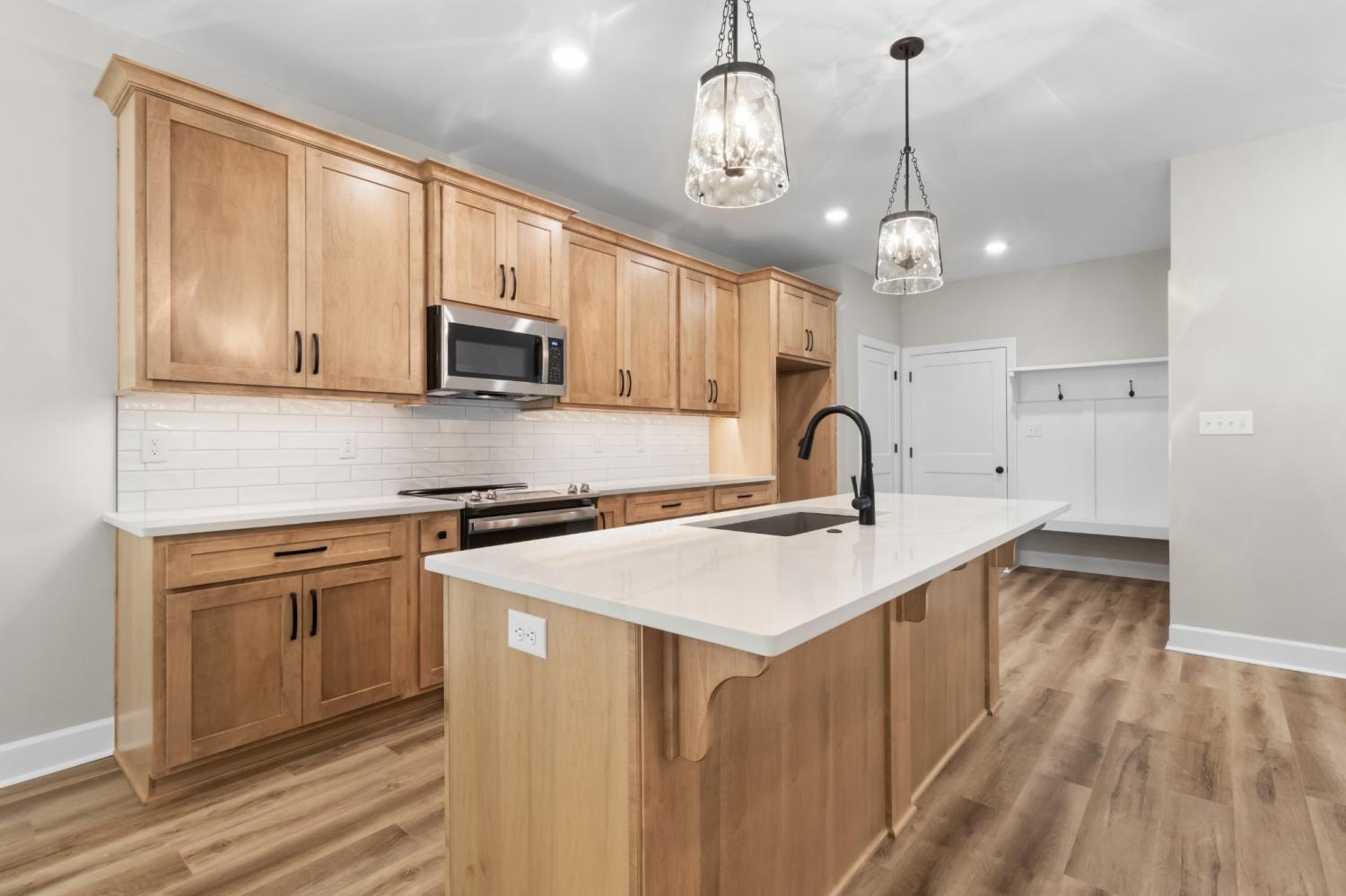 Nestled in Sango Commons, this Level Lot Ranch-Style Home with a Bonus offers convenience & accessibility with no steps to the front door. Step inside to discover an inviting open layout, seamlessly connecting the living room & kitchen making perfect for casual dining or hosting guests. Style & functionality in Stainless Appliances, Quartz Countertops, Soft-Close Cabinets & a 12' Bar Island. The Primary Suite offers a spa-like ensuite bathroom featuring a Freestanding Tub, Separate Tiled Shower & Double Vanity while a Spacious Walk-in Closet offers ample storage. Outside enjoyment of serene Outdoor Living Spaces, including a Covered Patio & an Additional Patio Area, perfect for al fresco dining or simply unwinding in the fresh air. Foam exterior walls. Privacy with No Backyard Neighbors. Beyond the confines of the home, the Sango Commons Community offers an array of amenities, including sidewalks for leisurely strolls, a playground, and a basketball court area for active recreation.