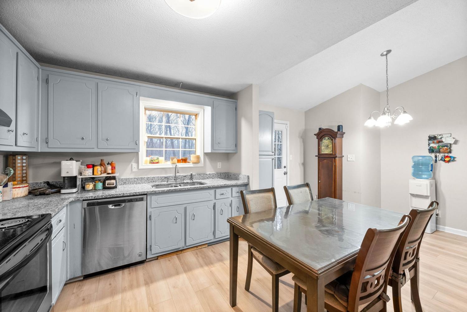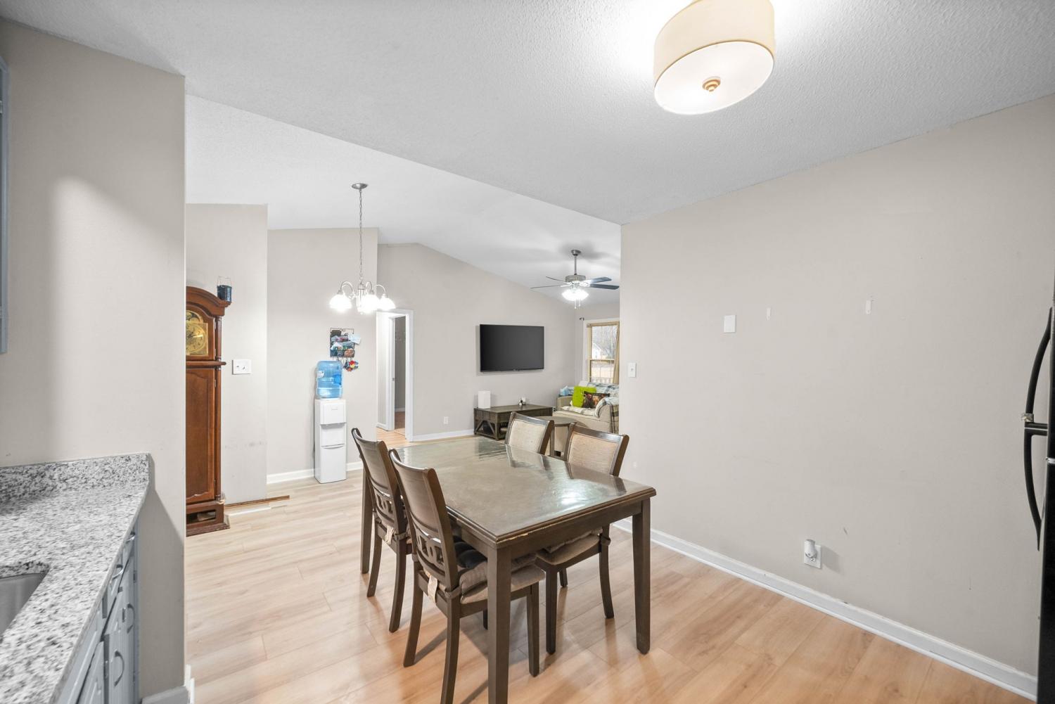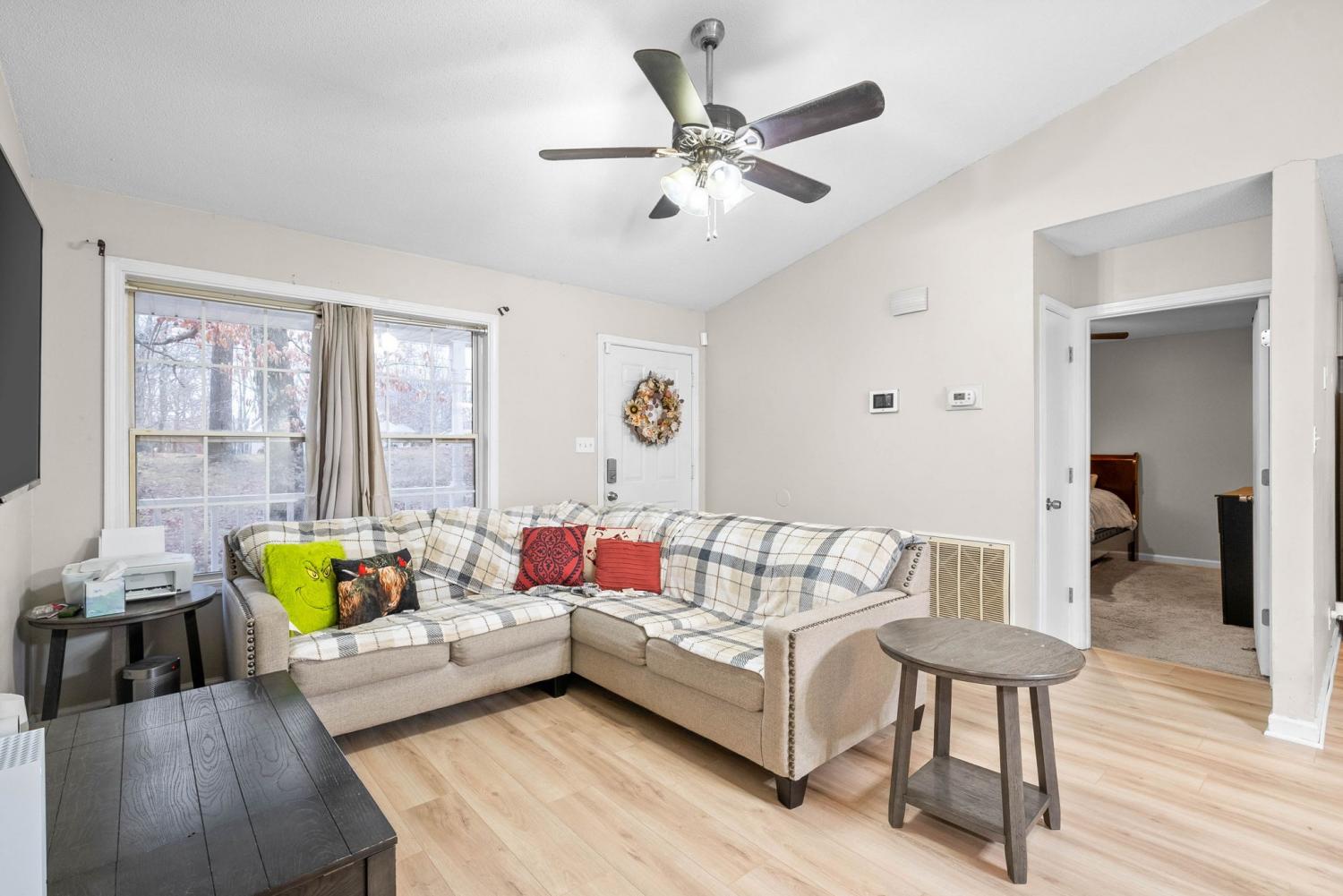 Escape to the peaceful countryside with this beautifully maintained ranch home, situated just outside the city limits. This spacious property offers over an acre of land with NO backyard neighbors, providing plenty of room to enjoy privacy and outdoor activities. Inside, you'll find 3 bedrooms and 2 full bathrooms. The home features a finished basement and built-in storm shelter offering added peace of mind during severe weather. Recent upgrades include a brand new roof and flooring in the main living areas and basement.