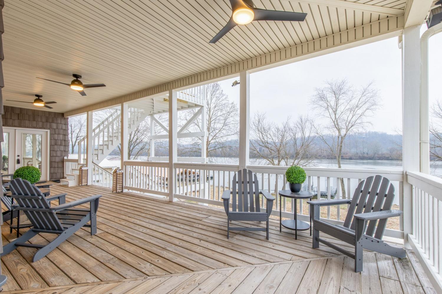 Escape to this serene, furnished, ready to move in waterfront retreat just a 30-minute drive from Nashville. Property sale includes home, detached garage/carport/covered patio, outdoor kitchen, 2024 boat dock and lift. This property offers a sense of seclusion with endless outdoor activities at your doorstep and has recently been used for weekend family getaways and song-writer retreats. Nestled alongside the picturesque Cheatham Lake, you can easily embark on a scenic journey up the Harpeth River offering breathtaking cliff-side views, cruise a short 15 minutes by boat to the Cheatham Lake Recreation Area (complete with a beach and campgrounds) or for a more extended adventure, enjoy downtown Nashville by water at just over 1 hour away by boat. To further enjoy nature by land, stroll or bike the The Cumberland River Bicentennial Trail, featuring historic train bridge crossings. Renovated and fully-furnished in 2023, this property also affords turn-key short-term rental opportunities, sleeping up to 14 comfortably and additionally includes a large detached garage, outdoor kitchen space, boat dock and lift purchased in 2024. Ground floor features a 2 car garage in which there is a pool table and ping pong, a game room with poker table and seating/tv area, and powder room. Main floor has 3 bedrooms, 2 full baths, a kitchen and living room. Upstairs is furnished as a kids' play room with 4 build in bunk beds, a king bed, and dual vanity en suite. Contact the listing agent for additional details including potential income and rental options as well as to inquire about a 28ft pontoon that can also be purchased. Fast and affordable fiber internet provided through CEMC.