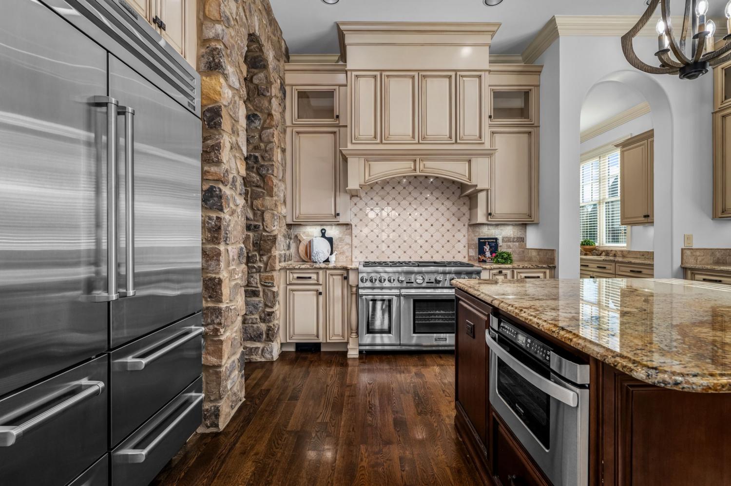 The Grove is the epitome of Luxury Living in this amazing gated golf community. This gorgeous home is the entertainer's showplace-timeless & elegant + modern luxuries by Hidden Valley Homes. As you approach, you're greeted by stone pillars w/gas lamps & charming front courtyard, perfect for relaxing or entertaining guests, complete with a cozy fireplace that creates a warm, inviting ambiance. That's all before you step inside either set of beautiful arched wood and glass double doors. You will discover the elegance of the spacious open floor plan, highlighted by a first-floor primary suite designed for ultimate privacy and convenience. This exquisite home features not only an attached oversized two-car garage with closet and storage area but also a separate detached heated & cooled garage w/380sf that could easily be a 4th bedroom w/ full bath, in-law suite, teen suite, private office, a workout room, studio or delightful potting shed. The Primary Suite with sitting area has vaulted ceilings, beautiful wood beam, plenty of natural light and the primary bath and 2 custom built-in walk-in closets are a dream! The chef's kitchen has cabinets to the ceiling, also beautiful glass display cabinets, Sub-Zero fridge, Thermador gas range w/6 burners, griddle & dessert oven. What kitchen wouldn't be complete without a butler's pantry w/sink, beverage fridge, cabinets and 2 countertops-one for coffee bar and actual bar, plus walk-in pantry AND 20' long hallway of additional cabinets for all of your entertaining dishes & decor. The office has natural light, plenty of cabinets and granite. Every corner of the villa is designed to impress. You won't believe the storage space in the 2 massive walk-out attics upstairs. Don’t miss the opportunity to experience this beautifully upgraded home firsthand! Detached Garage has 380sf and could easily be converted to a 4th bedroom with bathroom. Schedule your showing today!