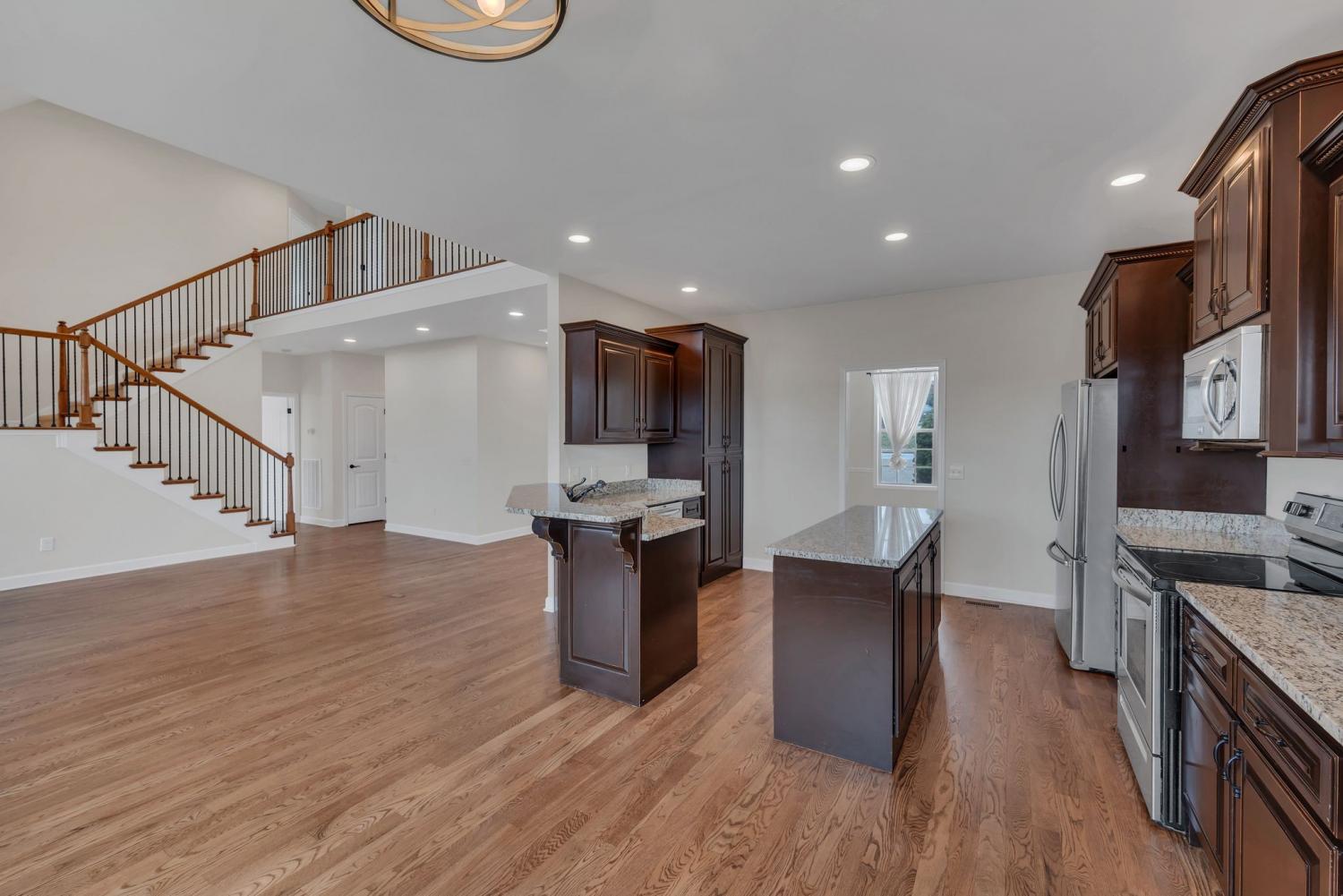 Incredible views! | Open floor plan | All new Sherwin Williams paint throughout including all walls ceilings and trim in 2025 | New hardwood flooring in the living room and all hardwoods refinished in 2025 | Brand new carpet 2025 not used | Some new lighting in breakfast area and dining room and new LED can lights throughout | Unfinished basement studded walls and plumbed bath with separate entry | Perfect to be finished for in-law or guest / teen suite | Covered deck and covered patio | Huge recreation / bonus room over garage | Primary bedroom on main | Walk in laundry | Kitchen has island and eat in breakfast area | Separate formal dining room | Layout is perfect for the family with young children | Easy access to mom and dad from the catwalk views and large recreation room is perfect for a game room or media room | Unfinished Basement has 1,586 square feet and has walls studs and plumbed bathroom with ample storage and can be finished for whatever your family needs | Third garage space in rear for storage | Community has two pools and tennis courts and a pickleball court | Convenient to Vietnam Vets (first exit off to Hendersonville) so easy access to interstate | Five minutes to Pope John Paul II High School | Seven minutes to Costco and Indian Lake Village with shopping entertainment and restaurants