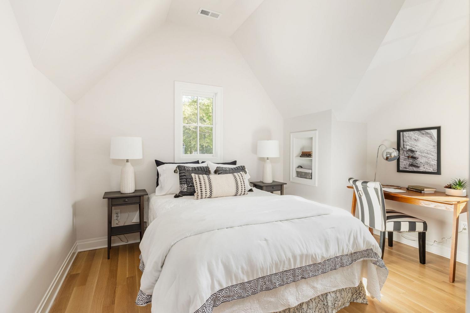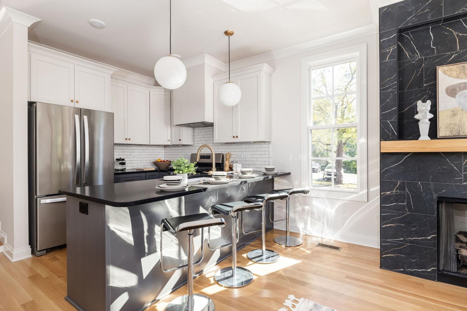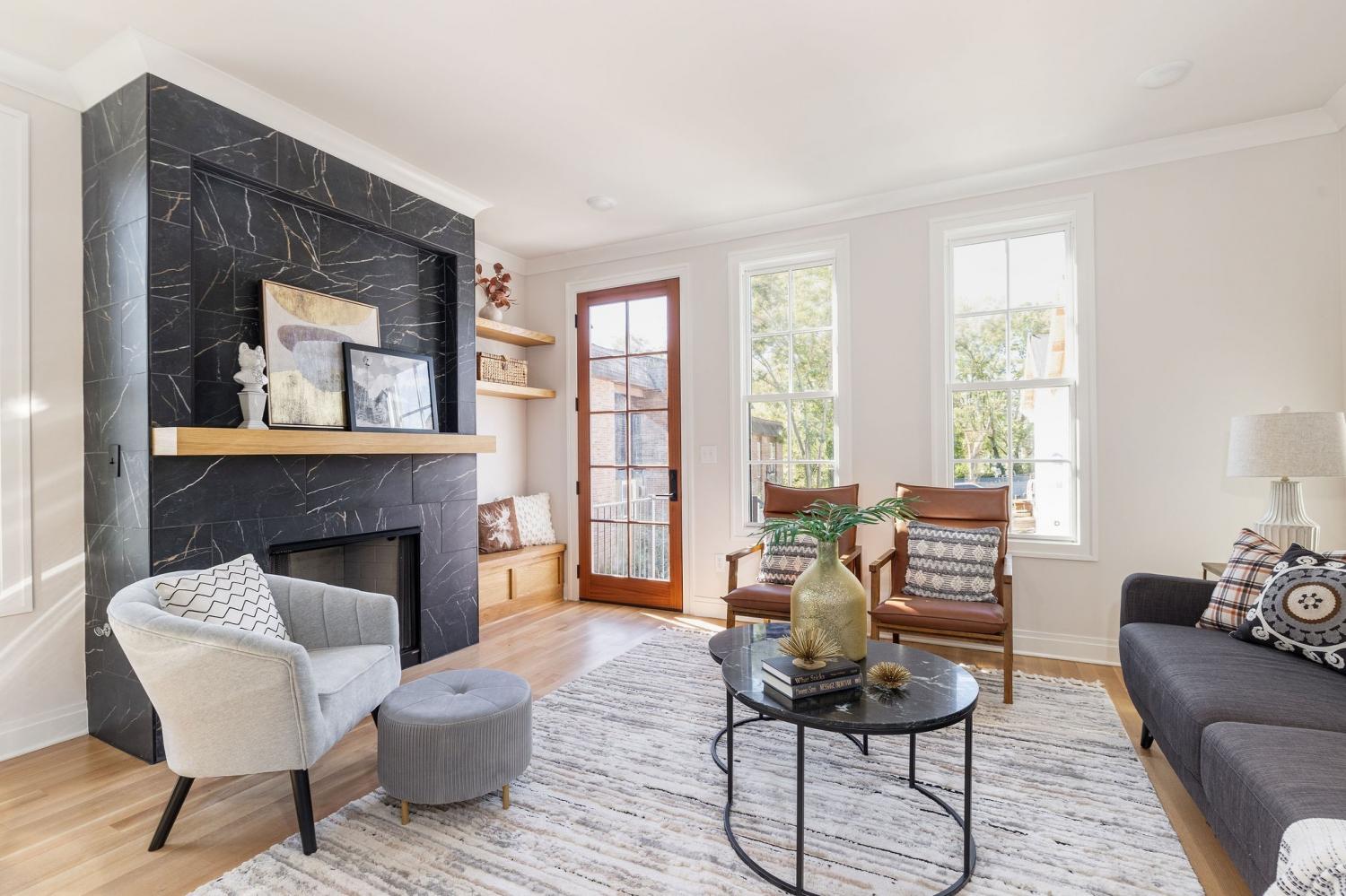 Located in Nashville's historic Eastwood neighborhood, this sleek new home with contemporary interior finishes features an open living room with a cozy fireplace and a well-appointed kitchen. Upstairs, find 2 bedrooms and a shared bath, offering stylish comfort. Other key features include spray foam insulation, an encapsulated crawlspace, mahogany doors, full appliance package with gas stove, white oak hardwood floors, gas tankless water heater, custom-designed fireplace with built-ins, custom painted cabinetry, and designer level finishes by award wining designer Marcelle Guilbeau. No expense was spared in building these well crafted homes. Located less than 3 miles from downtown Nashville and under 1 mile from Hill Center Greenwood, home to Publix and Starbucks, this new build is walkable to many of East Nashville's best restaurants, bars, and shopping. Includes 2 designated parking spaces off the alley (park there for showings). Seller is offering concessions towards buyer's closing costs and rate buy down on this beautiful East Nashville new build, with rates as low as 4.5% through our preferred lender.