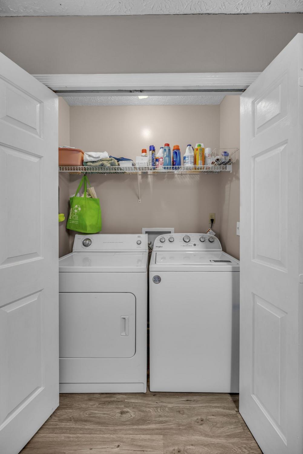 This home is a move in ready adorable one level condo! It is immaculate and has a wonderful layout with 2 bedrooms and a jack and jill style bathroom. The home has luxury vinyl plank throughout. The corner fireplace adds just the right charm to the living room. Wonderful dining area and kitchen space! There is a back deck overlooking the pool and Clubhouse area. Come make this home your own!