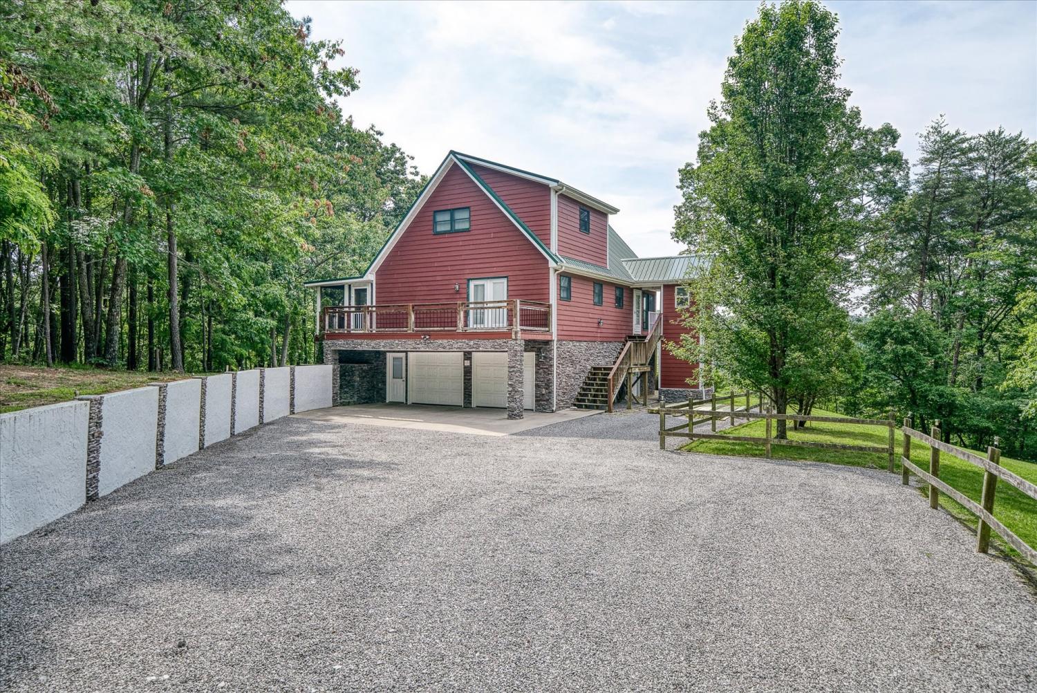 Tucked amongst the mature pines, you'll find your dream retreat! Paved roads of Hawks Bluff lead you to a private, grand entrance, welcoming you to this stunning multi-level home overlooking unobstructed bluff views. Utilize stairs to the main level or elevator, providing convenience for everyone. Main level features vaulted ceilings, floor to ceiling statement windows, access to the screened in sunroom & open decks, an entertaining kitchen equipped w/ new stove, like-new dishwasher, s/s apps, granite countertops, & soft close cabinetry. Main level primary offers a walk in closet & full ensuite - double vanities, garden tub, & tiled shower! Upper level landing & ensuite offers an added level of privacy. Lower level is a true flex space: a 3rd ensuite, gameroom, office. FURNISHINGS NEGOTIABLE! Enjoy your exterior living year-round w/ the multi-level porches & path leading to your patio w/ firepit & open seating. Plenty of options for storage & parking w/ a 2-car attached garage w/ heat/air, 1-car detached carport, & 30X45 detached garage/workshop. Workshop features concrete floors, sink, wood burning stove, loft, insulated roof, & negotiable lift! Add'l features include 500 gall inground owned propane tank, new main-level HVAC, newer water heater, reinsulated pump house w/ new well. 13 month home warranty for peace of mind.