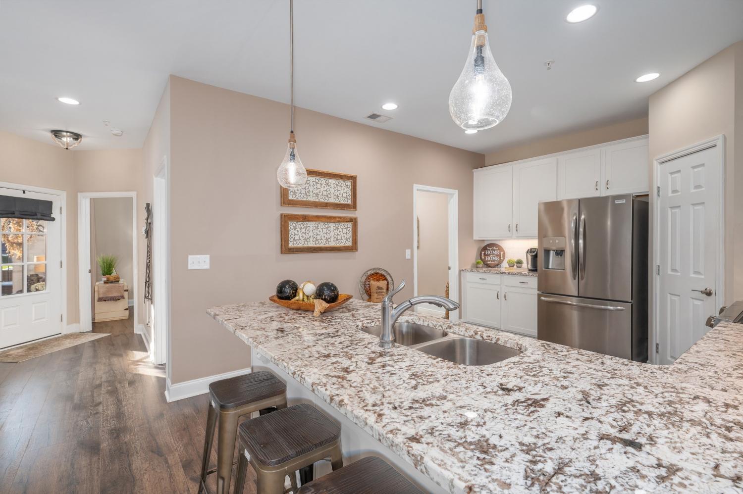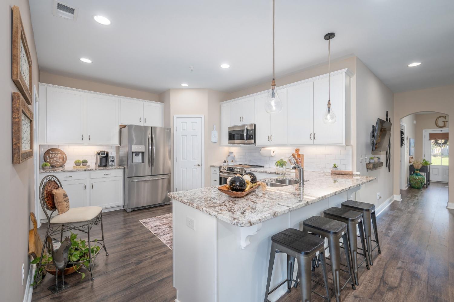 With over $45,000 in UPGRADES, enjoy maintenance-free living in this beautiful villa! Upgrades include gorgeous improved primary suite bath, cabinets, granite & flooring throughout, plus all lighting and ceiling fans! The main level offers beautiful floors, 2 bedrooms, including primary suite with a walk-in shower. Upstairs, find a versatile bonus room or additional bedroom with a full bath. Relax in your private courtyard, perfect for quiet moments or entertaining. Conveniently located near shopping, dining, the interstate, the lake, airport, and downtown Nashville! Groves Reserve features a clubhouse, garden, pet parks, putting green, and fire pit—a vibrant, yet peaceful community with regular events and activities for an active, thriving lifestyle in this 55+ community!