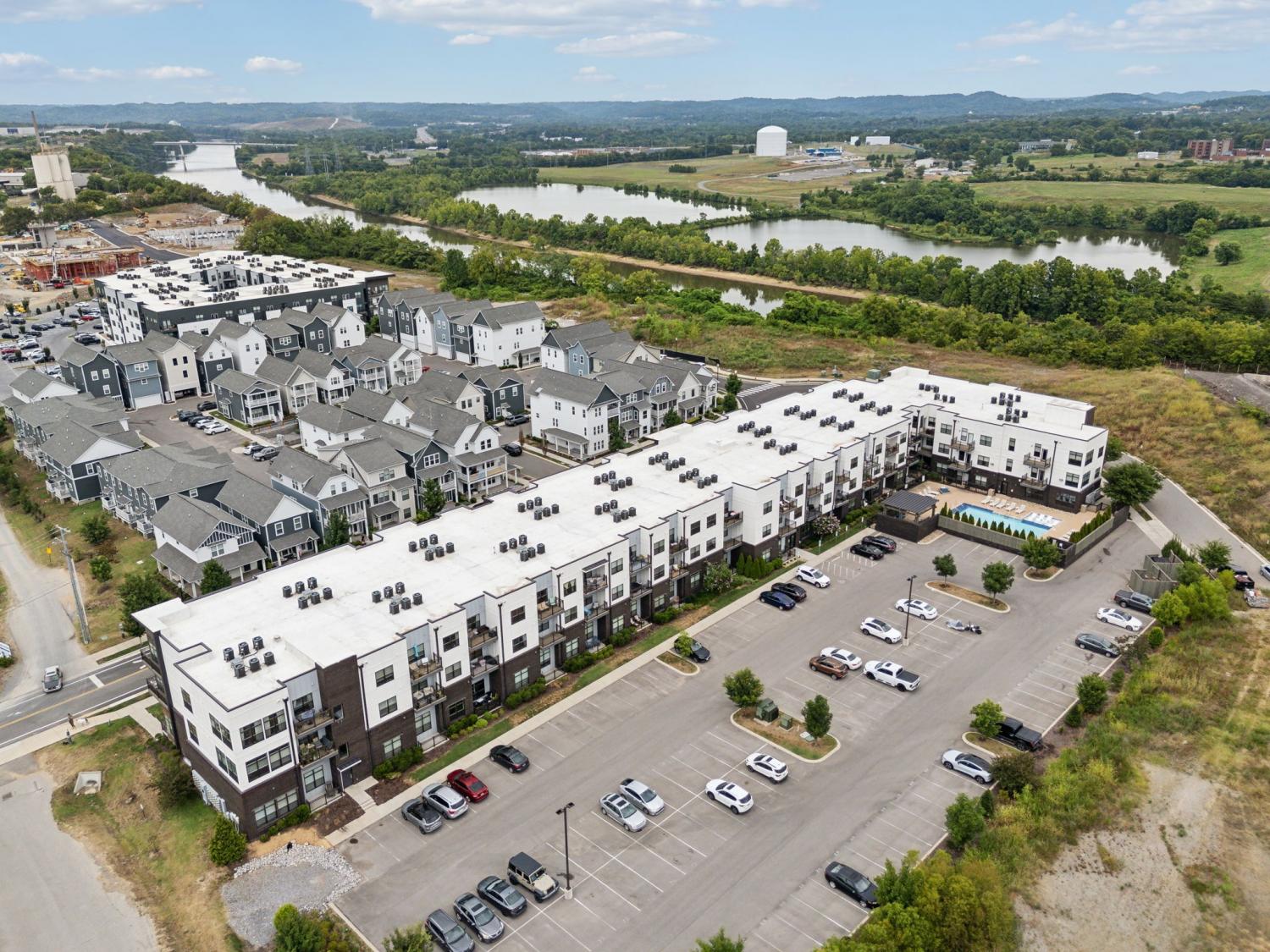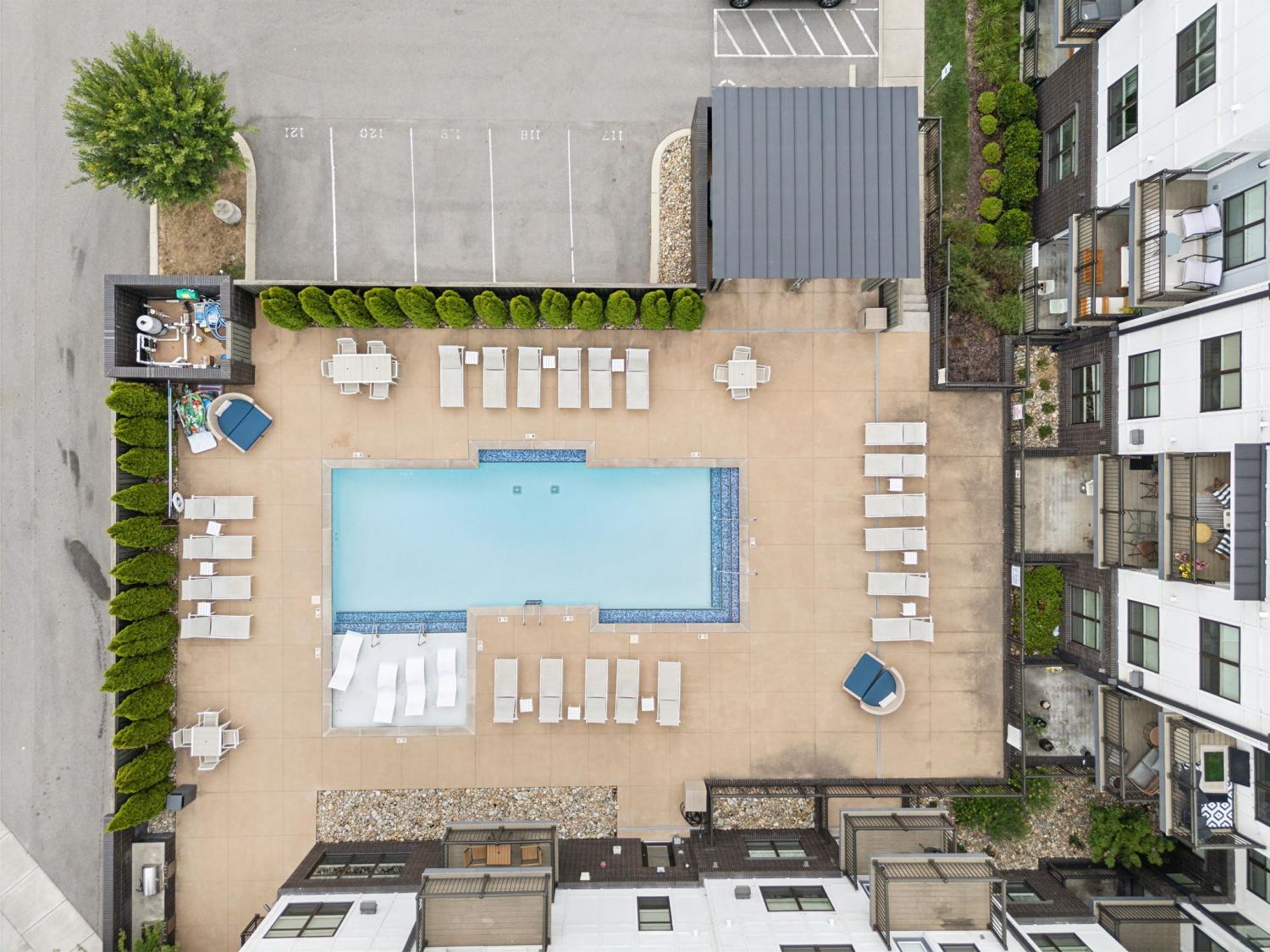 Imagine maintenance free living with all the amenities you need in an easily walkable neighborhood, highlighting multiple restaurants, breweries, coffee shops and more! This can all be yours in a perfectly maintained, better than new, top floor flat located in the hip Nations building of Silo House! This west facing, one bedroom condo provides sunsets from most every room and the cozy private balcony, with an open floor plan with plenty of room to entertain while cooking in the spacious kitchen. Hardwood floors gleam throughout, light streams in the vast windows, bright neutrals make this unit appealing to most everyone and to top it off, the amenities are top notch with a saltwater pool, fitness center, outdoor lounge area with tvs, and an assigned parking space. Plus, short term rentals are not permitted in this building so you can know your neighbors!