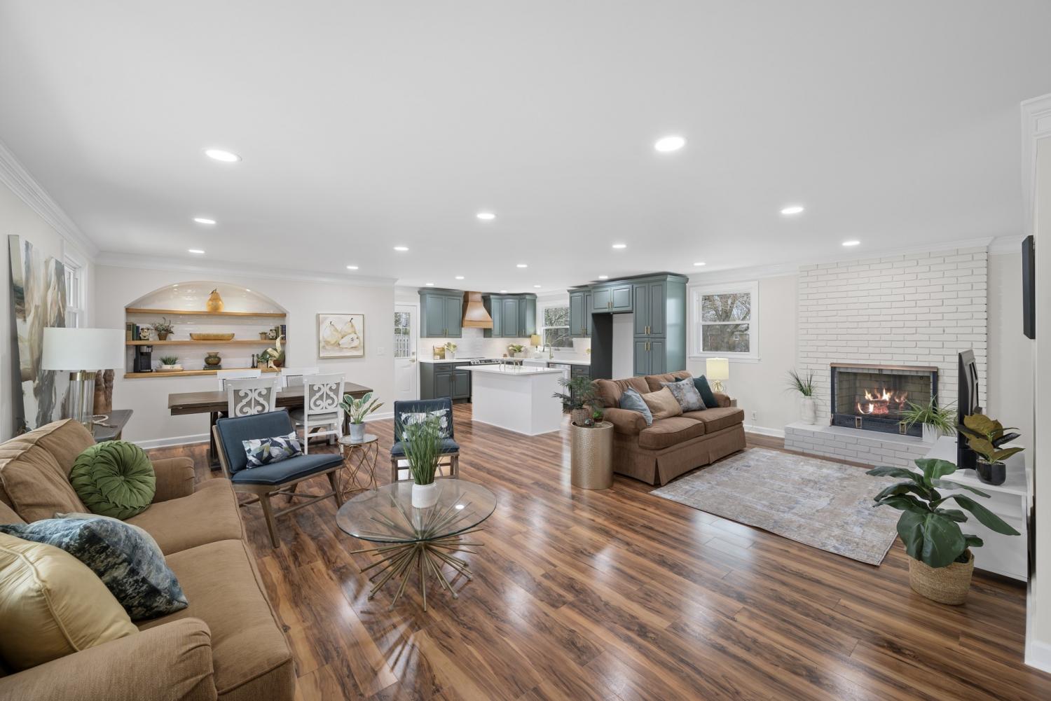Financing fell through so here is your chance at this one of a kind home! If you don’t LOVE the green outside color, seller is willing to paint for an acceptable offer. Looking for your dream home in a golf course community AND a possible income producing property? Found it! This stunning home offers 4 bedrooms and 3 and half bathrooms on the main level with a large primary bedroom and spectacular ensuite bathroom and huge closet. You will find another ensuite in the adjacent bedroom and a half bath and the hallway. The walk in basement is completely finished into a second home or in laws residence or additional entertaining area with 4th bedroom for the home owners. There is a completely finished "home number 2" downstairs with a door separating the main level and basement. Both the main level and basement BOTH have fireplaces, full kitchens, laundry rooms, dining rooms, living rooms and bedrooms. This home would make an amazing owner occupied airbnb also. There is an attached 2 car garage AND a 2 car carport as well as expansive parking at the residence. This home is COMPLETELY remodeled with NEW appliances, new lighting, new plumbing, windows 3 years old, roof 3 years old, newer HVAC, new landscaping. All this on over a half acre treed lot in a golf course community. Close to Old Hickory Lake, shopping and medical. This is truly one of a kind home.