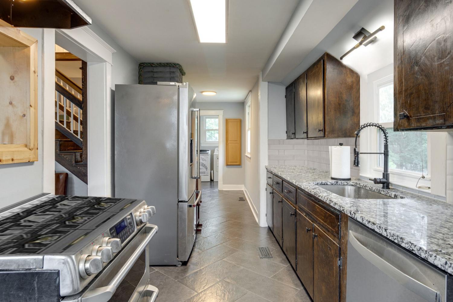 Beautifully renovated bungalow in the heart of Downtown Dickson just steps from Main Street’s shops, restaurants, boutiques, and more. This stunning home features soaring ceilings and modern updates throughout, creating a perfect blend of charm and contemporary style. The completely updated kitchen includes a prep sink and beverage bar, while the spacious primary suite offers a versatile flex space ideal for a nursery, office, or reading nook filled with natural light. The cozy living room features an electric fireplace, and the unfinished basement provides extra storage or future expansion potential. Outside, a pull-through driveway with alley access leads to a large 20x25 detached garage with 220V power. With a newer HVAC system and a prime location, this home is move-in ready and offers the best of downtown living!