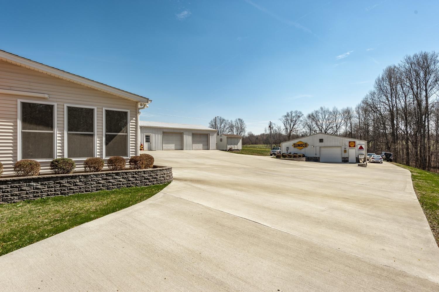 This gorgeous traditional house sits on 6.5 acres of land, boasting a wrap-around porch that provides a stunning view of the surrounding scenery. The property includes 1 acre zoned C-2, ideal for those who seek at home business platforms. Also included are 2.5 acres that can be used to build a second residential property and sold off. The detached buildings are 30x40 and 40x100. Each have their own electrical, water, and heat. Flex room can be used as an additional bedroom. Check out the attached features sheet for more info on the house and shops. ** Water heater changed on 1/30/25 **