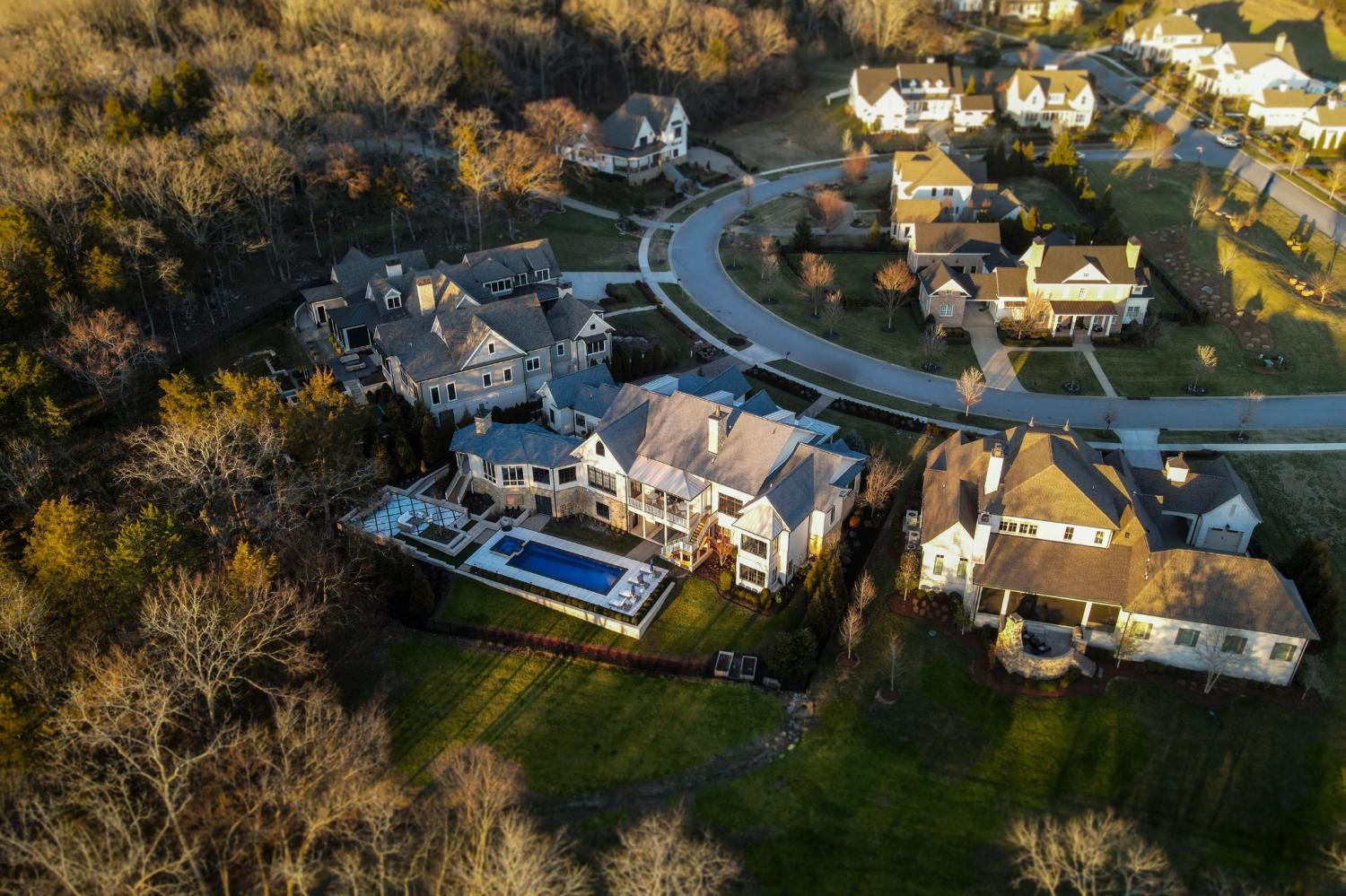 New pool, new roof, new 2700 ft addition. This dreamy 6-bedroom, 6-bath home at The Grove has been immaculately maintained and thoughtfully designed. TWO bedrooms on the main floor. Constructed by award-winning Hatcliff Construction/Design, one of only 100 contractors selected as a Southern Living Builder member. Includes a private backyard with huge vistas overlooking the Greg Norman designed golf course, several ponds, 30+ undisturbed acres with views of the beautiful Tennessee sunsets. Includes many built-ins, game room, sunroom, gym, geothermal heating, large storage areas, private outdoor spaces, child's outdoor under-stair playhouse, and large 3-car garage, electric shades. Three gas fireplaces. Pool equipment inside the house for easy maintenance. No detail was overlooked. See the link to the video the owners took from their balcony overlooking the golf course on July 4th. GREAT fireworks display from the privacy of your own home! Wonderful plan for a multi-generational home.