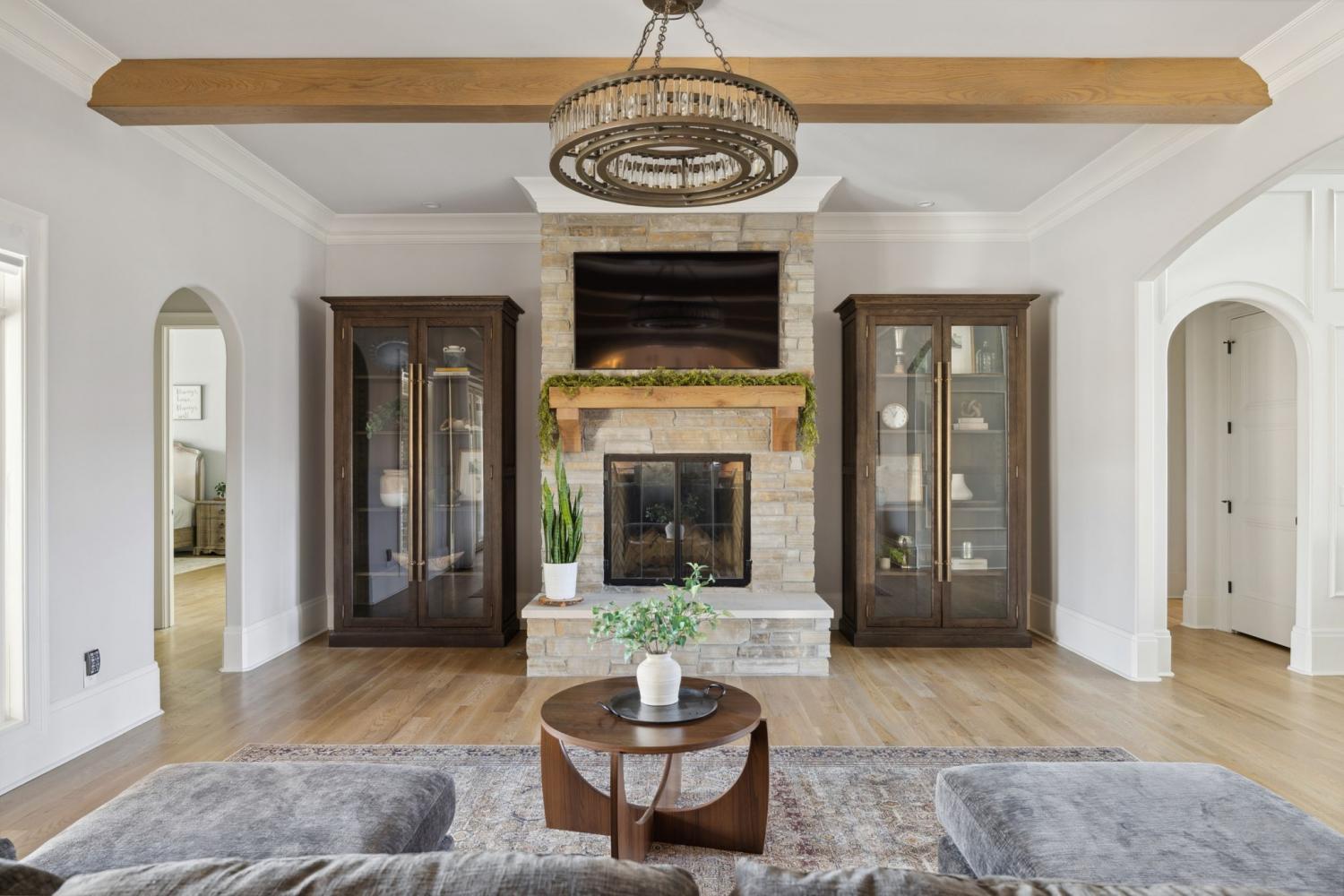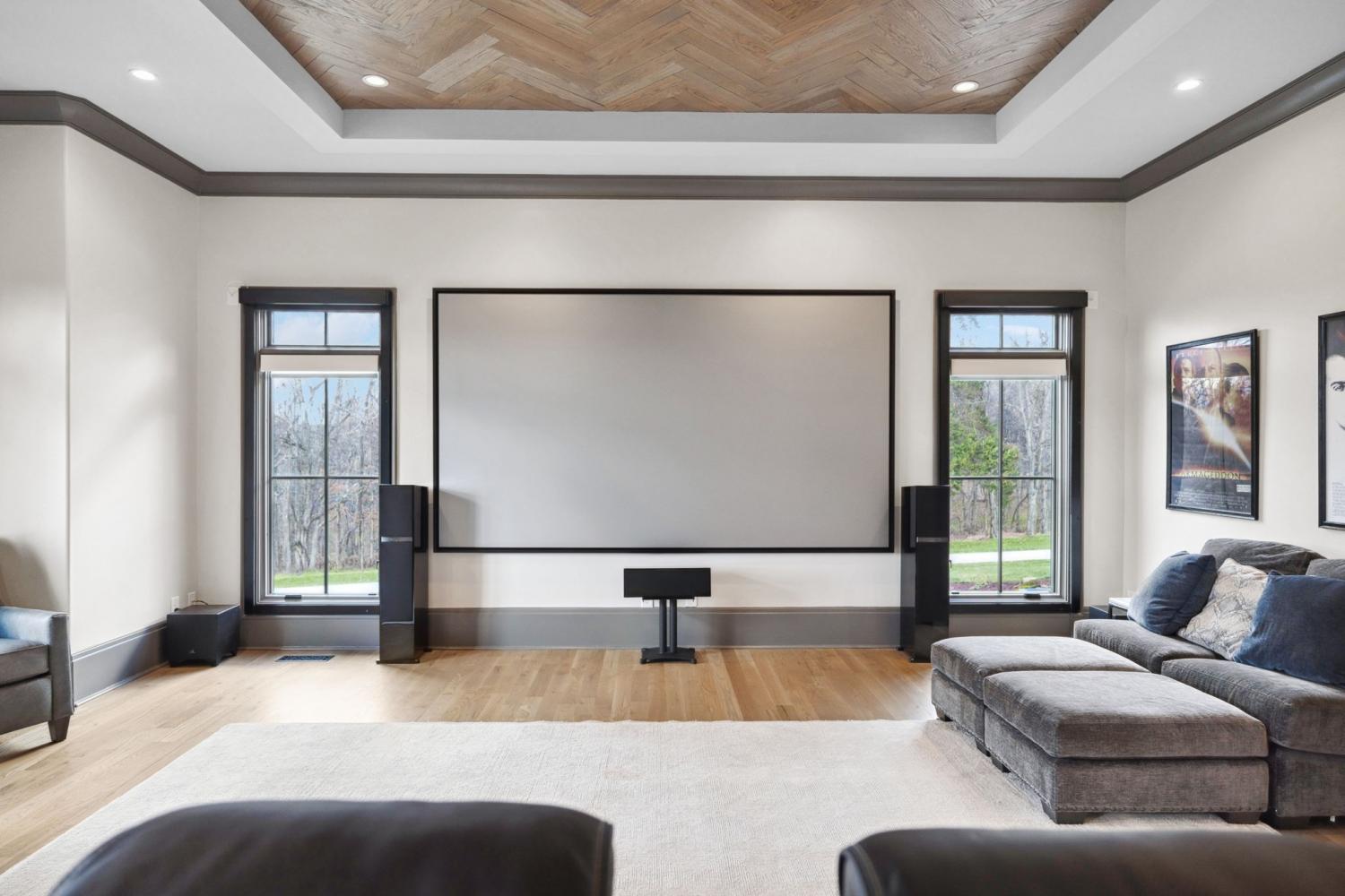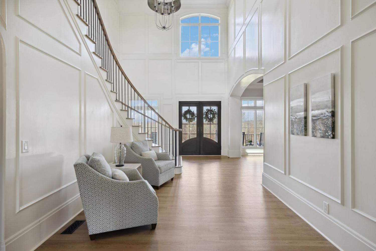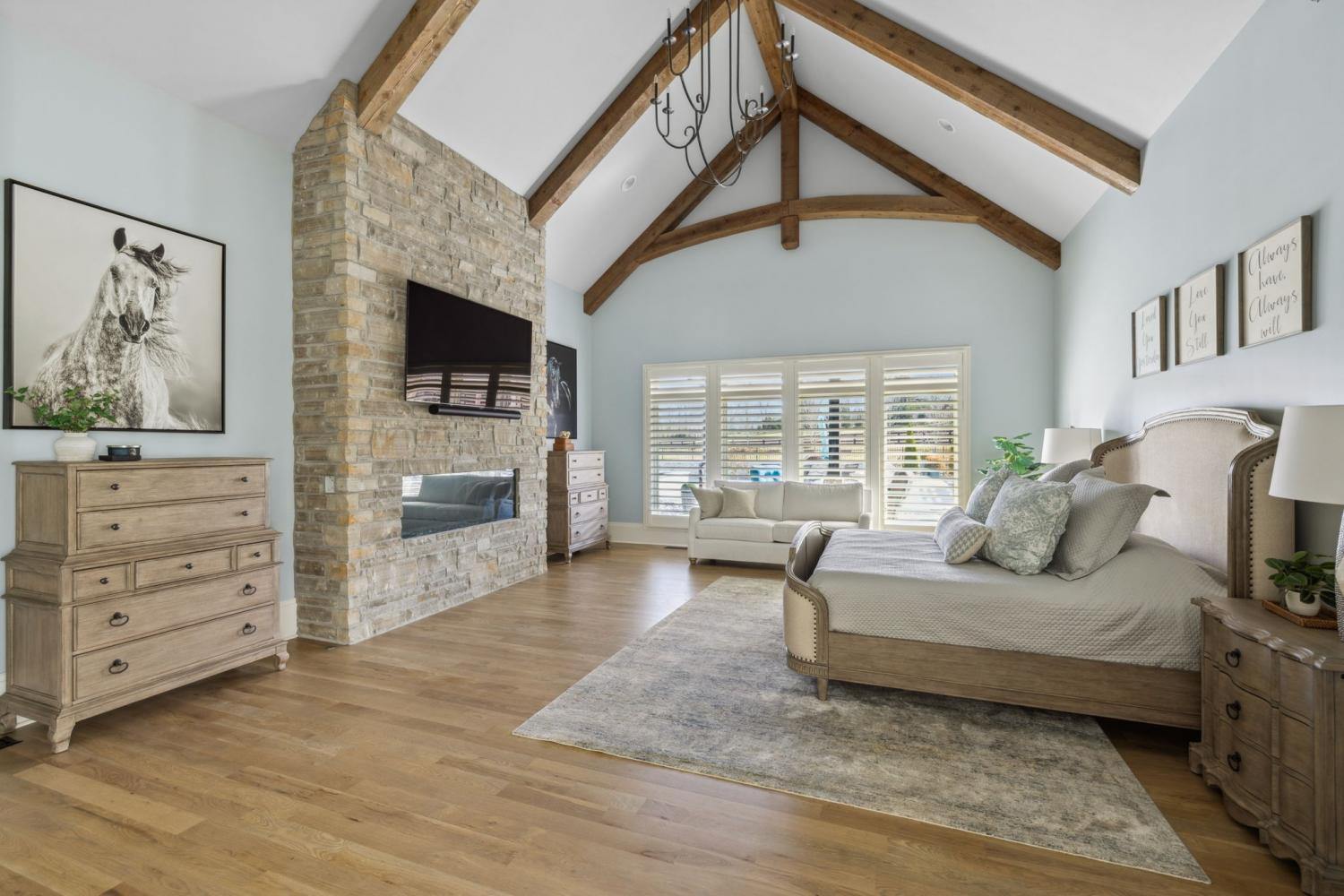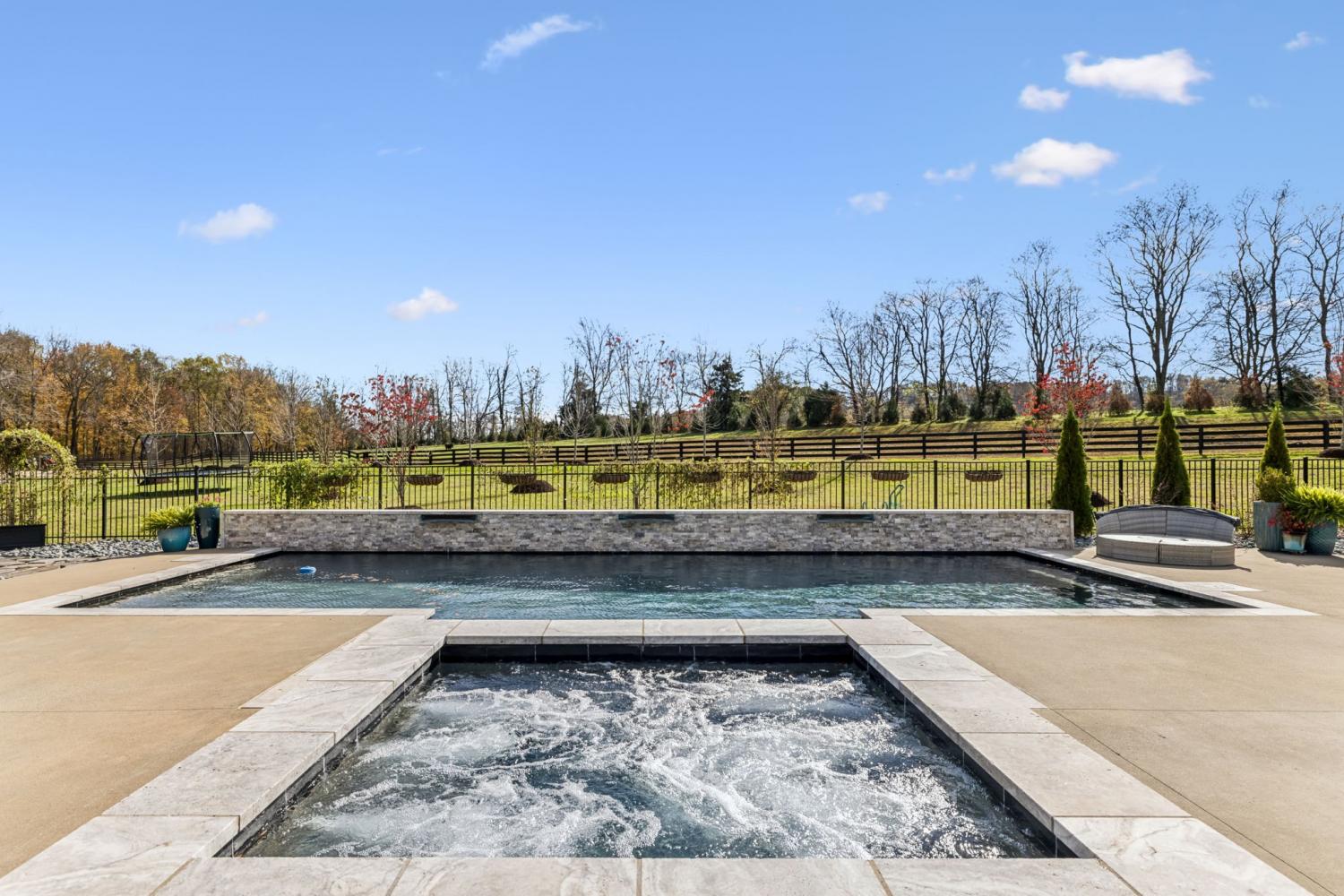 Discover unparalleled luxury and privacy in this stunning custom estate nestled in the rolling hills of Tennessee. This property is perfect for the discerning buyer seeking solitude, beauty, and equestrian use, featuring two fully fenced pastures, a barn, a 9,000 sq. ft. workshop, and lush landscaping. A gated entrance ensures ultimate privacy. Step through grand double doors into a breathtaking two-story foyer with a gracefully curved staircase and custom wainscoting. The main floor boasts 12-ft ceilings, rich hardwood floors, and an inviting family room with wood beams, a wood-burning fireplace, Bluetooth surround sound, and sliding doors to the covered back porch. The gourmet kitchen is a chef’s dream, featuring custom cabinetry, double ovens, a gas range, Thermador appliances, a wood-paneled refrigerator, an oversized island, two Bosch dishwashers, and a hidden pantry with an Elkway water dispenser and abundant storage.The luxurious owner’s suite showcases vaulted wood-beamed ceilings, a Davinci Collection fireplace, and a spa-like en-suite with a free-standing soaker tub, a grand luxury shower with a spa water system, and a private laundry-equipped custom closet. A guest suite and executive office with a hidden safe and private access to the owner’s suite complete the main floor. Entertainment abounds with a state-of-the-art media room featuring a 180-inch projector screen, surround sound, blackout shades, and a kitchenette. Upstairs offers a game room, gym, bunk room, walk-in storage, and three en-suite bedrooms. Outside, enjoy two covered back porches with a fireplace, outdoor kitchen, and automatic screens, plus a resort-style heated pool with a spa, waterfall, and access to pool bath. Additional highlights include an extra-deep 4-car garage with a High Lift Door System, a home generator, a storm shelter, and Pella windows throughout. This immaculate estate offers breathtaking views, peace, and high-end luxury. Schedule today.