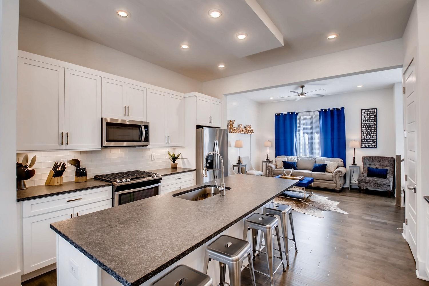 Incredible short term rental in the very popular Vibe complex! Excellent location in the hip East Nashville area and only minutes to downtown Nashville. This gorgeous designer unit comes fully furnished and has a proven track record on its consistent bookings. This wonderful townhouse has all the ugrades to include 3 full bathrooms, stamped granite, SS appliances, gas stove, open floorplan, rear entry 2-car garage. Walk to the popular East Nashville restaurants, Grimey's record store, and the trendy Living waters brewery. Property is zoned MUL-A and lower HOA fees is a bonus. Check out the 3d walk about in the link below- beautiful!
