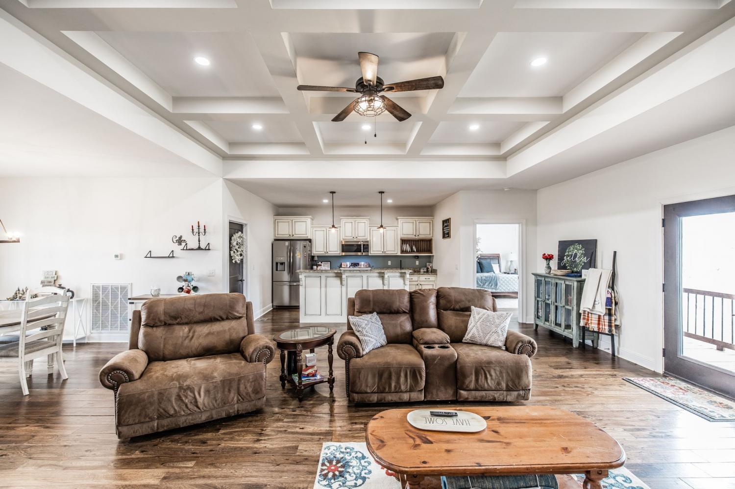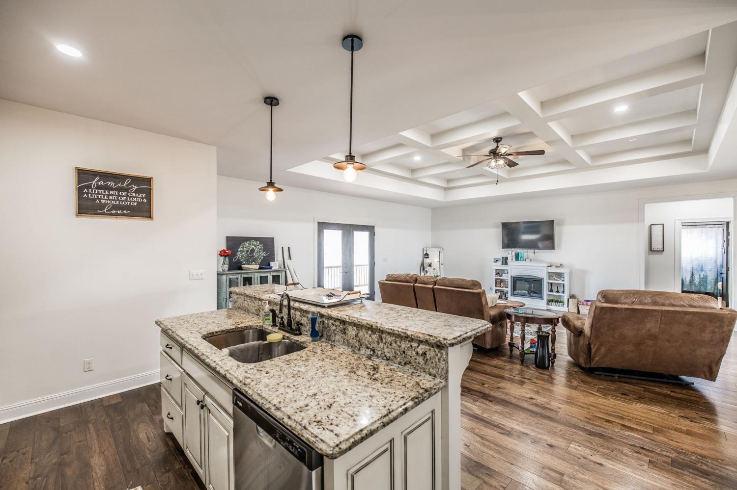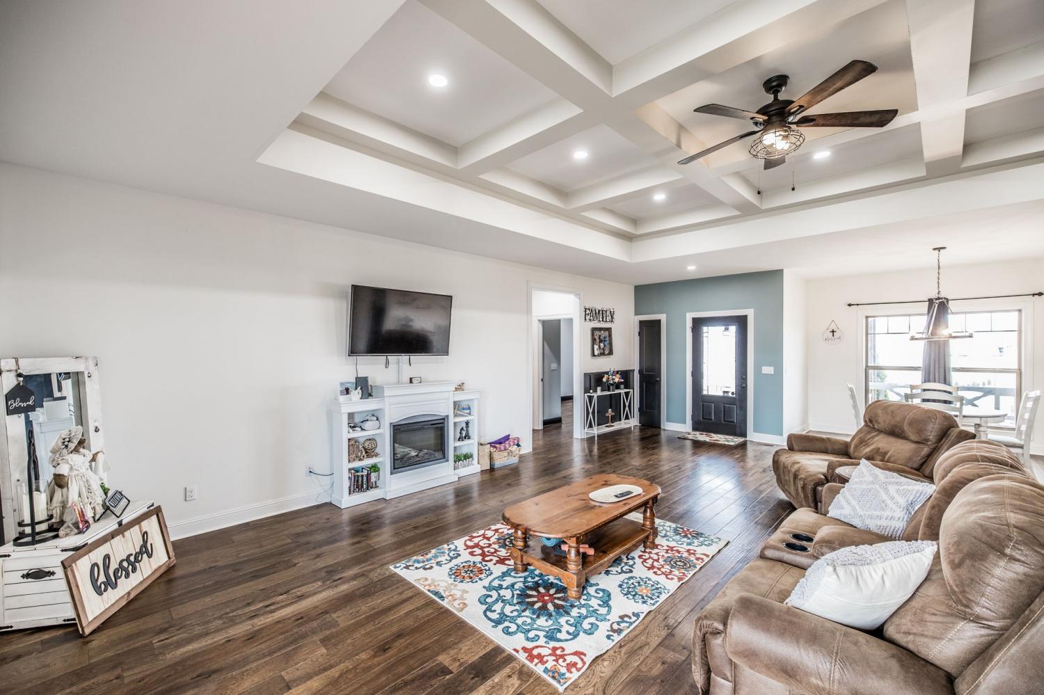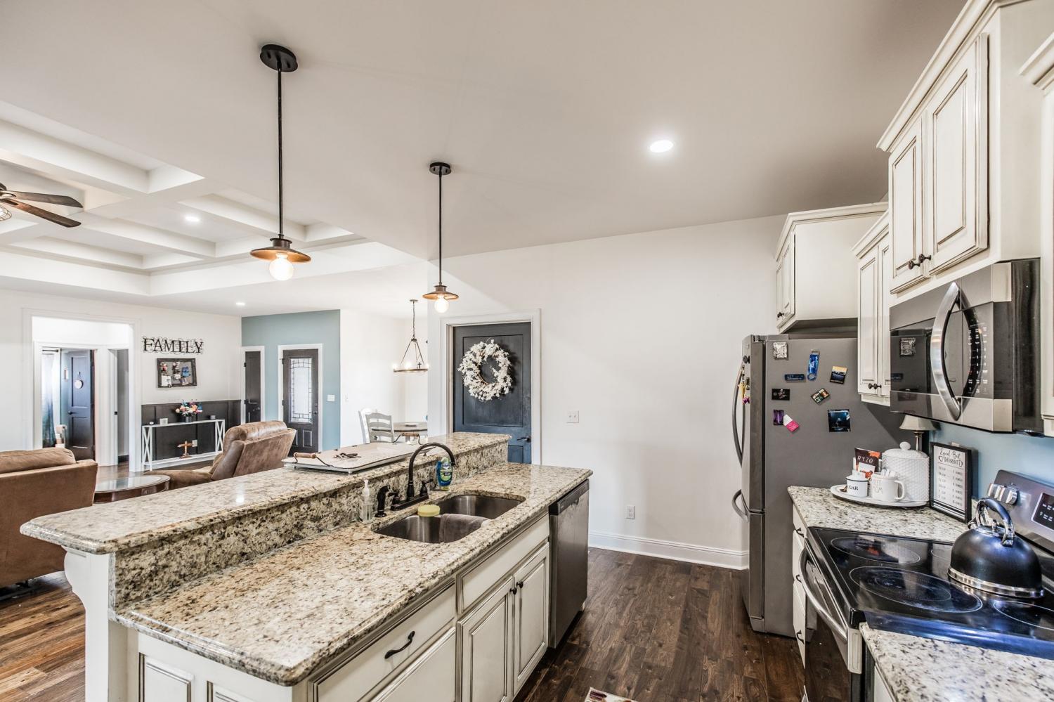 Beautiful home with tons of upgrades. Coffered ceiling in living room; trey ceilings and 9ft ceilings throughout; custom cabinets with granite countertops; walk-in tile shower in master bath; stainless steel appliances and more. This home also offers an island in the kitchen with bar top; formal dining; large utility room and a nice covered deck for morning coffee or watching the sunset. Don't miss out on this one, call today.