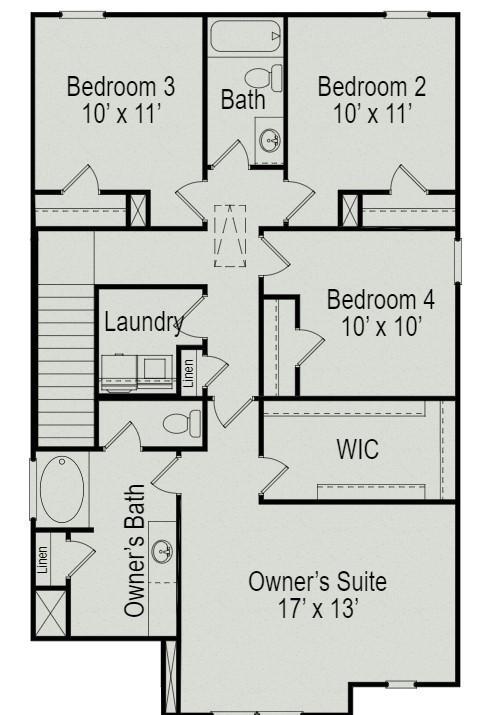 The Braselton II at Marlin Pointe by Smith Douglas Homes has a rear corner covered patio, directly accessible from the light-filled family room. A large eat-in island kitchen overlooks the family room for easy entertaining. On the second floor, a spacious loft can be optioned to a fourth bedroom and separates the private owner’s suite from two secondary bedrooms. The owner's suite includes a massive walk-in closet, and private bath, and has easy access to the second-floor laundry room. Ask about our limited time 4.99% interest rate on a home that can close before May 30th