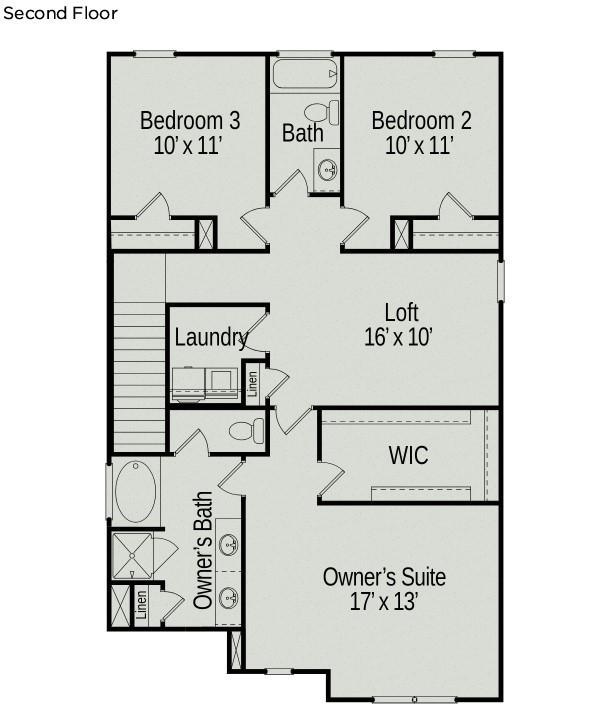 The Braselton II at Stratford Station by Smith Douglas Homes has a rear corner covered patio, directly accessible from the light-filled family room. A large eat-in island kitchen overlooks the family room for easy entertaining. On the second floor, a spacious loft can be optioned to a fourth bedroom and separates the private owner’s suite from two secondary bedrooms. The owner's suite includes a massive walk-in closet, and private bath, and has easy access to the second-floor laundry room. Estimated completion of March 2025.