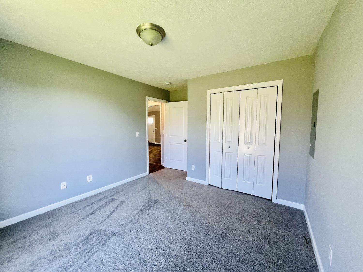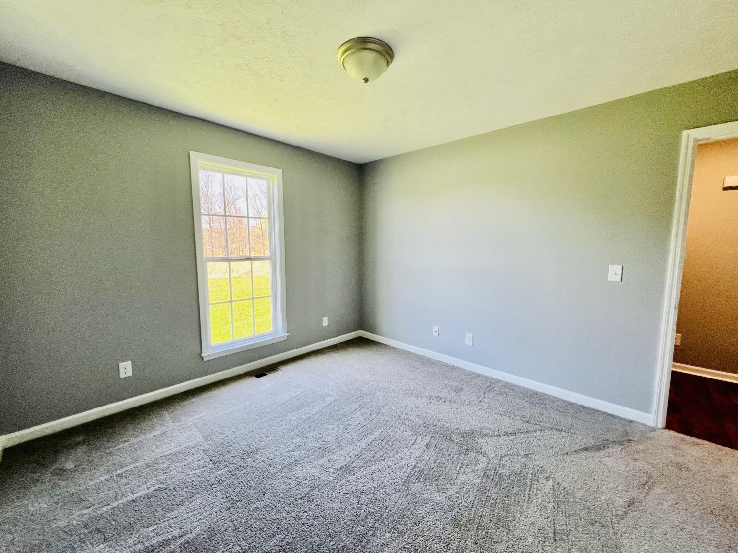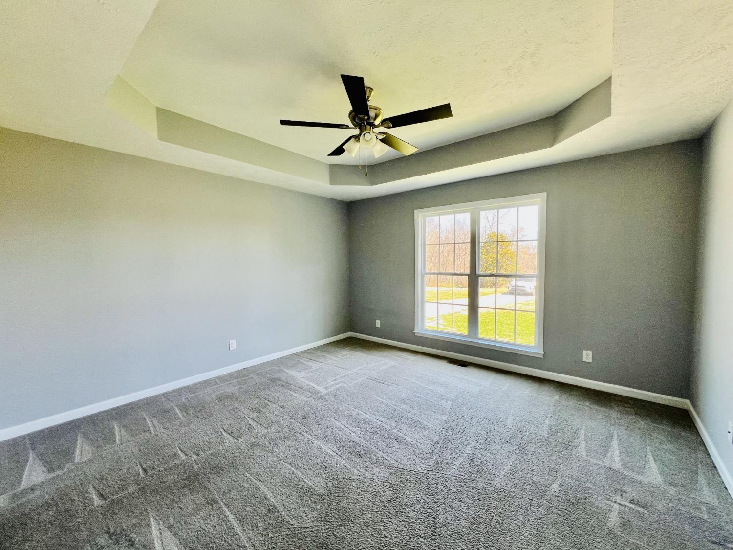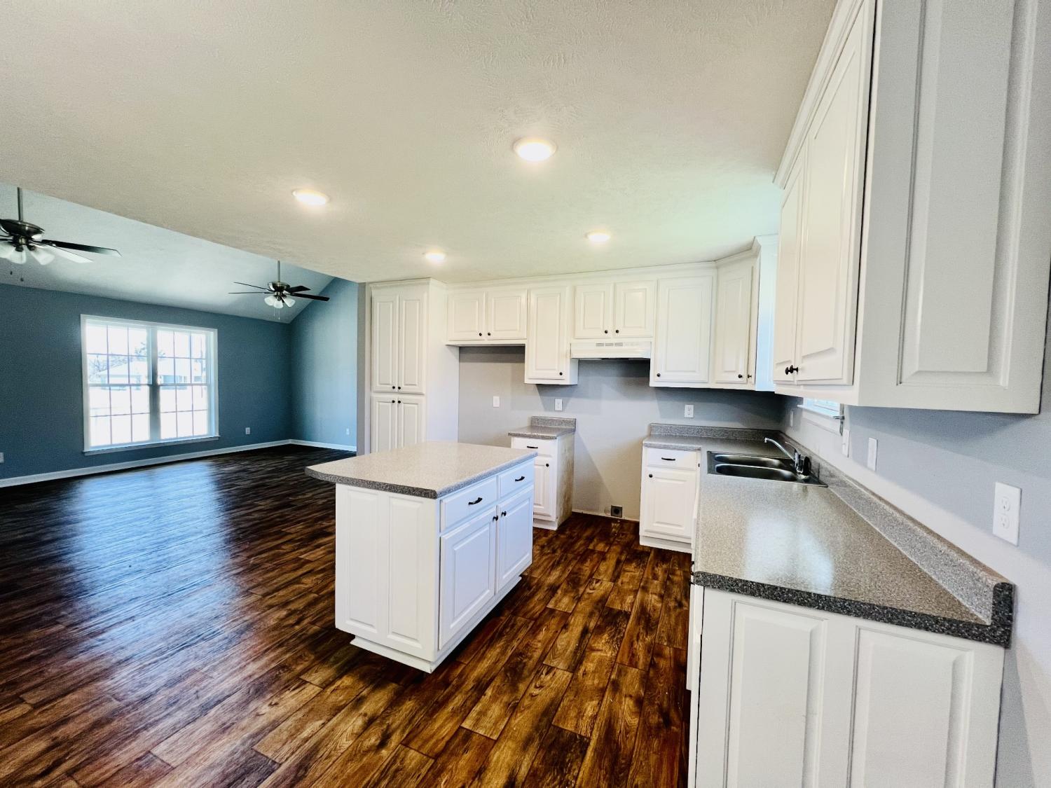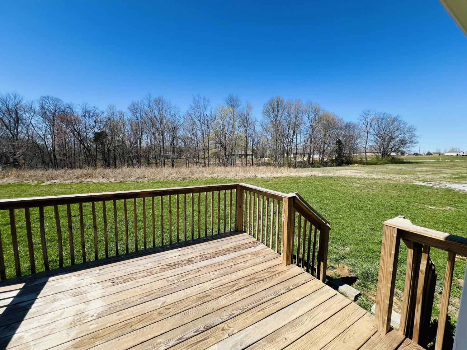 Built in 2023 on almost 2 ACRES, this home has lots of room for family! A large open living/kitchen and dining area makes for spacious living. The living area has a vaulted ceiling and two ceiling fans. Kitchen has an island, recessed lighting and custom cabinetry. NEW stainless stove and refrigerator to be installed soon. Main/primary bedroom has a trey ceiling with fan, its own bath with double sink vanity and tub/shower combination. Two additional bedrooms are in a different part of home, sharing a hallway bath with a tub/shower combination. A large front porch and a deck on the back are great for enjoying the outdoors.