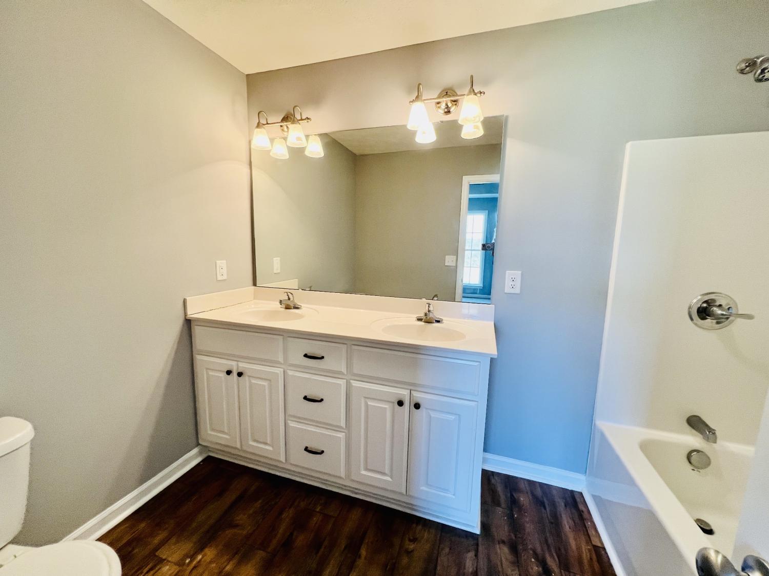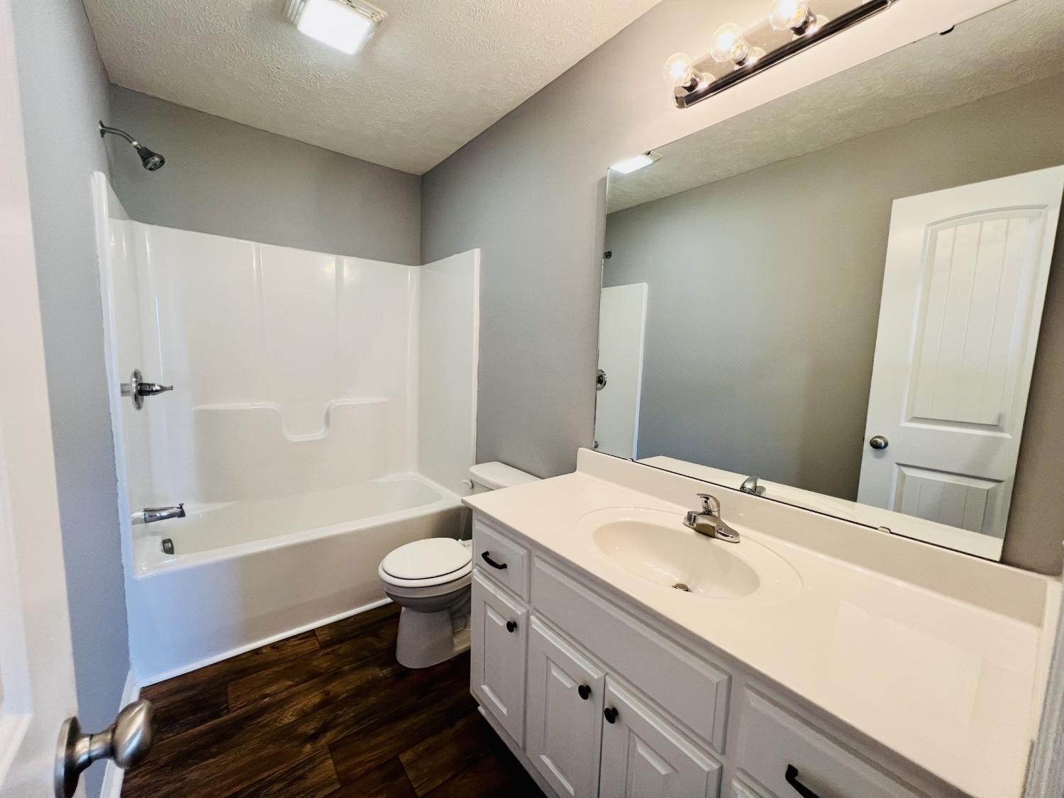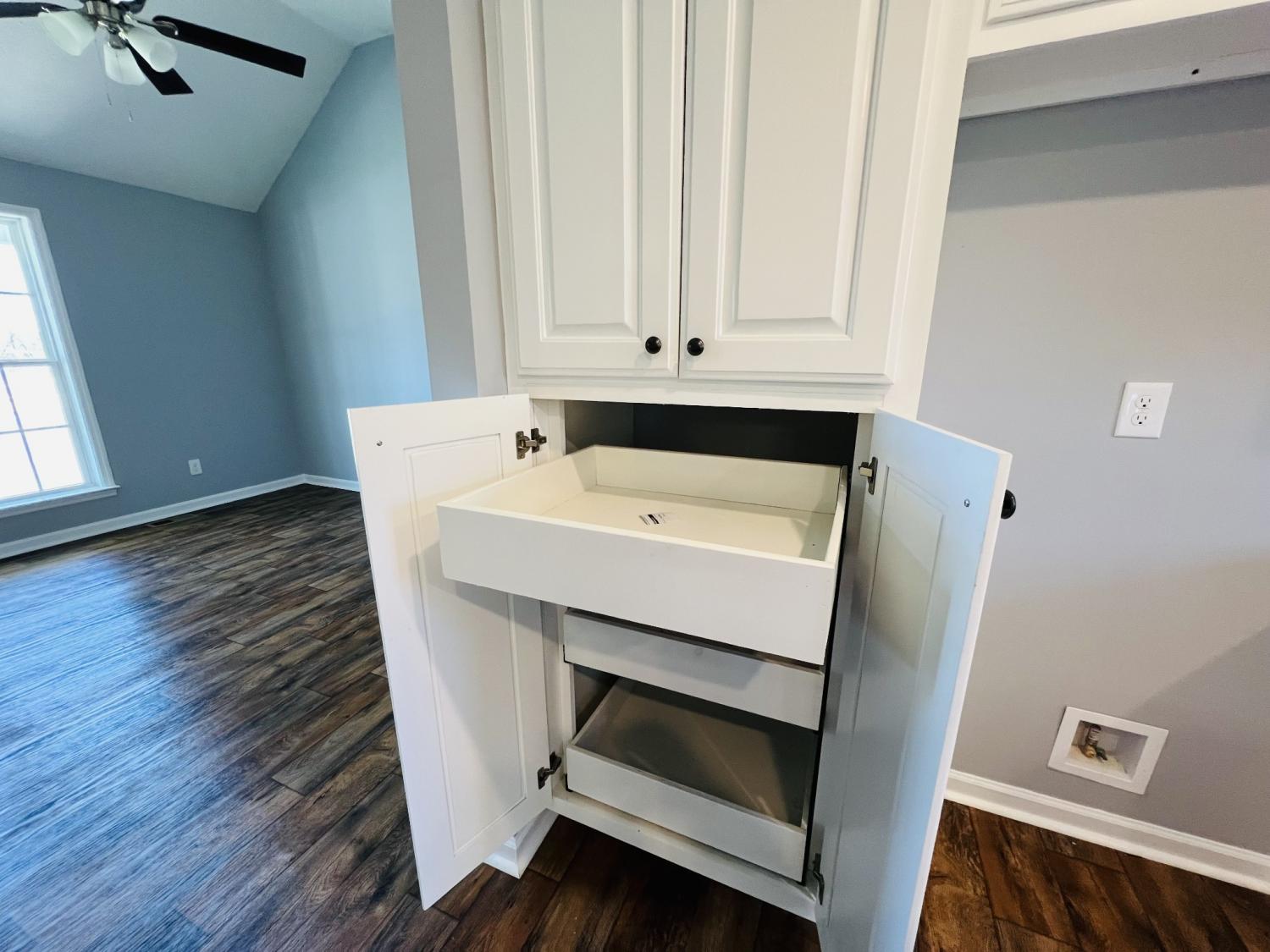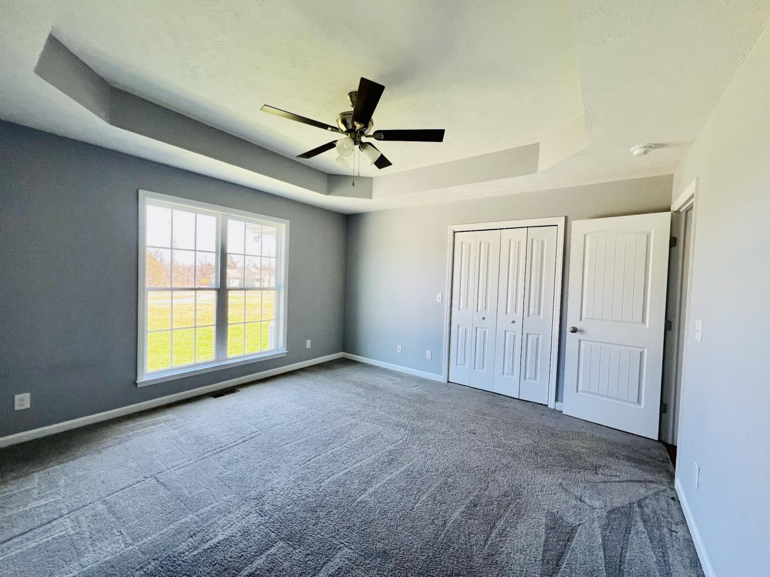 Built in 2023 on almost 2 ACRES, this home has lots of room for family! A large open living/kitchen and dining area makes for spacious living. The living area has a vaulted ceiling and two ceiling fans. Kitchen has an island, recessed lighting and custom cabinetry. NEW stainless stove and refrigerator to be installed soon. Main/primary bedroom has a trey ceiling with fan, its own bath with double sink vanity and tub/shower combination. Two additional bedrooms are in a different part of home, sharing a hallway bath with a tub/shower combination. A large front porch and a deck on the back are great for enjoying the outdoors.