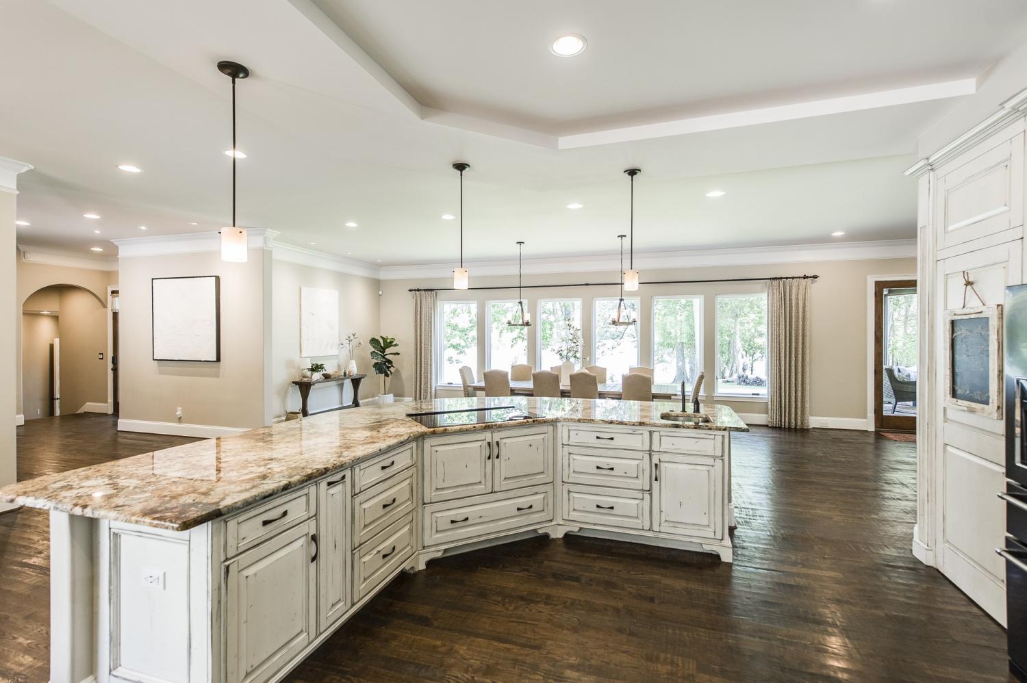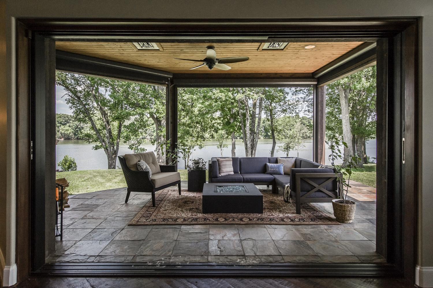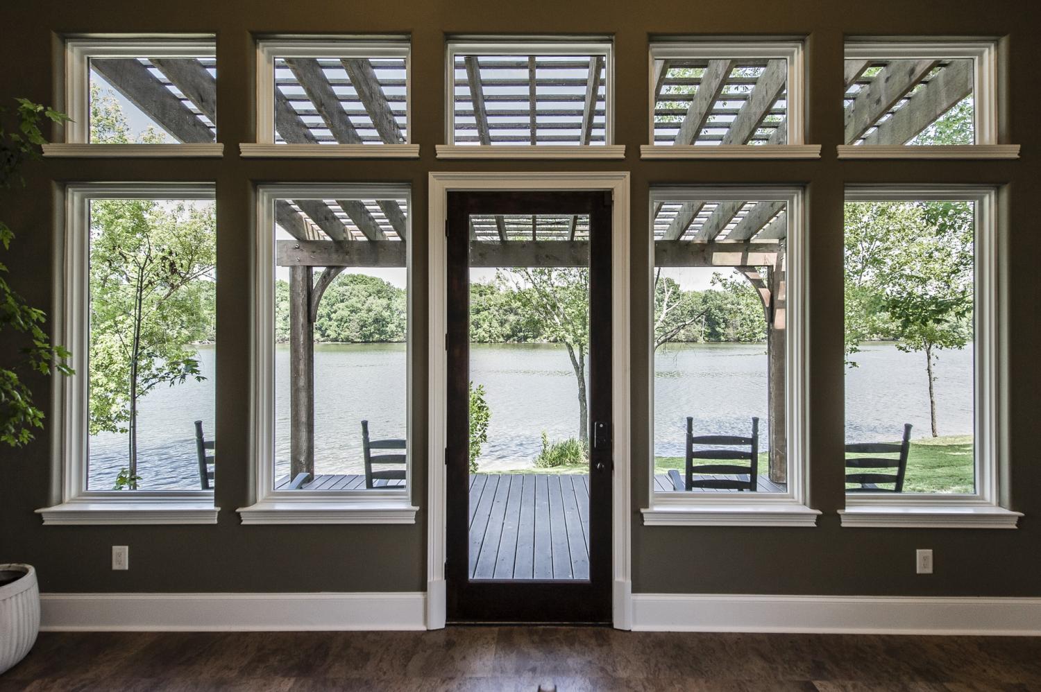 THE most unique and beautiful home on the lake! Perched on a rare private peninsula on Old Hickory Lake, this extraordinary estate surrounds you with water and nature. With nearly 360° lake views and 111 of 119 windows facing the water, the home feels immersed in the lake from nearly every room. Inside, discover Texas-scraped hardwood floors, hidden rooms and passages, and spaces designed for unforgettable entertaining including a world-class media room and a game room that opens through an all-glass garage door to a spectacular screened lake lounge. The lower gym glass door lifts open to the shoreline so your workout overlooks the water. Motorized screens, ceiling heaters, and a massive sliding glass wall transform the veranda into a four-season lakeside living room. Dock-permitted already. Separate luxurious guest apartment above the detached garage. Make your home among river otters, eagles, foxes and ospreys. Live at the lake less than 30 minutes from downtown Nashville!