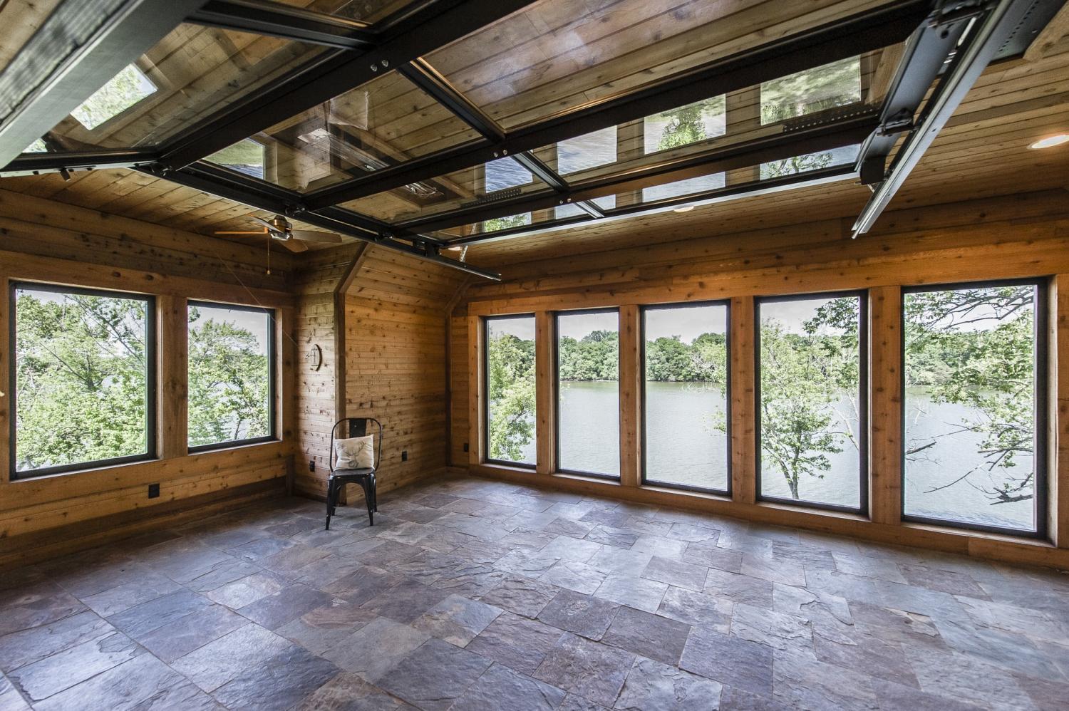 Perhaps the most unique and beautiful home on the lake, this stunning French Mediterranean estate sits on a private, pristine peninsula on Old Hickory Lake offering 270 degree views of water. Get this: 111 of the 119 windows view the lake! This is because of the unique shape of the house. The home has secret rooms and passages! Deep-scraped wood floors throughout. So many windows! Dock permitted. World-class media room. Game room with glass garage door opens to the one of a kind integrated screen lake room upstairs (you have to see this to comprehend it). Lower gym also has a huge glass garage door that opens to the lake while you work out. Motorized screens on the back veranda and a huge triple sliding glass door bring the outdoors in, effectively doubling the living room. Ceiling heaters allow for lakeside enjoyment even when it's cold out. Fully appointed separate guest apartment above the detached garage great for teens or guests. Being sold by original designers/owners.