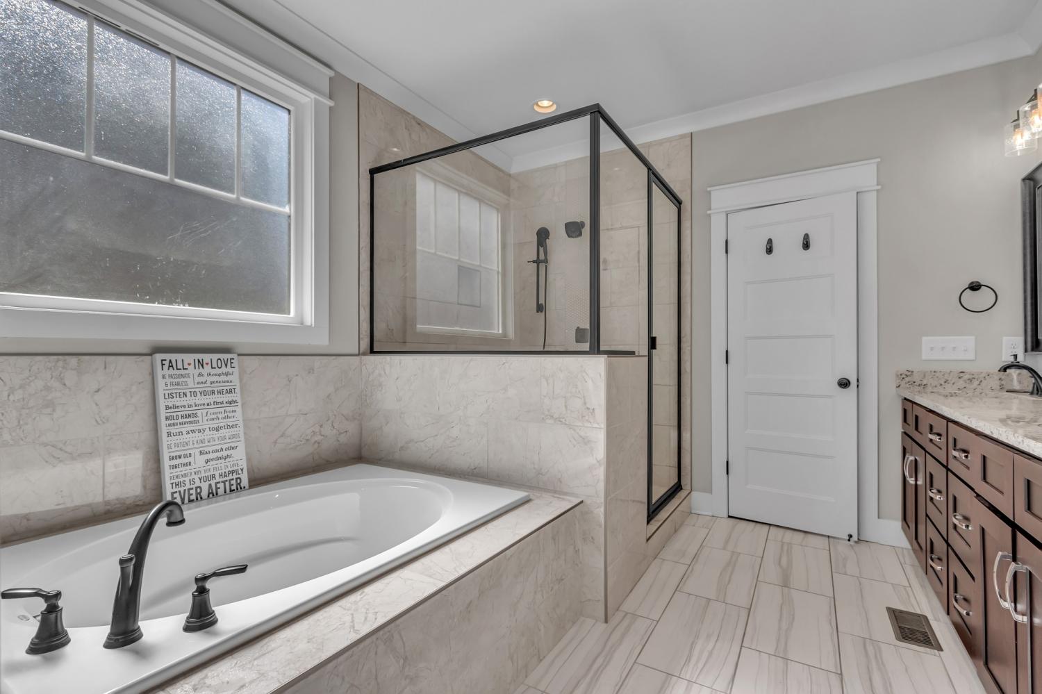 Welcome to this stunning custom-built home in the highly sought-after Tollgate Village community. This beautiful home boasts 4 spacious bedrooms (primary bedroom on main level) and 4 full bathrooms, each with walk-in closets, offering plenty of storage. The open floor plan is complemented by upgraded features throughout, including wood floors, granite countertops, a farmhouse sink, stainless steel appliances, and a convenient oven/microwave combo, fireplace, or retreat to the large bonus room on the second floor. The home also offers abundant storage space, upgraded lighting, and much more. Relax and unwind on the charming covered front and back porches, perfect for rocking chairs. Professional installed gemstone high-quality, energy-efficient, customizable, and programmable LED lights to change colors and patterns. The custom-designed concrete block patio creates an ideal outdoor living space, featuring a natural gas kitchen with a bar countertop, perfect for entertaining. Gather around the inviting gas firepit with a built-in seating wall, perfect for making s’mores. The backyard is fully fenced, with elegant stone veneer columns and black rails, ensuring privacy and a welcoming atmosphere for outdoor gatherings. Tollgate Village offers exceptional resort-style amenities, including a sparkling pool, fitness center, dog park, playground, tennis courts, walking trails, clubhouse, and pond. The community also boasts retail shops, services, and a variety of dining options. With easy access to I-840 and I-65, plus proximity to Independence High School, downtown Franklin, Berry Farms, and Spring Hill, Tollgate Village offers the perfect combination of convenience, comfort, and lifestyle.